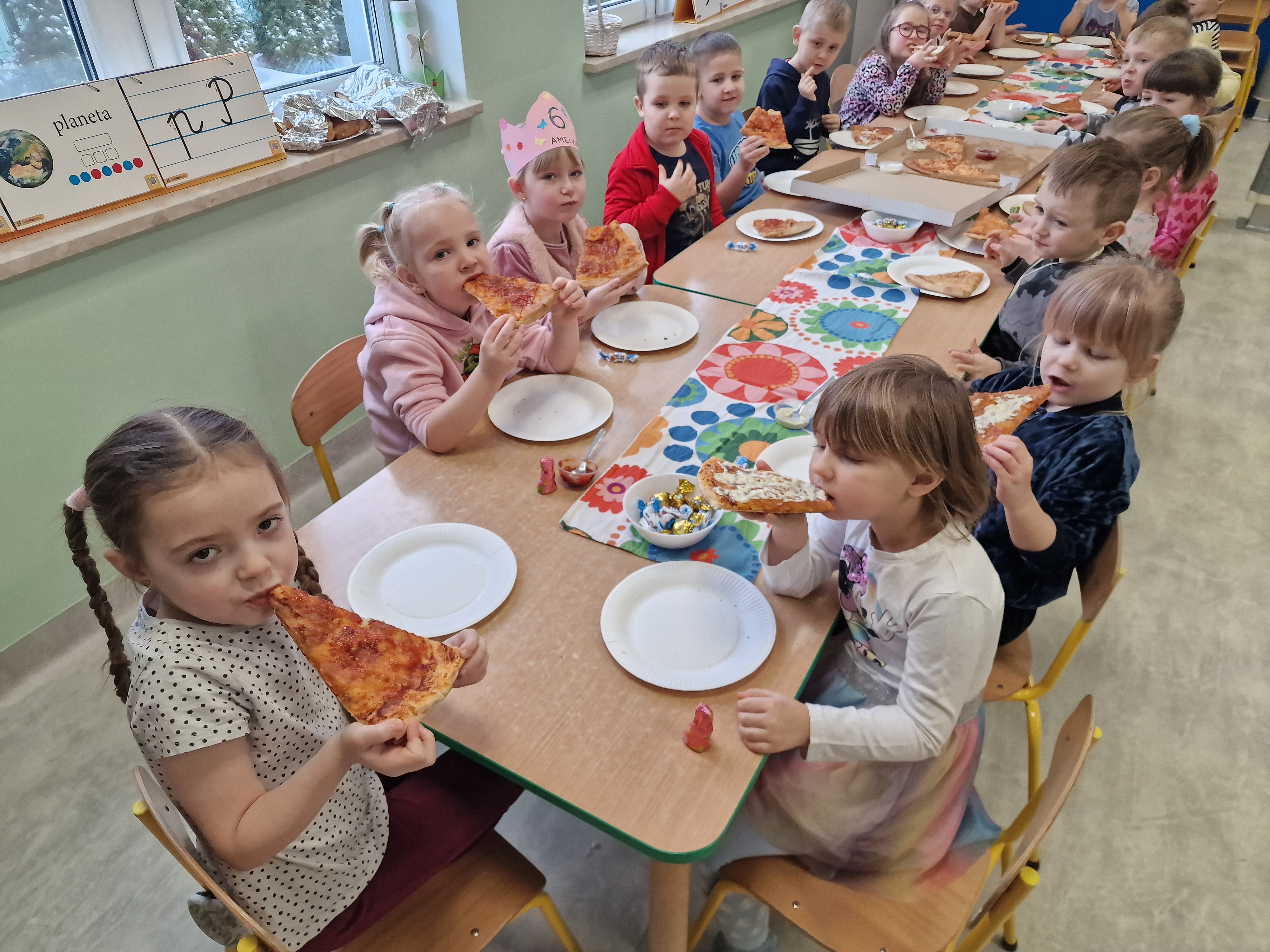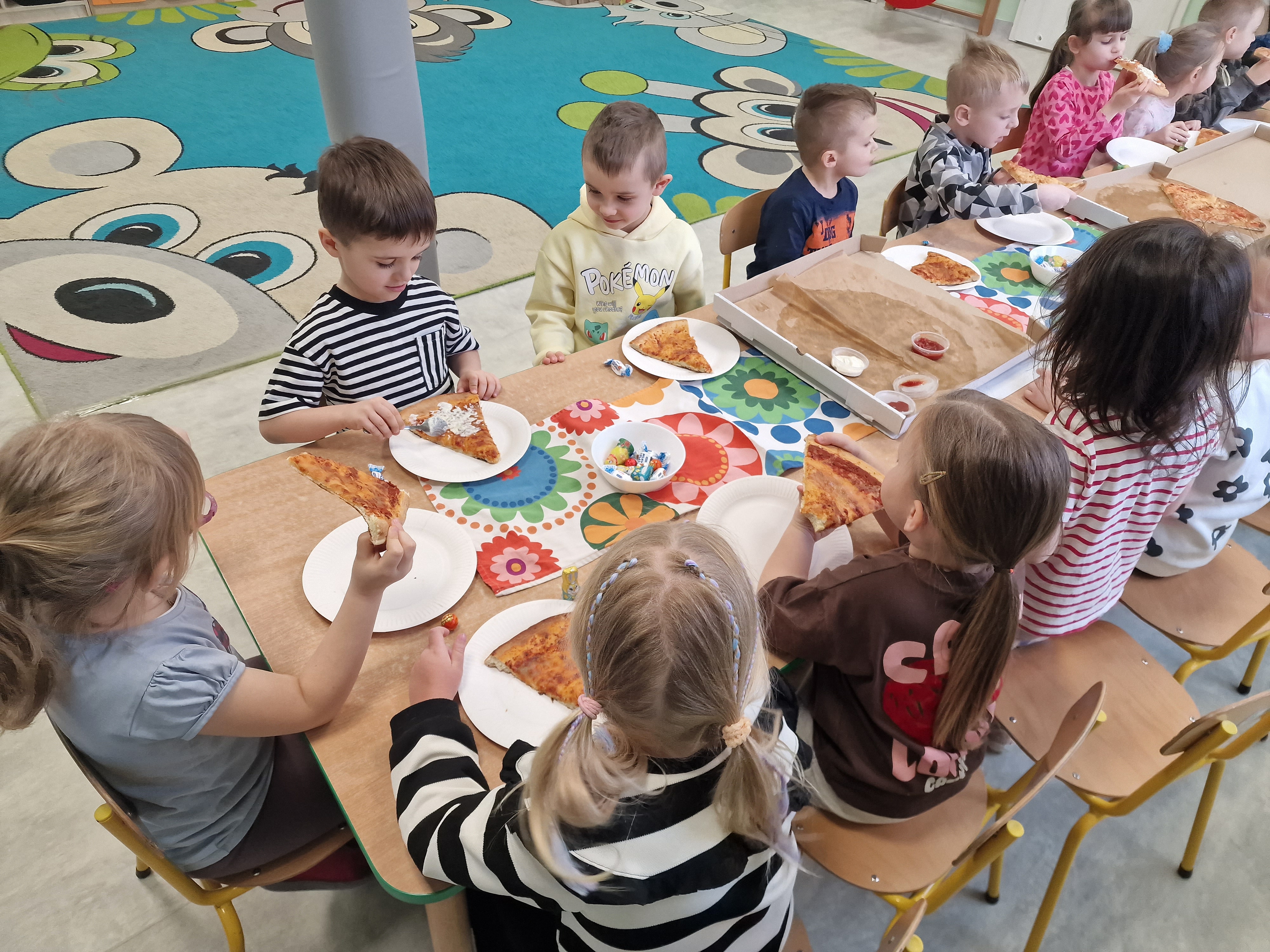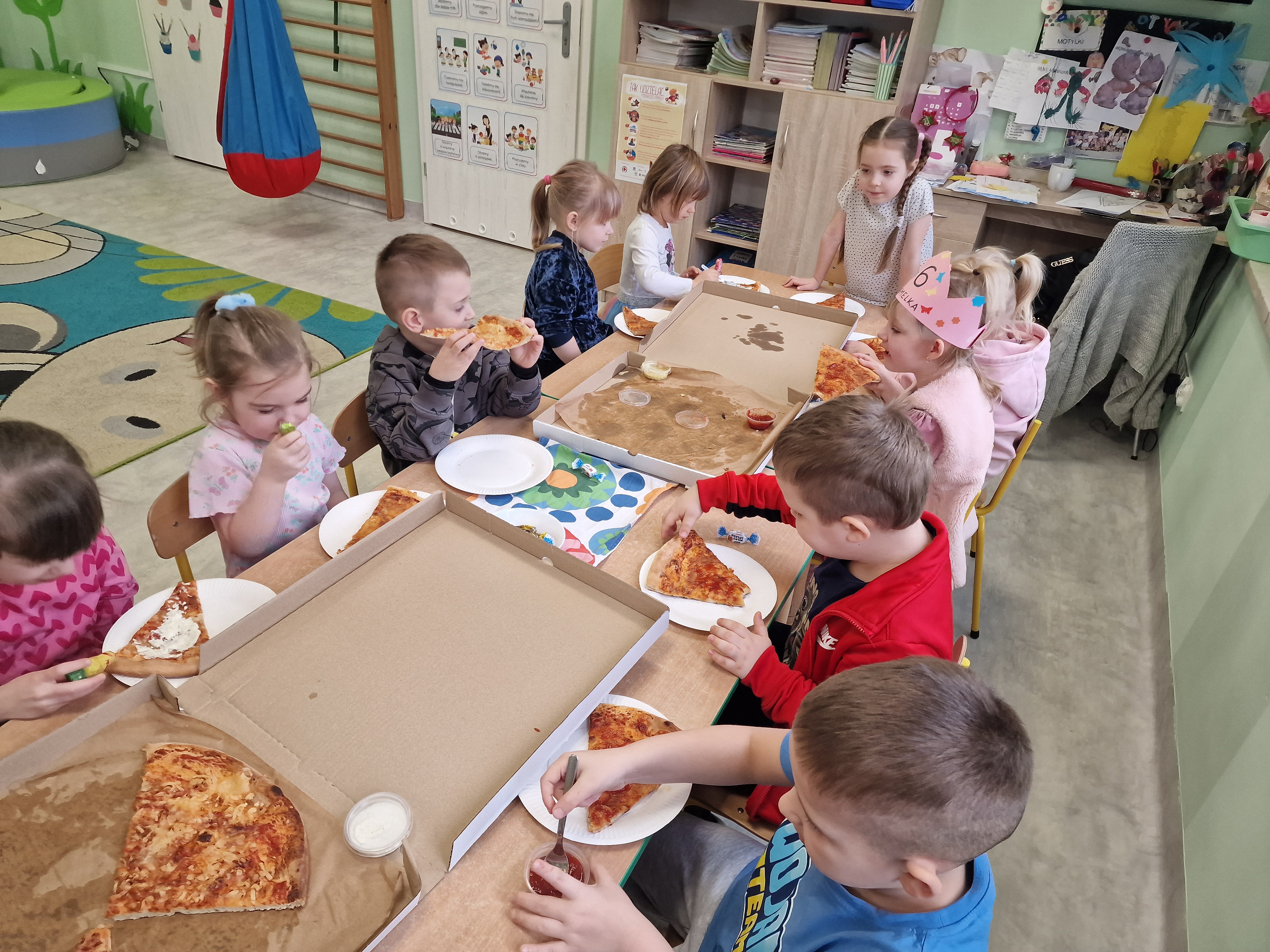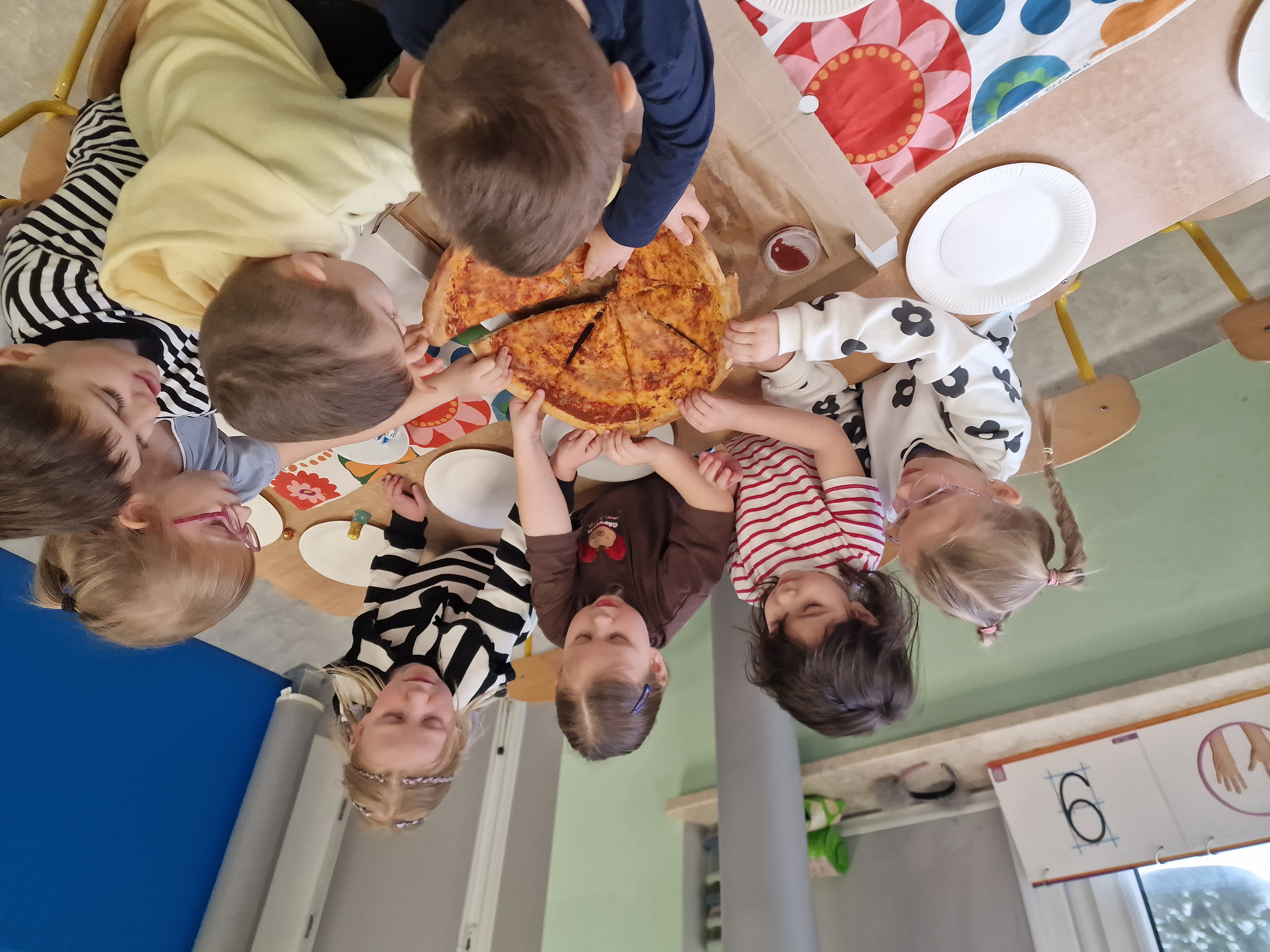 We wtorek 17 lutego naszym przedszkolu świętowaliśmy Dzień Pizzy! Dzieci poznały historię tej popularnej potrawy, wspólnie przygotowywały mini pizze w formie prac plastycznych oraz brały udział w zabawach tematycznych. Tego dnia czekała na nie niespodzianka - degustacja pizzy ze Spółdzielni Socjalnej "Borowiacki Wigor". Było smacznie, radośnie i bardzo kreatywnie! To był dzień pełen uśmiechu i pysznej zabawy.