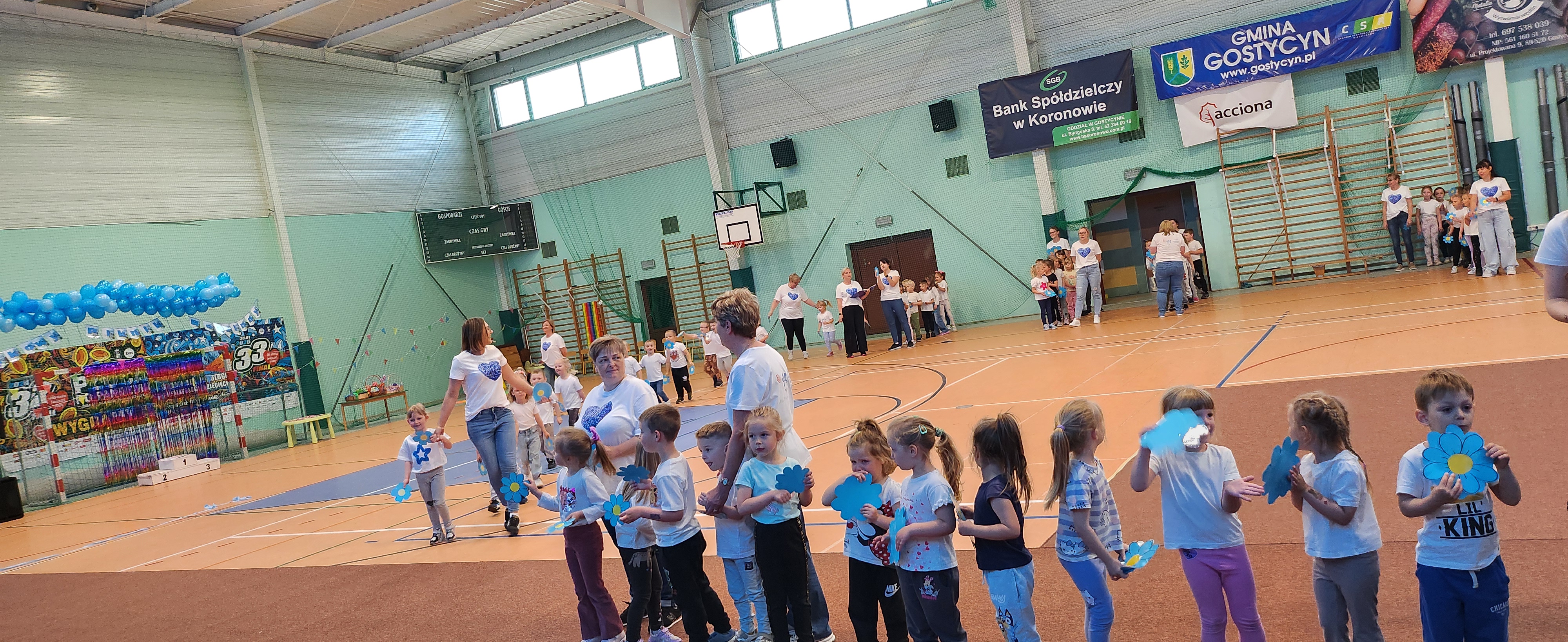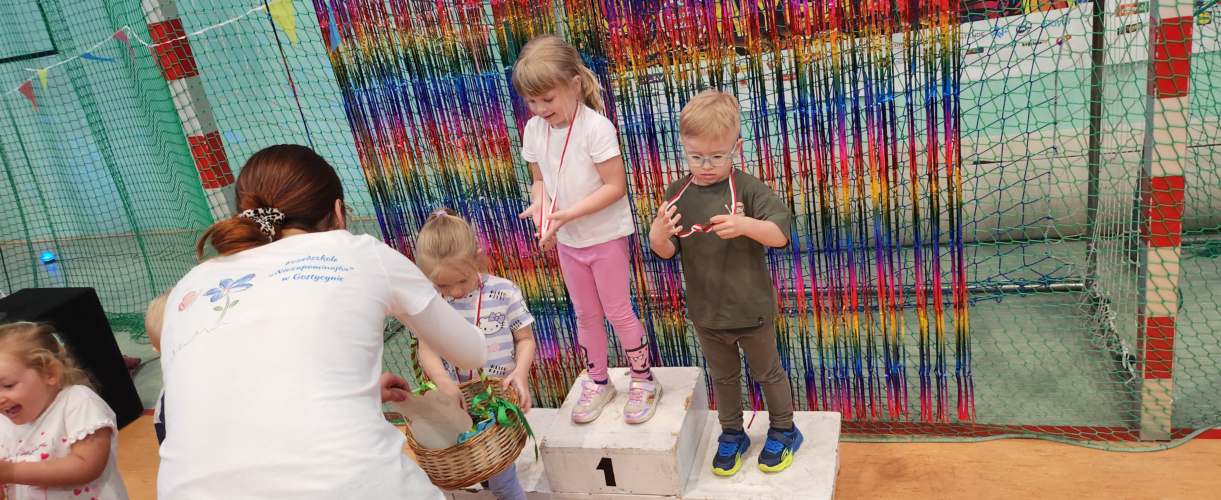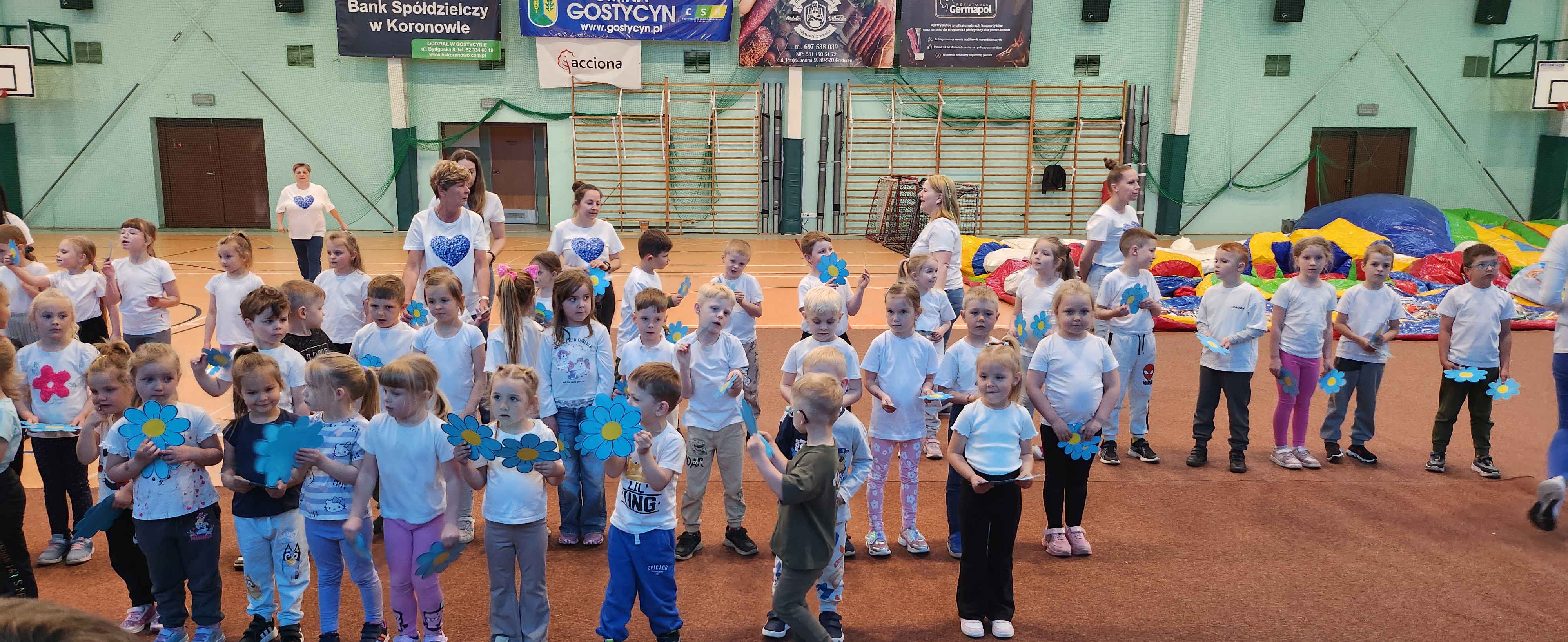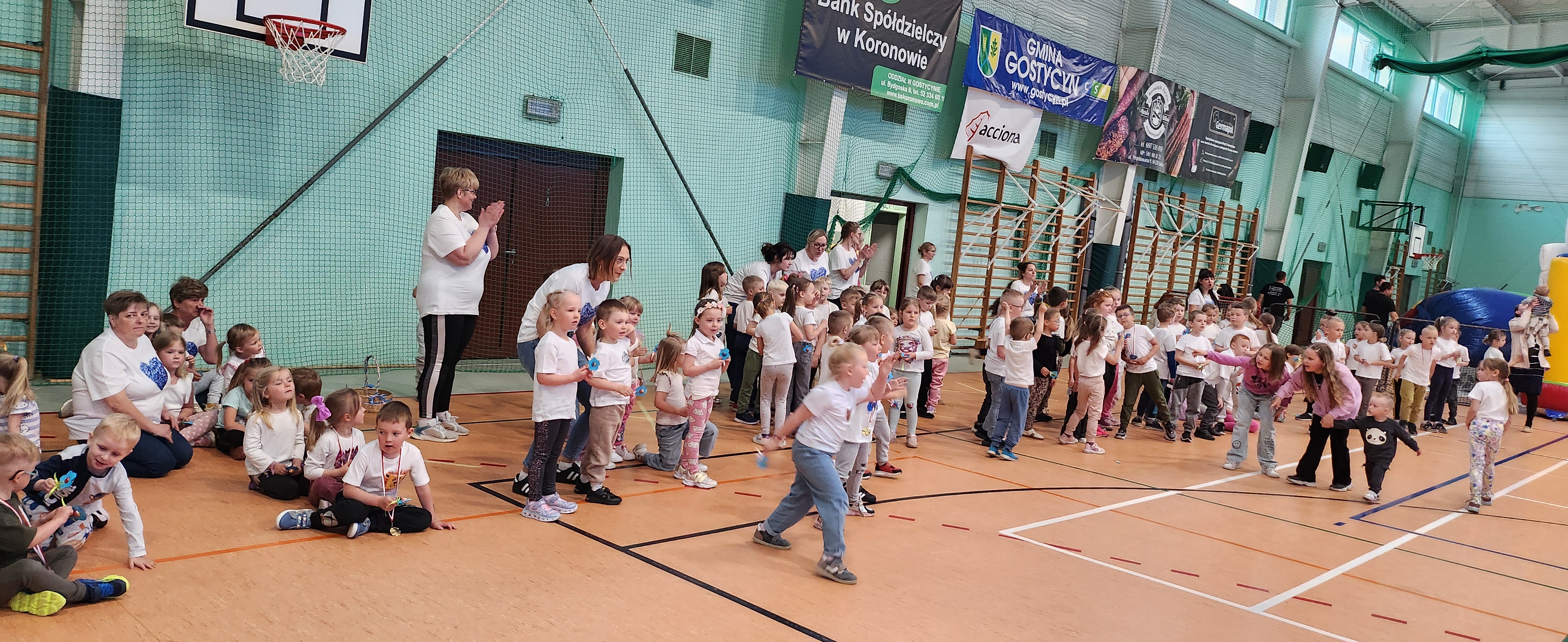 16.05 nasze przedszkole zorganizowało piknik rodzinny dla naszych przedszkolaków i ich najbliższych. Z powodu niesprzyjającej pogody całe wydarzenie odbyło się na Hali Sportowej w Gostycynie. Piknik miał na celu świętowanie urodzin naszej "Niezapominajki" oraz zbliżających się Dni Mamy, Taty i Dziecka. Na początku nasi milusinscy zaprezentowali swoje umiejętności wokalne oraz rytmiczne. Kolejny punkt programu to druga edycja "Biegu o medal Niezapominajki", w którym wzięły udział dzieci z poszczególnych grup przedszkolnych. Następnie przyszła pora na korzystanie z przygotowanych atrakcji (dmuchańce, kącik sensoryczny, malowanie twarzy, warkoczyki, tworzenie breloczków, kącik tatuażu, stoisko czekoladowe, gofry, owoce) oraz konkursy. To był przyjemnie spędzony czas w gronie najbliższych. Serdecznie dziękujemy zaangażowanym rodzicom za pomoc w organizacji przedsięwzięcia.