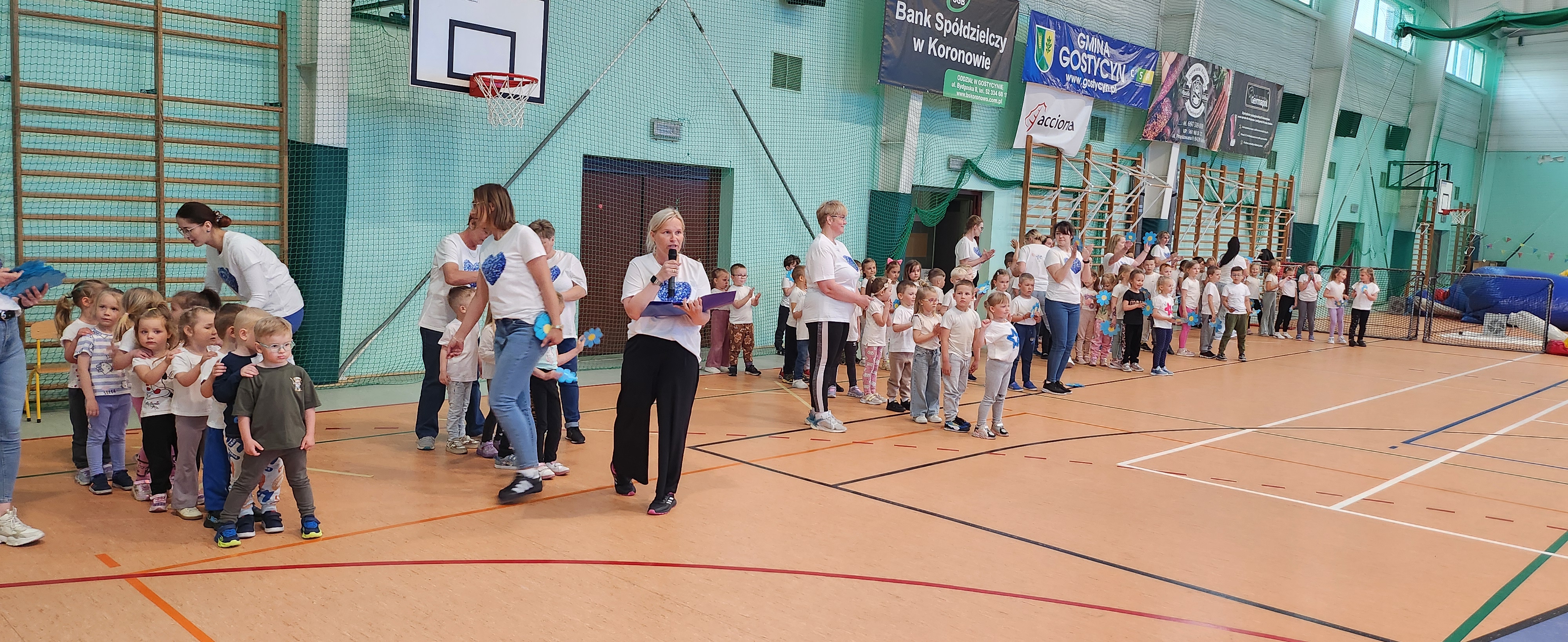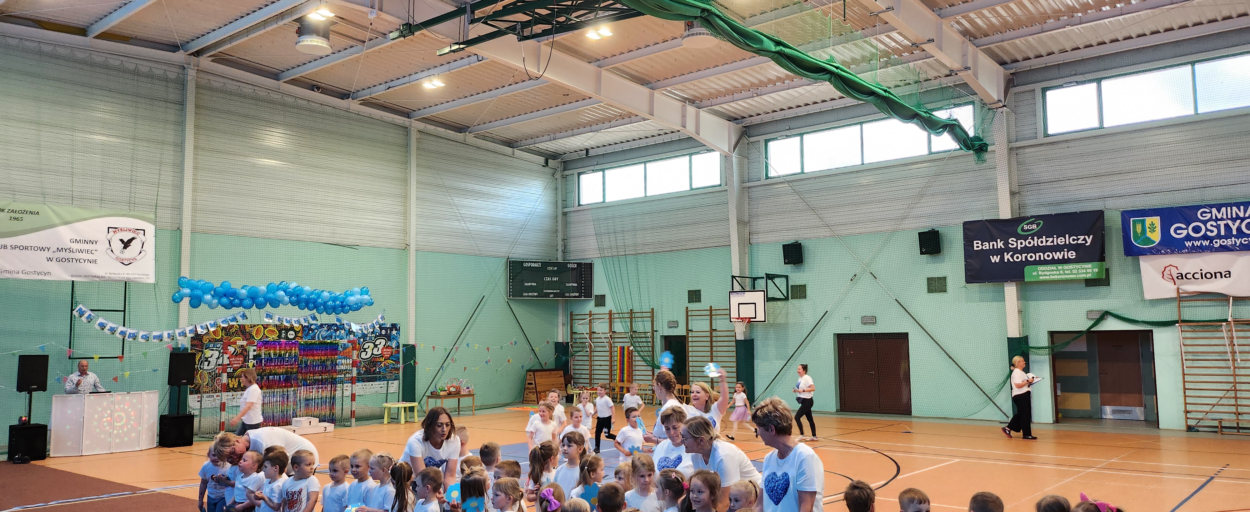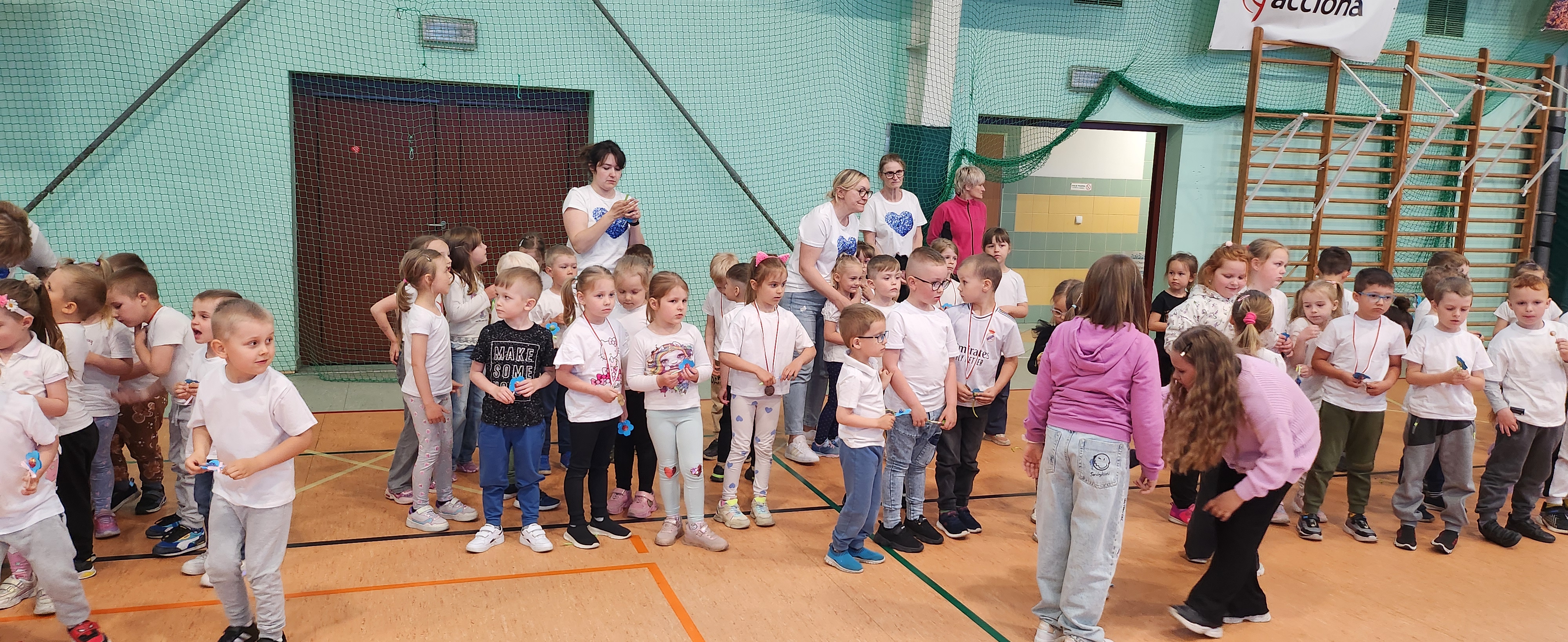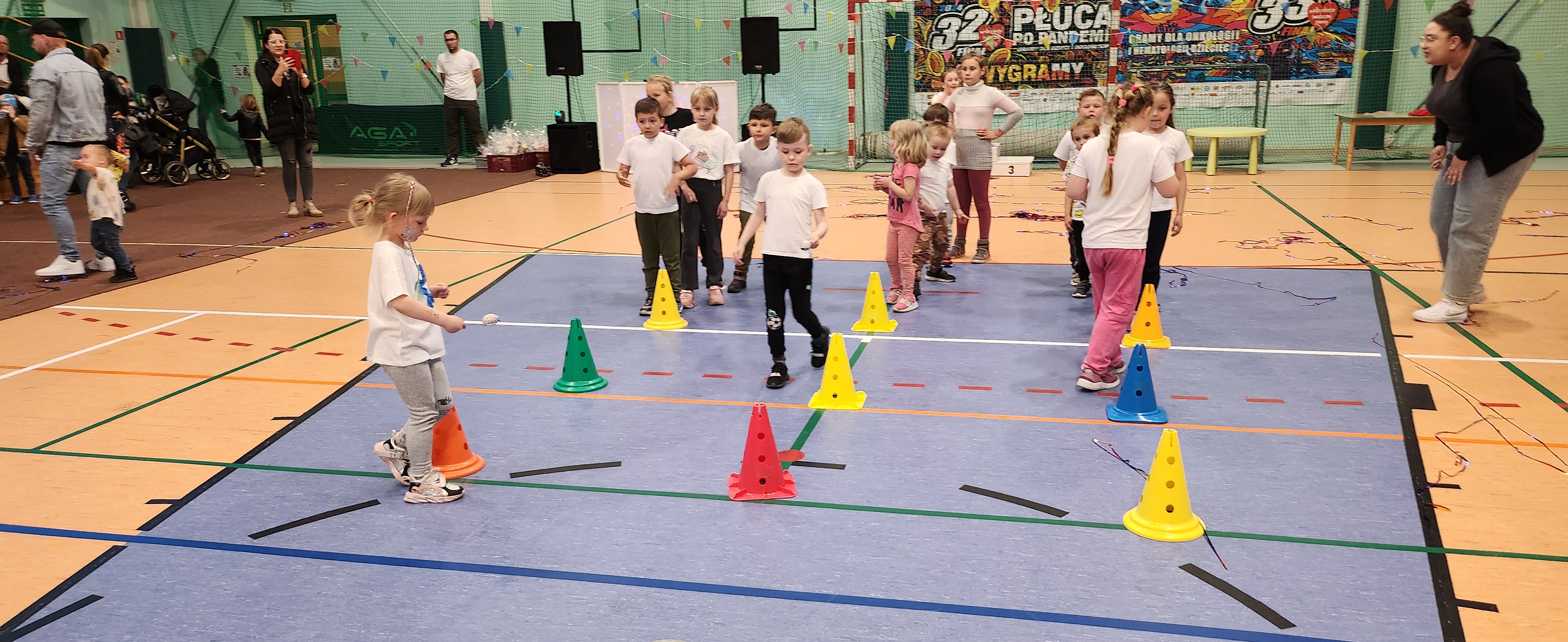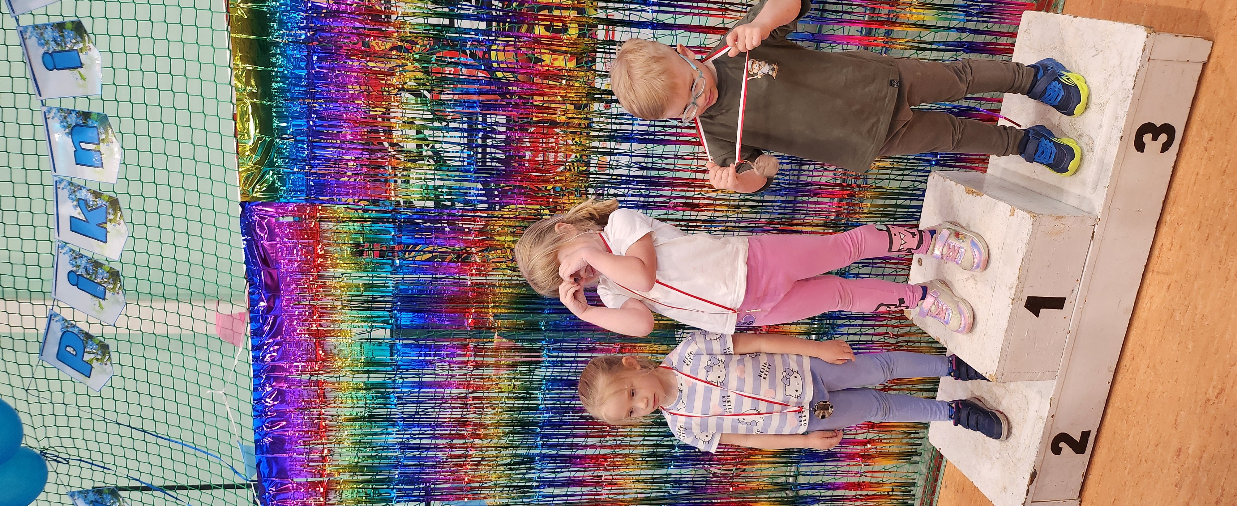 16.05 nasze przedszkole zorganizowało piknik rodzinny dla naszych przedszkolaków i ich najbliższych. Z powodu niesprzyjającej pogody całe wydarzenie odbyło się na Hali Sportowej w Gostycynie. Piknik miał na celu świętowanie urodzin naszej "Niezapominajki" oraz zbliżających się Dni Mamy, Taty i Dziecka. Na początku nasi milusinscy zaprezentowali swoje umiejętności wokalne oraz rytmiczne. Kolejny punkt programu to druga edycja "Biegu o medal Niezapominajki", w którym wzięły udział dzieci z poszczególnych grup przedszkolnych. Następnie przyszła pora na korzystanie z przygotowanych atrakcji (dmuchańce, kącik sensoryczny, malowanie twarzy, warkoczyki, tworzenie breloczków, kącik tatuażu, stoisko czekoladowe, gofry, owoce) oraz konkursy. To był przyjemnie spędzony czas w gronie najbliższych. Serdecznie dziękujemy zaangażowanym rodzicom za pomoc w organizacji przedsięwzięcia.