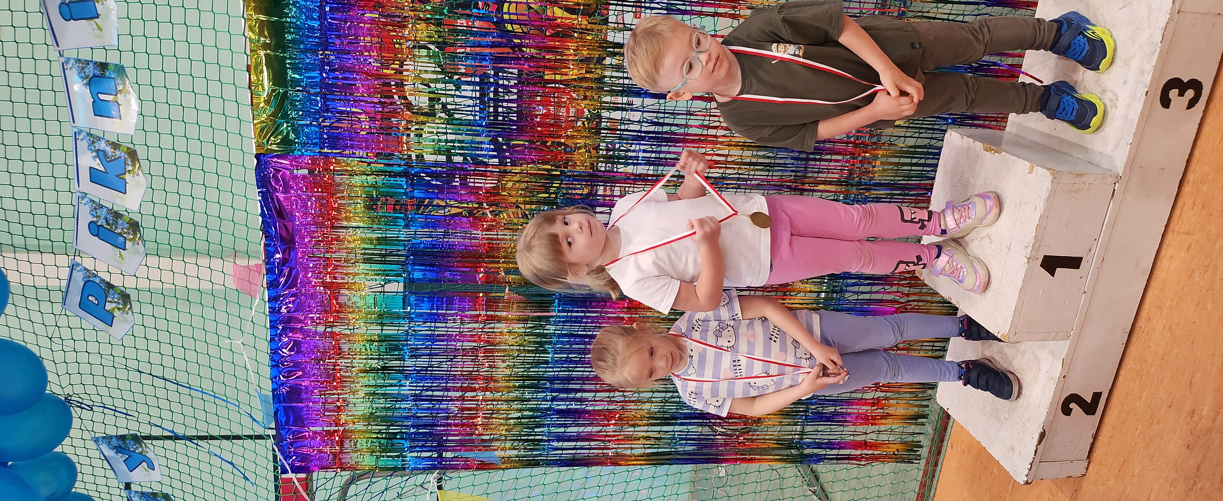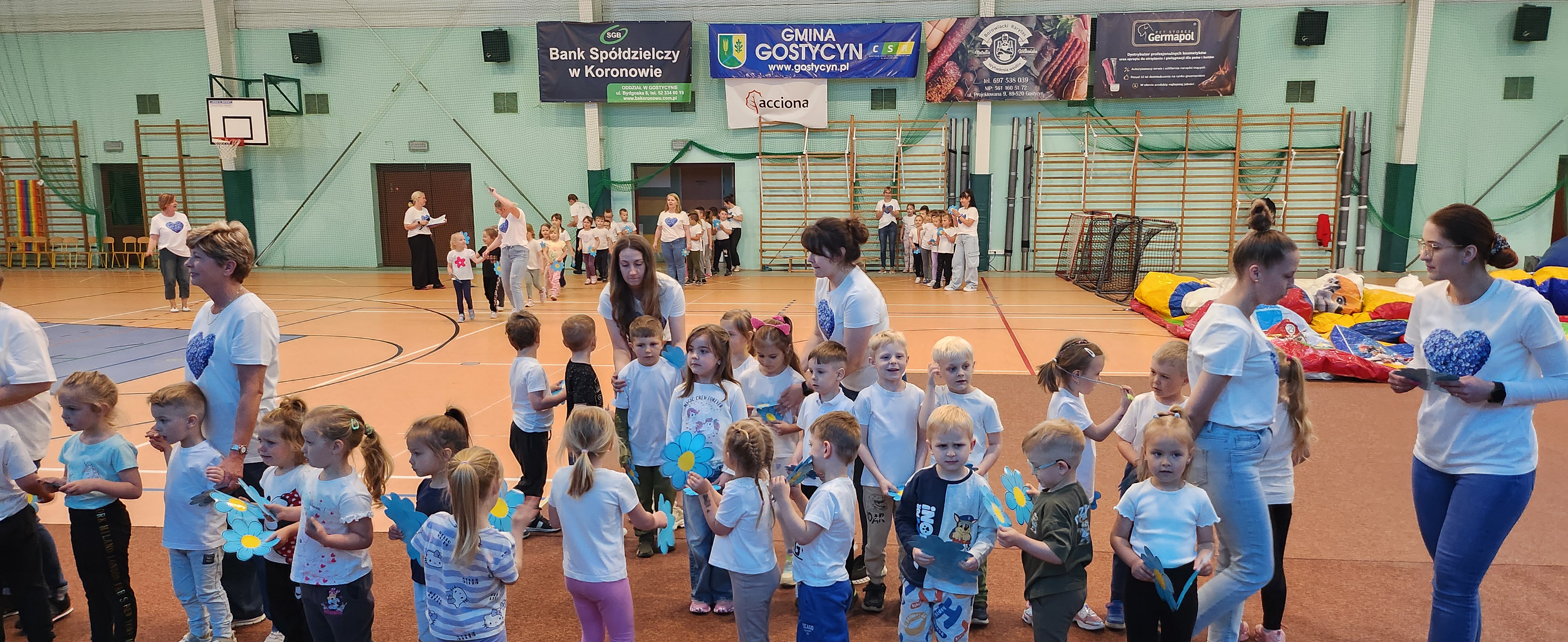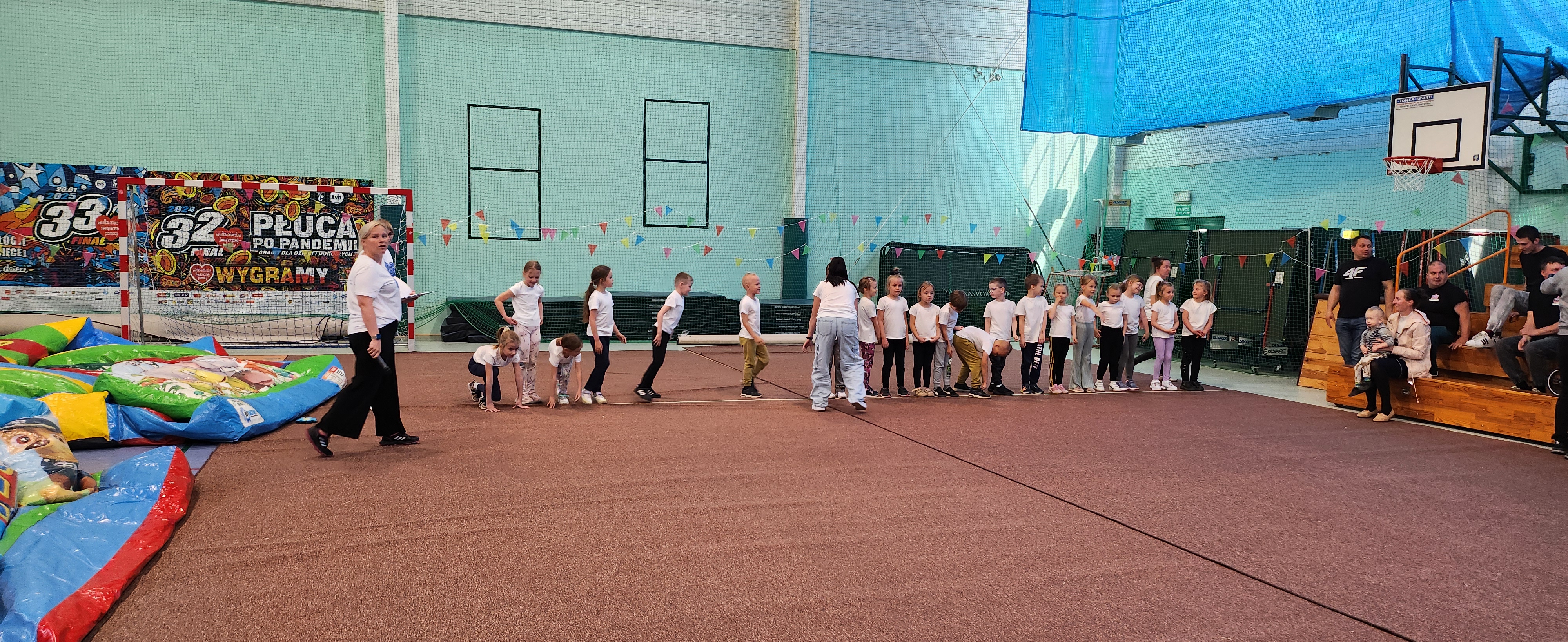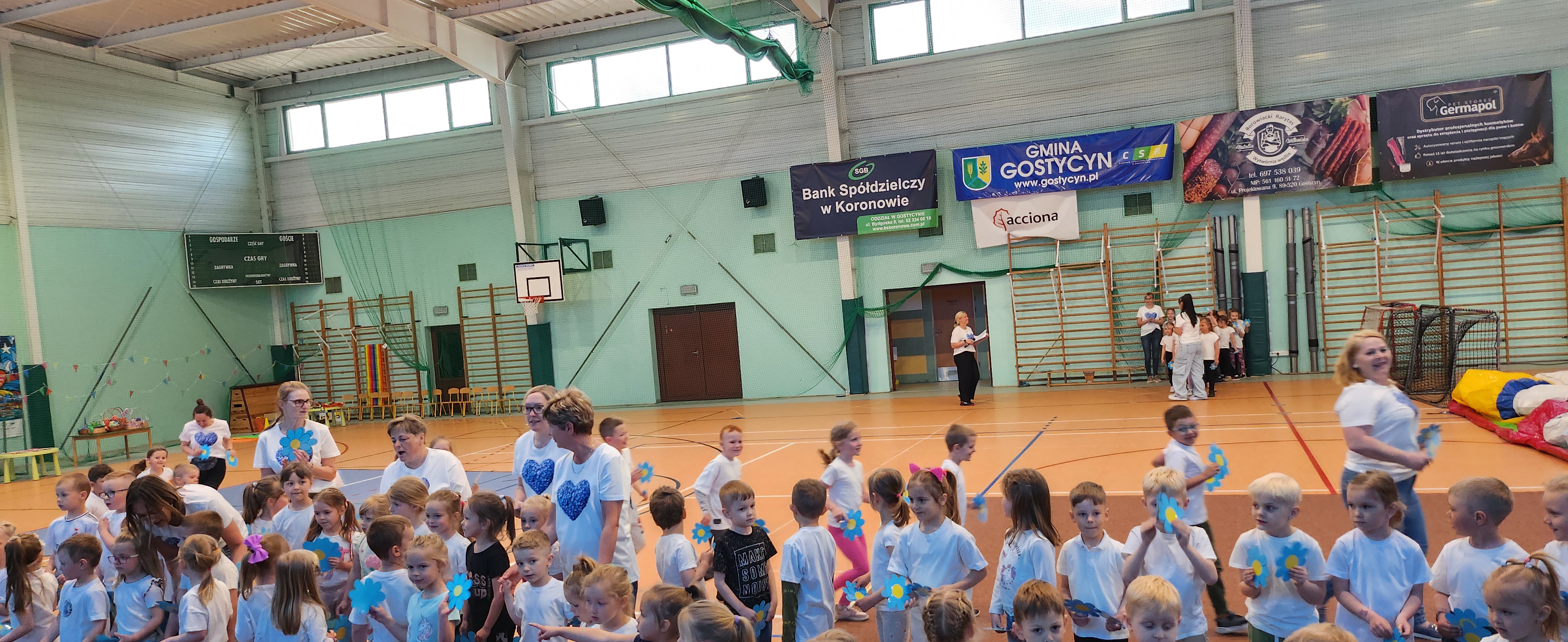 16.05 nasze przedszkole zorganizowało piknik rodzinny dla naszych przedszkolaków i ich najbliższych. Z powodu niesprzyjającej pogody całe wydarzenie odbyło się na Hali Sportowej w Gostycynie. Piknik miał na celu świętowanie urodzin naszej "Niezapominajki" oraz zbliżających się Dni Mamy, Taty i Dziecka. Na początku nasi milusinscy zaprezentowali swoje umiejętności wokalne oraz rytmiczne. Kolejny punkt programu to druga edycja "Biegu o medal Niezapominajki", w którym wzięły udział dzieci z poszczególnych grup przedszkolnych. Następnie przyszła pora na korzystanie z przygotowanych atrakcji (dmuchańce, kącik sensoryczny, malowanie twarzy, warkoczyki, tworzenie breloczków, kącik tatuażu, stoisko czekoladowe, gofry, owoce) oraz konkursy. To był przyjemnie spędzony czas w gronie najbliższych. Serdecznie dziękujemy zaangażowanym rodzicom za pomoc w organizacji przedsięwzięcia.