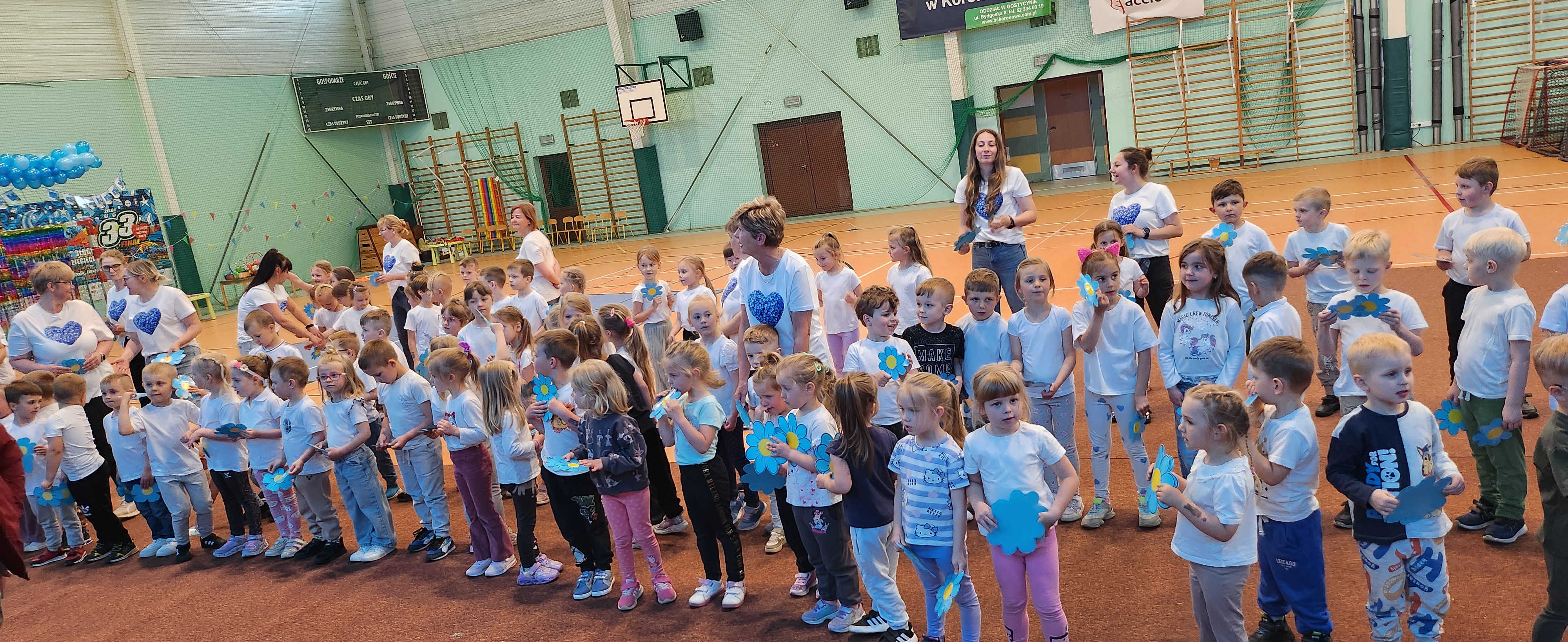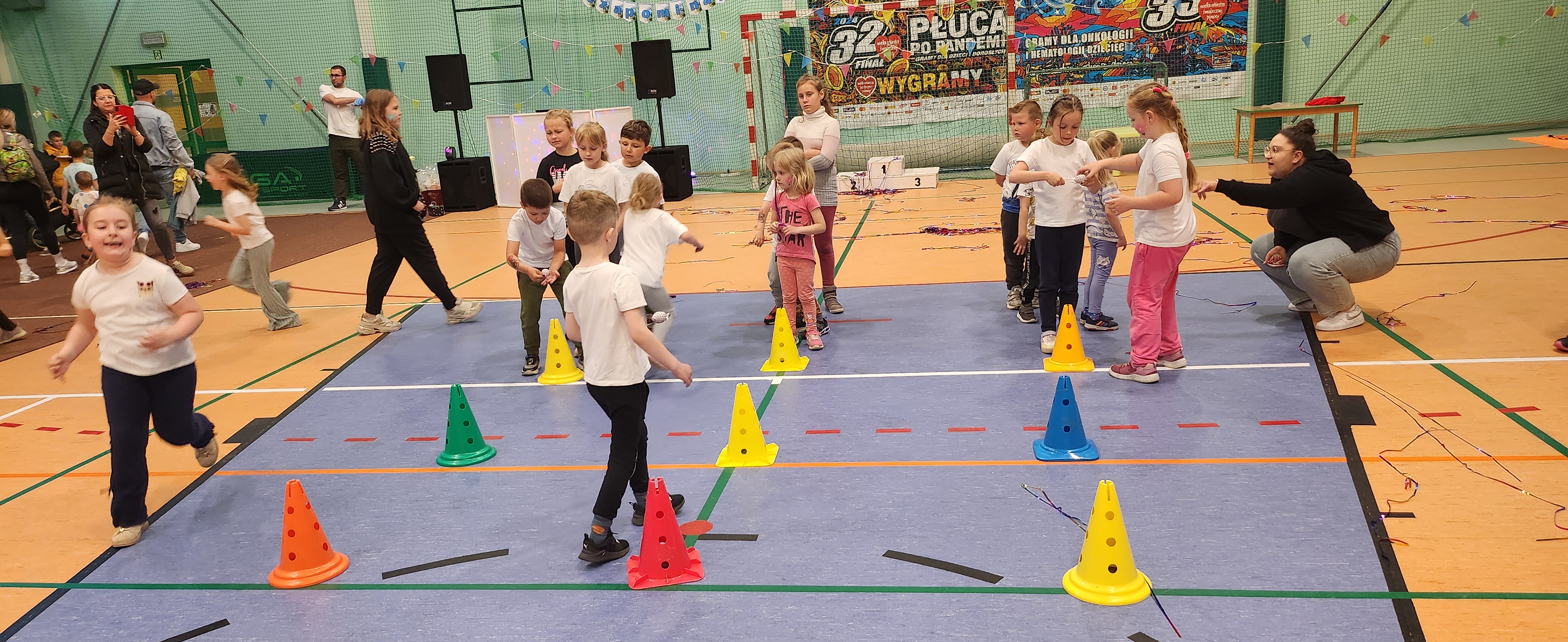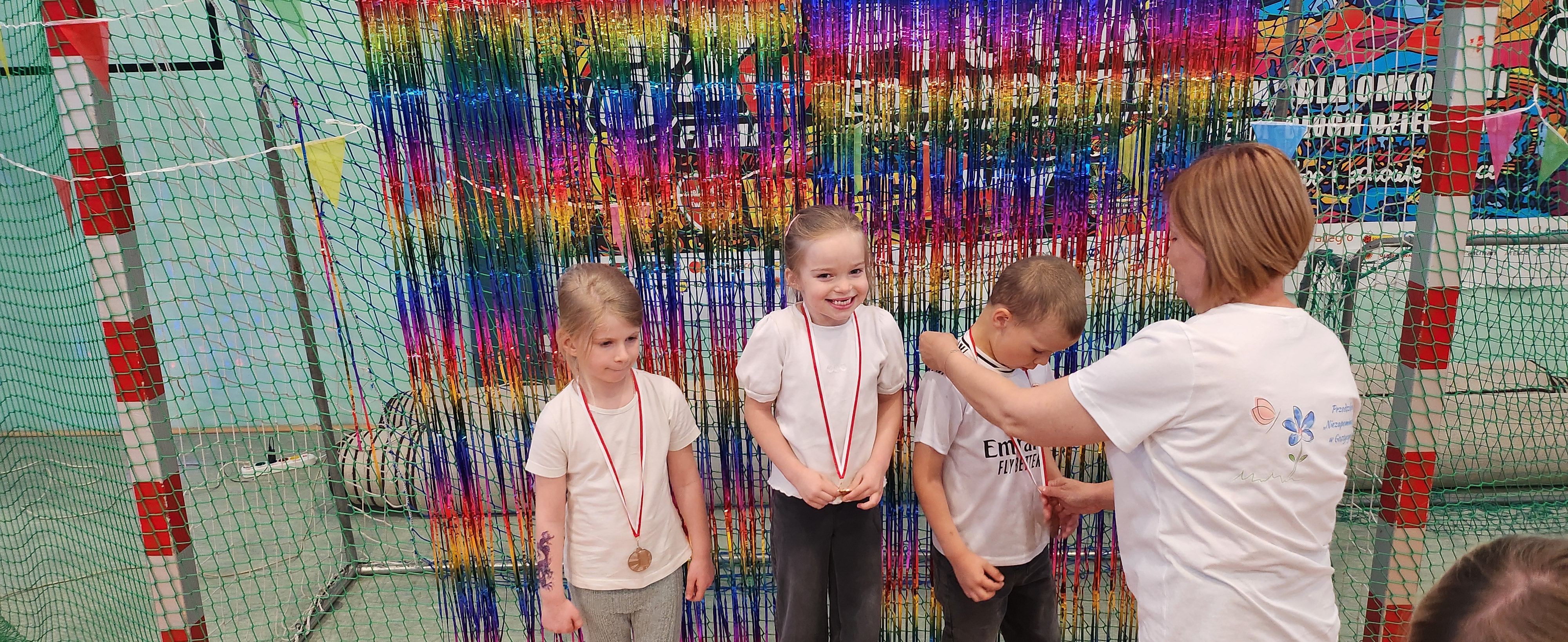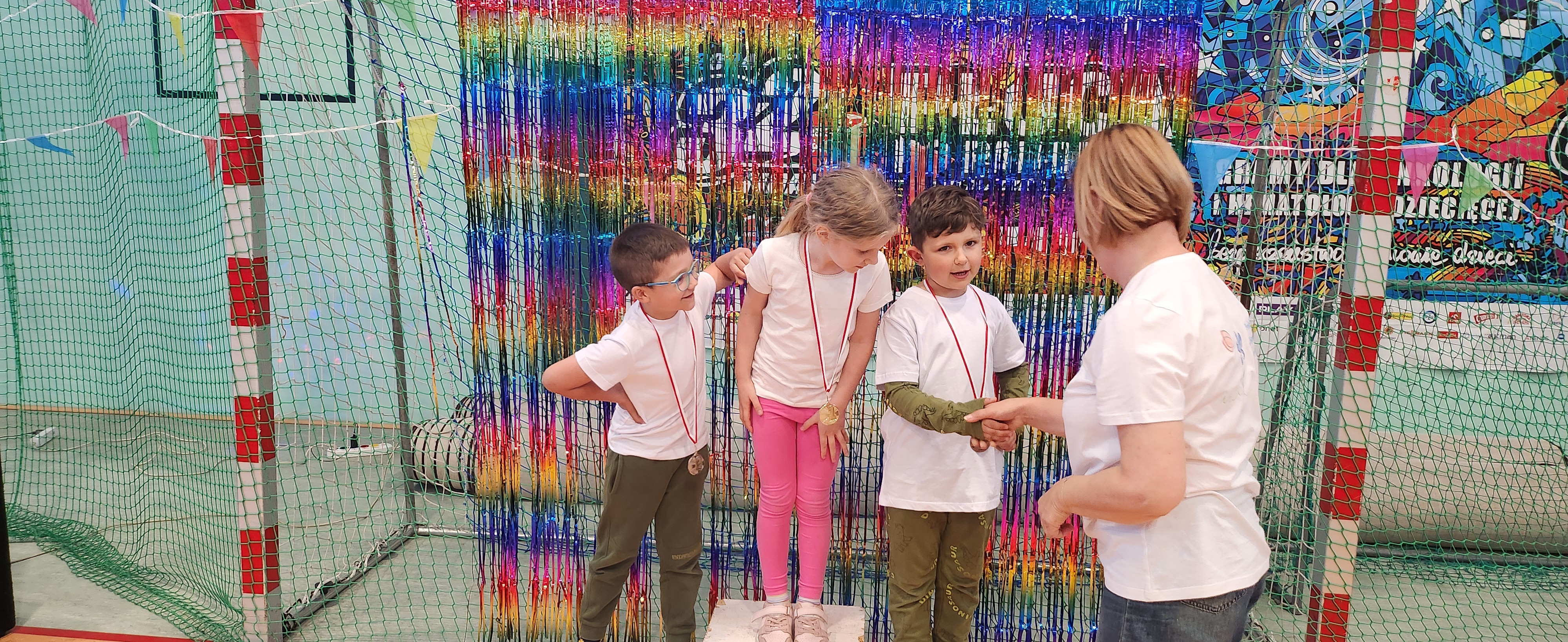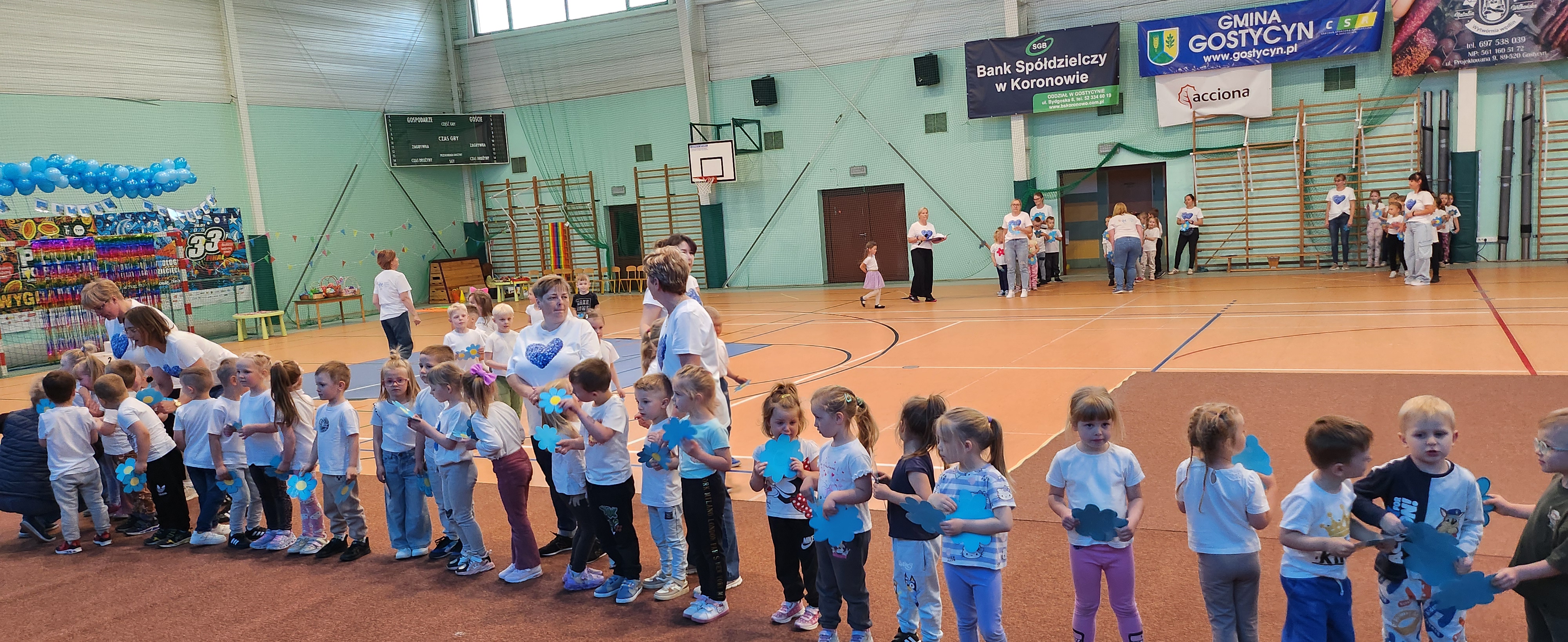 16.05 nasze przedszkole zorganizowało piknik rodzinny dla naszych przedszkolaków i ich najbliższych. Z powodu niesprzyjającej pogody całe wydarzenie odbyło się na Hali Sportowej w Gostycynie. Piknik miał na celu świętowanie urodzin naszej "Niezapominajki" oraz zbliżających się Dni Mamy, Taty i Dziecka. Na początku nasi milusinscy zaprezentowali swoje umiejętności wokalne oraz rytmiczne. Kolejny punkt programu to druga edycja "Biegu o medal Niezapominajki", w którym wzięły udział dzieci z poszczególnych grup przedszkolnych. Następnie przyszła pora na korzystanie z przygotowanych atrakcji (dmuchańce, kącik sensoryczny, malowanie twarzy, warkoczyki, tworzenie breloczków, kącik tatuażu, stoisko czekoladowe, gofry, owoce) oraz konkursy. To był przyjemnie spędzony czas w gronie najbliższych. Serdecznie dziękujemy zaangażowanym rodzicom za pomoc w organizacji przedsięwzięcia.