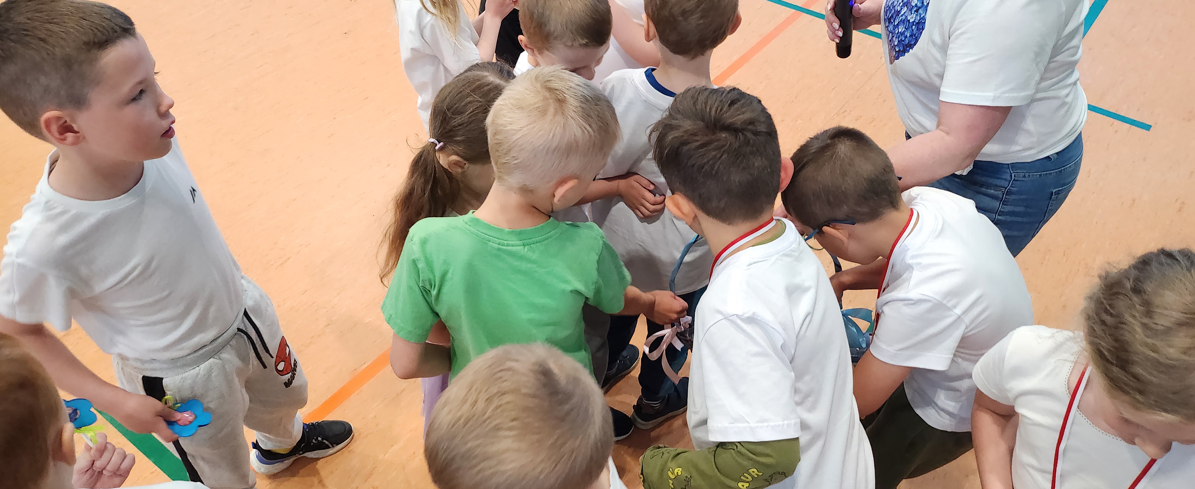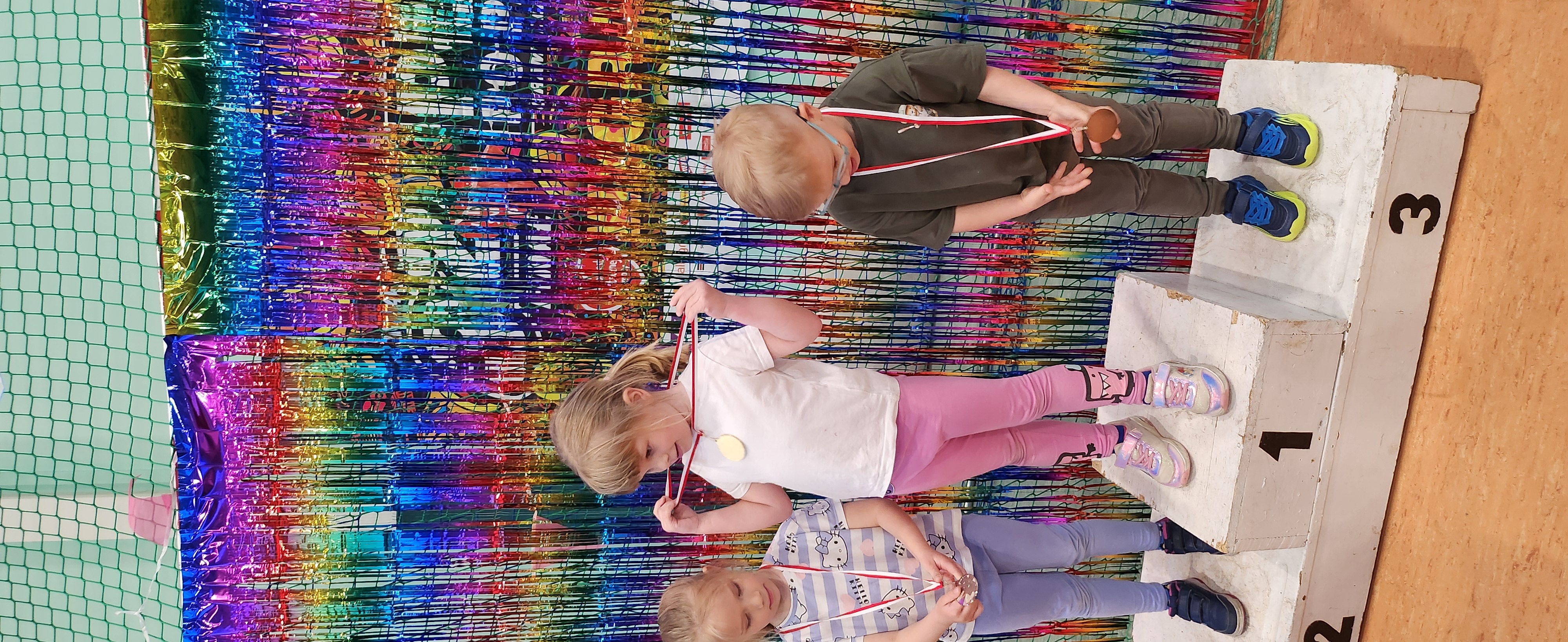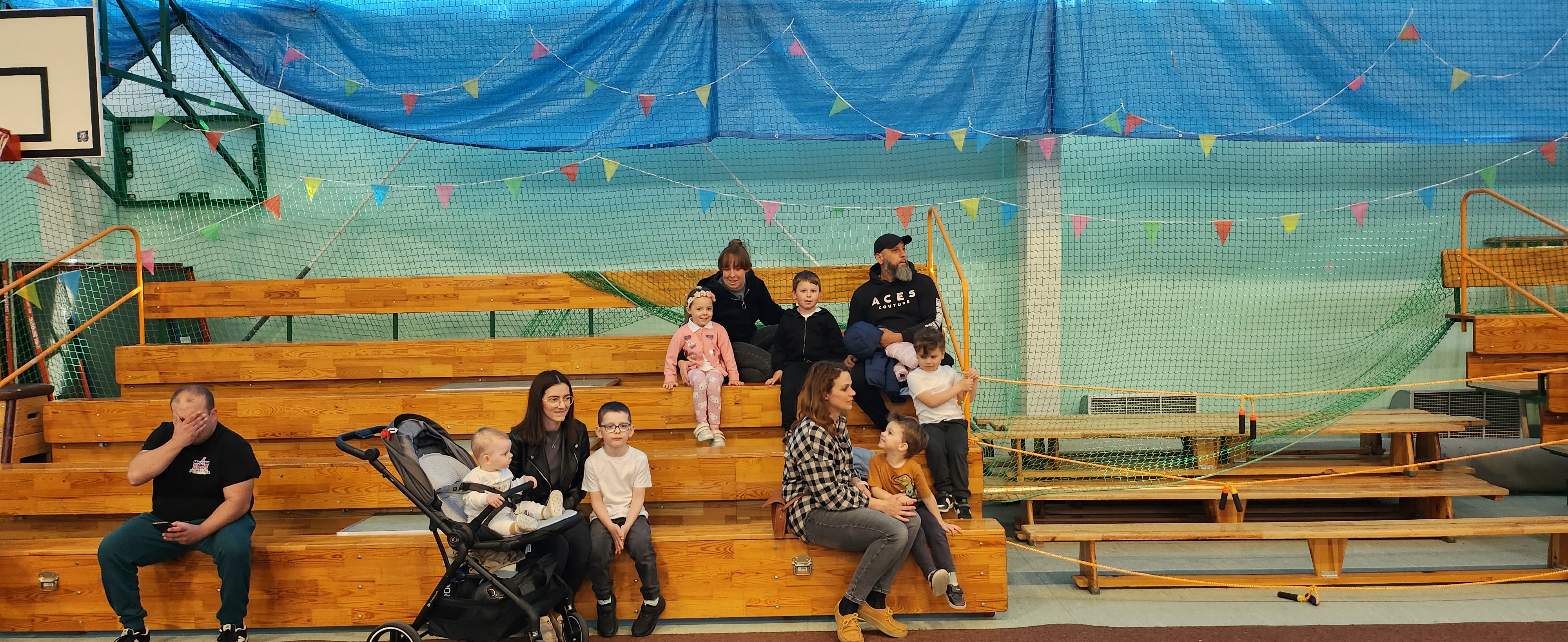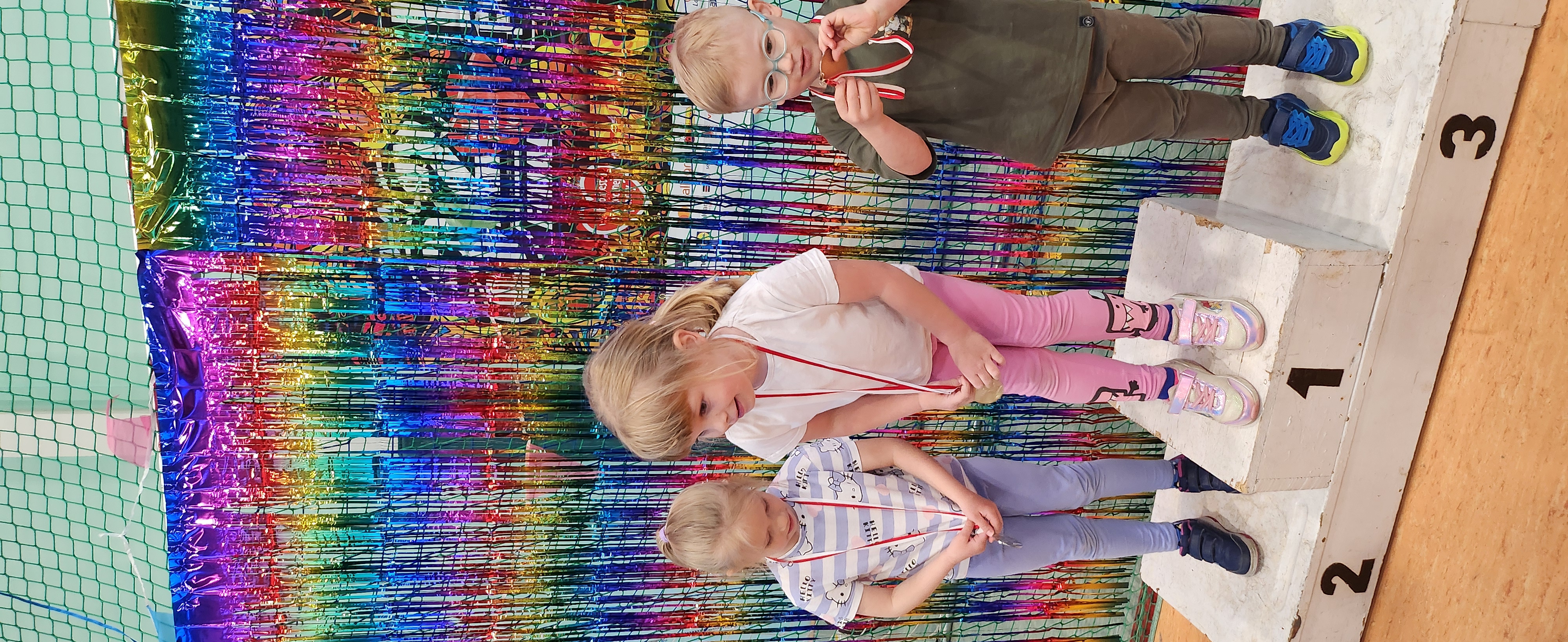 16.05 nasze przedszkole zorganizowało piknik rodzinny dla naszych przedszkolaków i ich najbliższych. Z powodu niesprzyjającej pogody całe wydarzenie odbyło się na Hali Sportowej w Gostycynie. Piknik miał na celu świętowanie urodzin naszej "Niezapominajki" oraz zbliżających się Dni Mamy, Taty i Dziecka. Na początku nasi milusinscy zaprezentowali swoje umiejętności wokalne oraz rytmiczne. Kolejny punkt programu to druga edycja "Biegu o medal Niezapominajki", w którym wzięły udział dzieci z poszczególnych grup przedszkolnych. Następnie przyszła pora na korzystanie z przygotowanych atrakcji (dmuchańce, kącik sensoryczny, malowanie twarzy, warkoczyki, tworzenie breloczków, kącik tatuażu, stoisko czekoladowe, gofry, owoce) oraz konkursy. To był przyjemnie spędzony czas w gronie najbliższych. Serdecznie dziękujemy zaangażowanym rodzicom za pomoc w organizacji przedsięwzięcia.