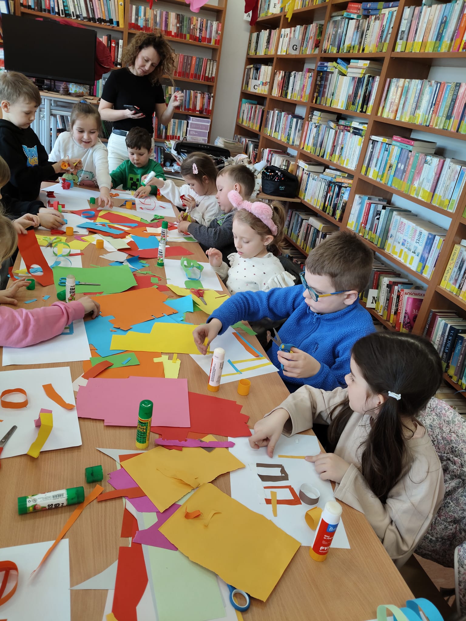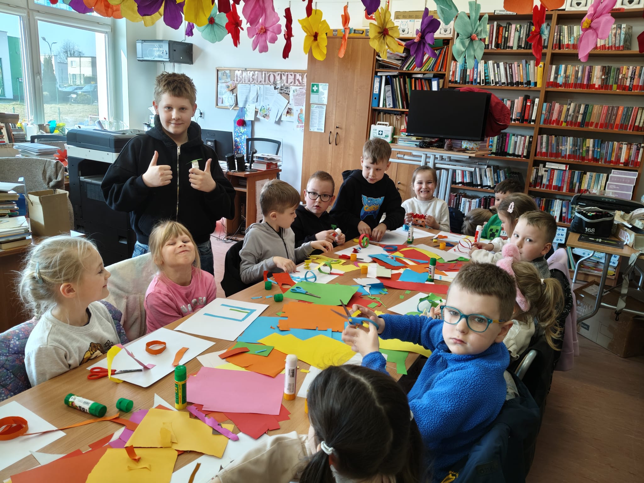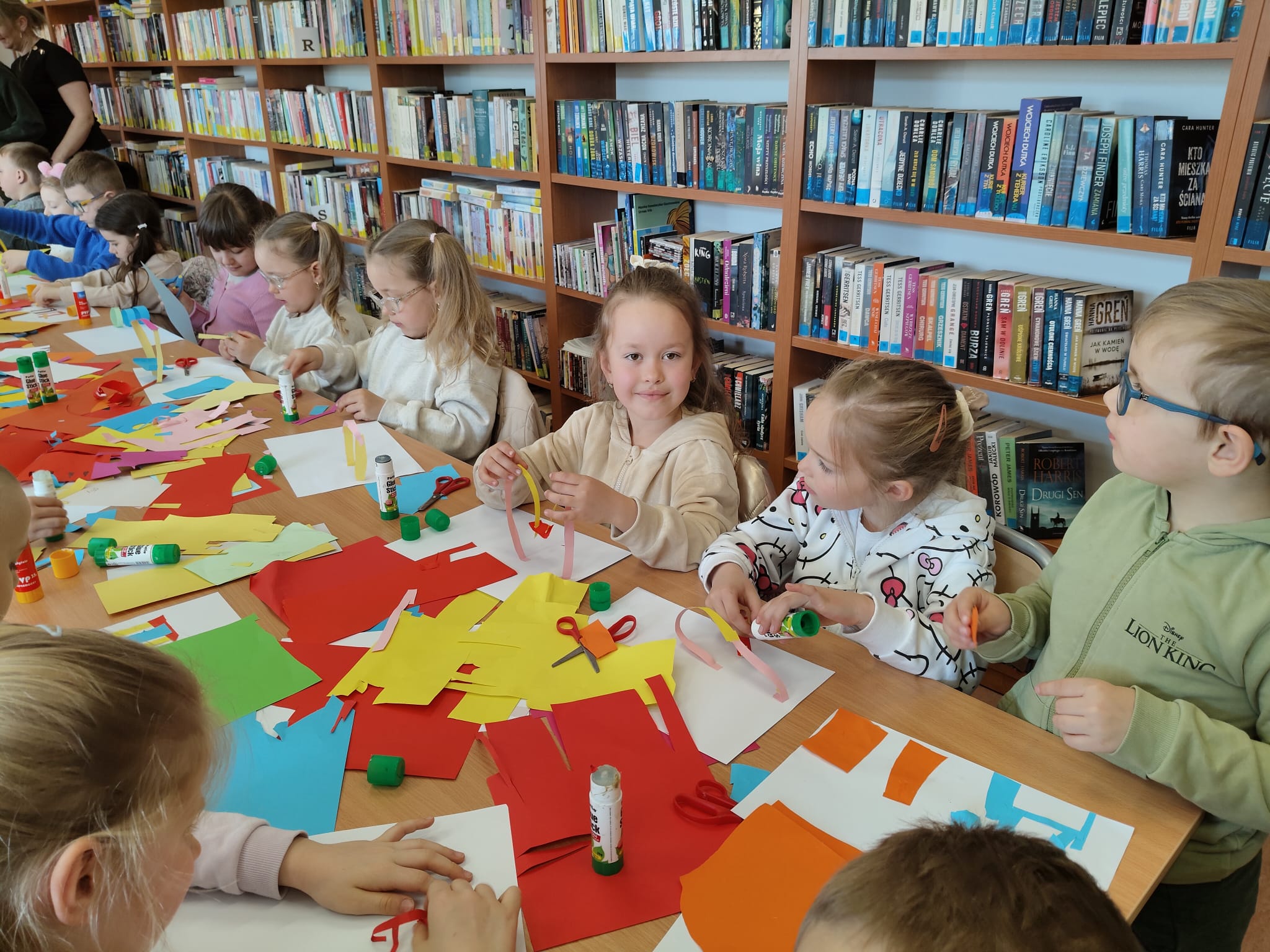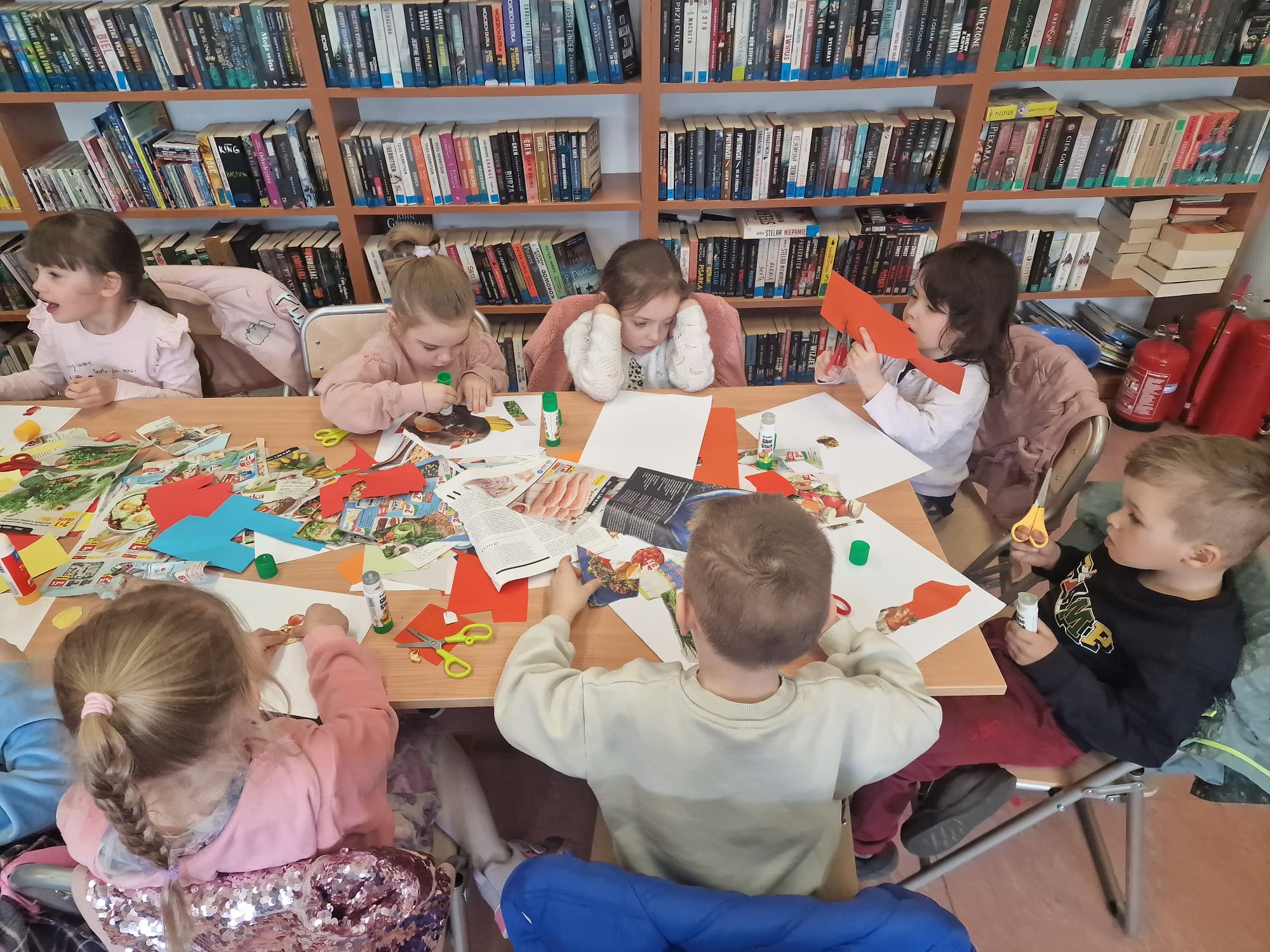 Zajęcia biblioteczne dla dzieci to doskonała okazja do rozwijania wyobraźni, kreatywności oraz umiejętności społecznych. W kwietniu w Gminnej Bibliotece Publicznej odbyły się warsztaty, które łączyły różnorodne formy aktywności – od oglądania i czytania książek, przez zabawy ruchowe, aż po twórczą pracę plastyczną. Dzięki takiemu połączeniu dzieci mogły nie tylko poznawać fascynujący świat literatury, ale także aktywnie spędzać czas, rozwijając swoje zdolności manualne i ruchowe.