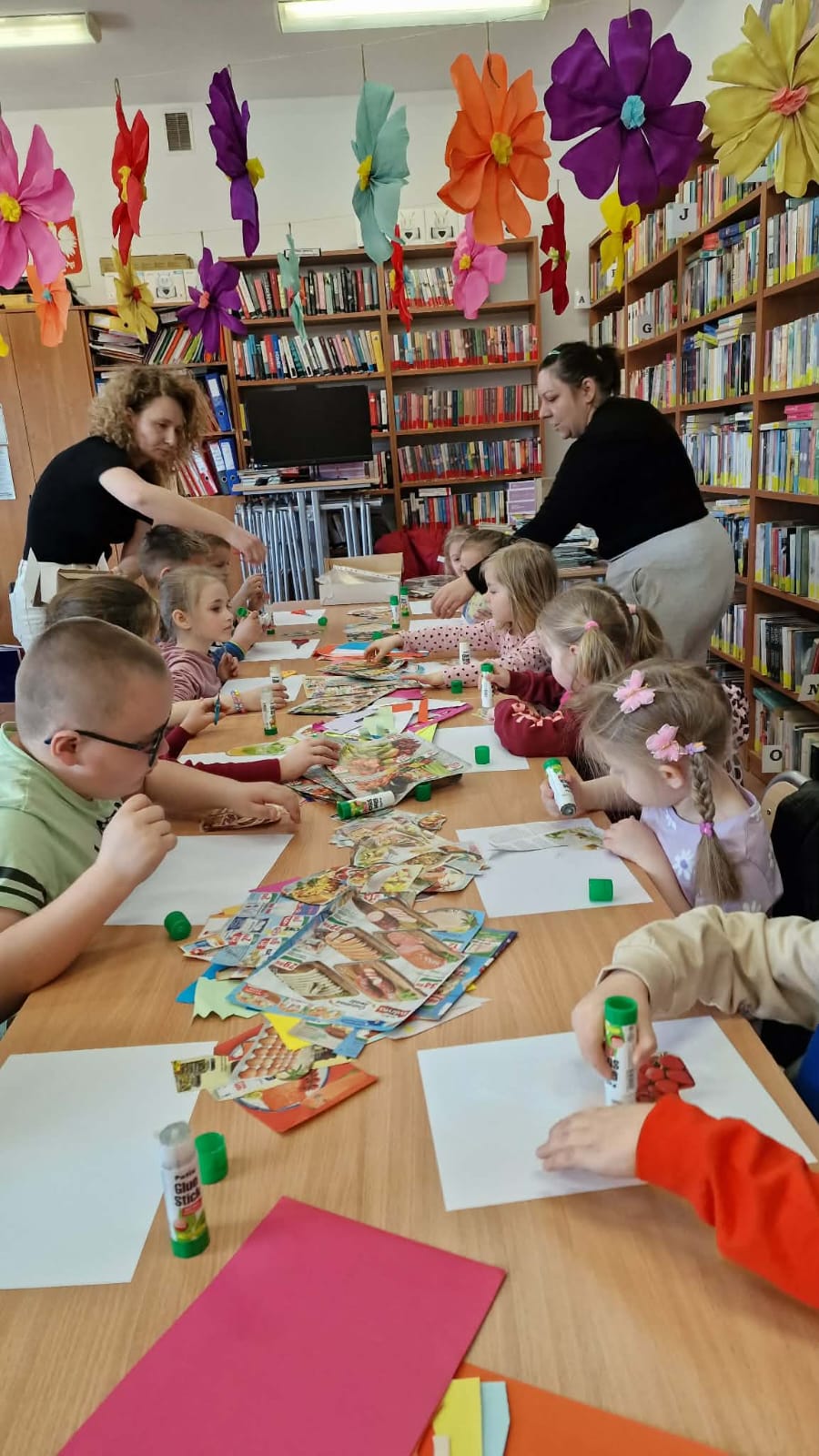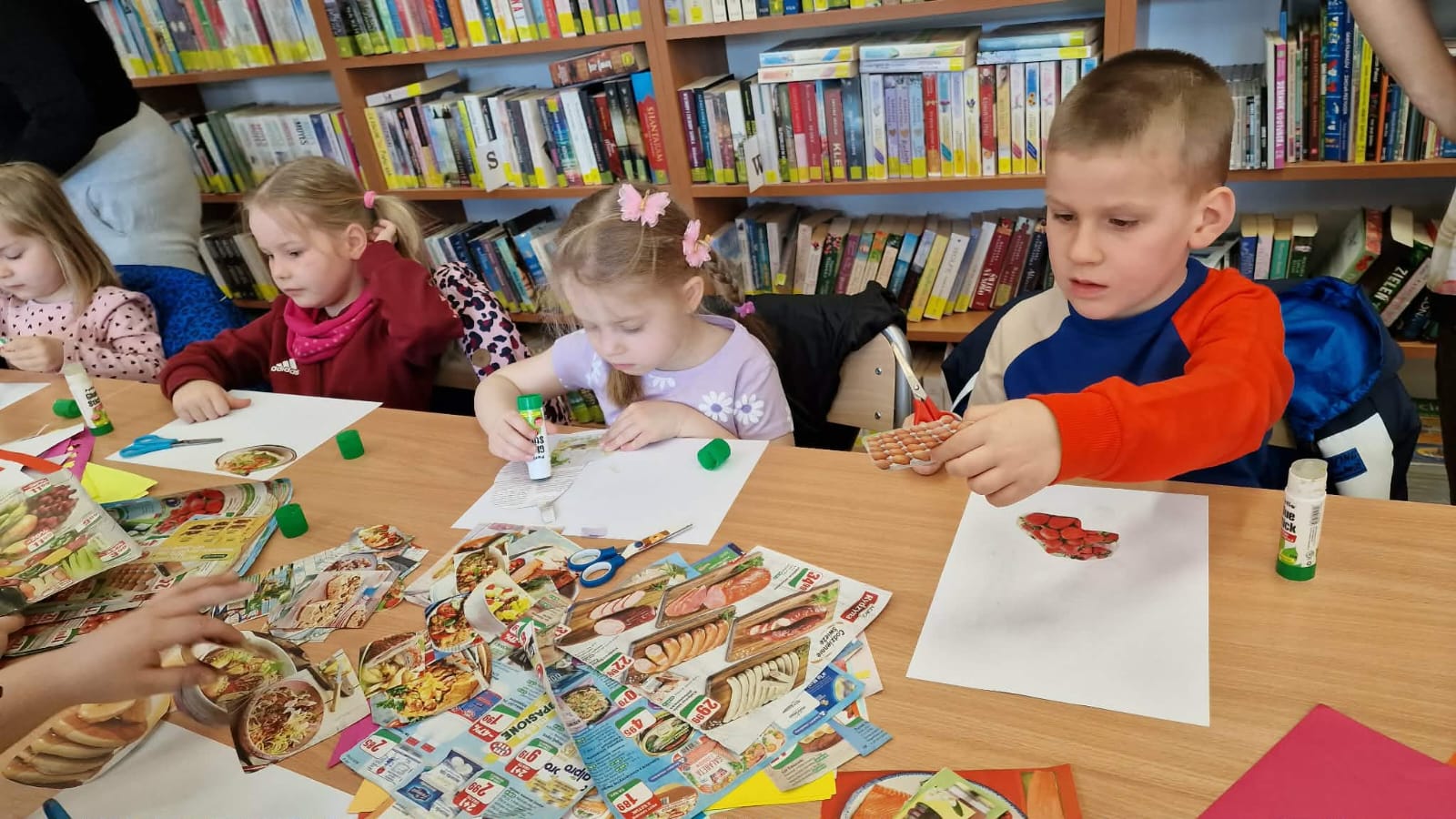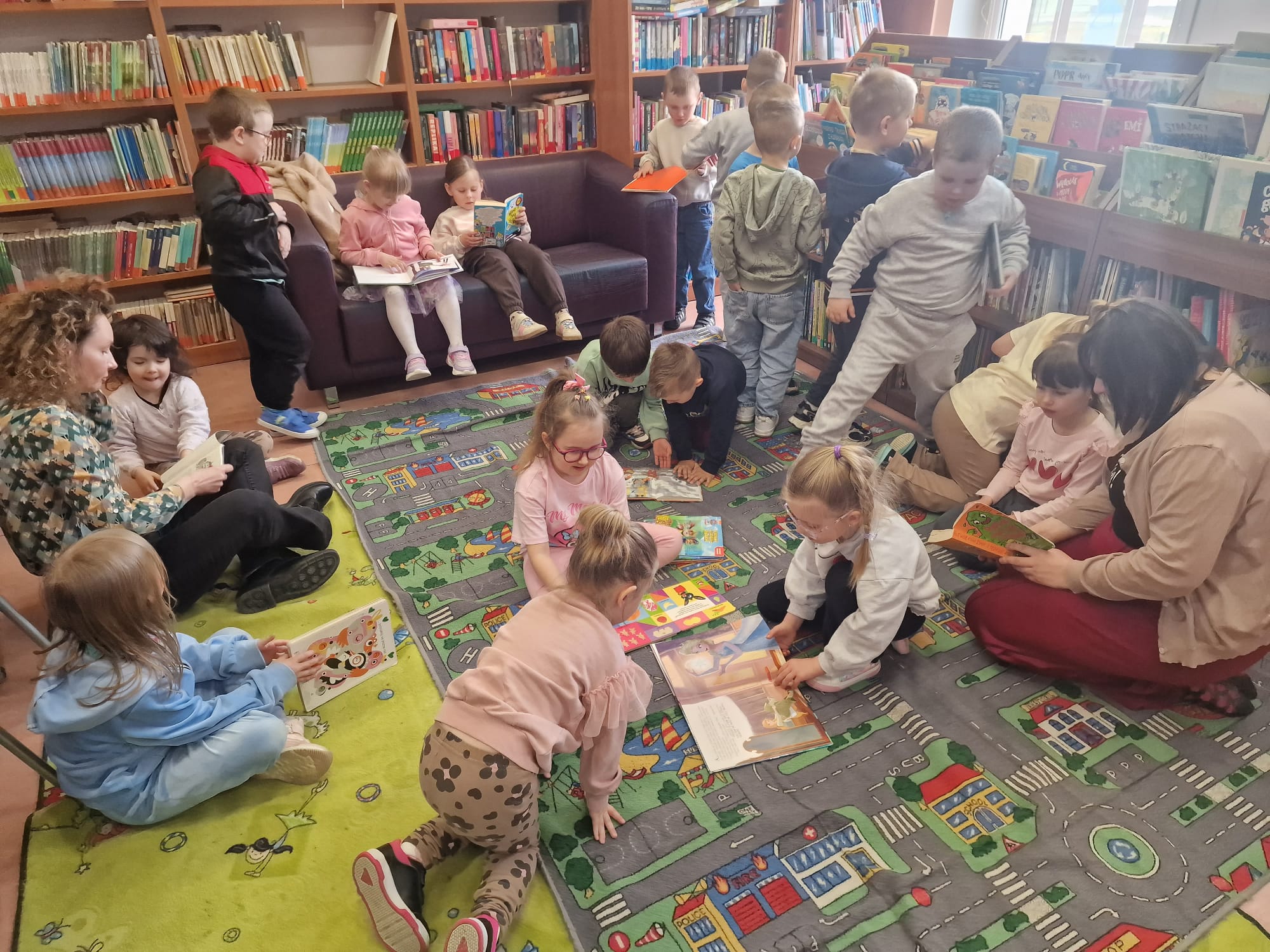 Zajęcia biblioteczne dla dzieci to doskonała okazja do rozwijania wyobraźni, kreatywności oraz umiejętności społecznych. W kwietniu w Gminnej Bibliotece Publicznej odbyły się warsztaty, które łączyły różnorodne formy aktywności – od oglądania i czytania książek, przez zabawy ruchowe, aż po twórczą pracę plastyczną. Dzięki takiemu połączeniu dzieci mogły nie tylko poznawać fascynujący świat literatury, ale także aktywnie spędzać czas, rozwijając swoje zdolności manualne i ruchowe.