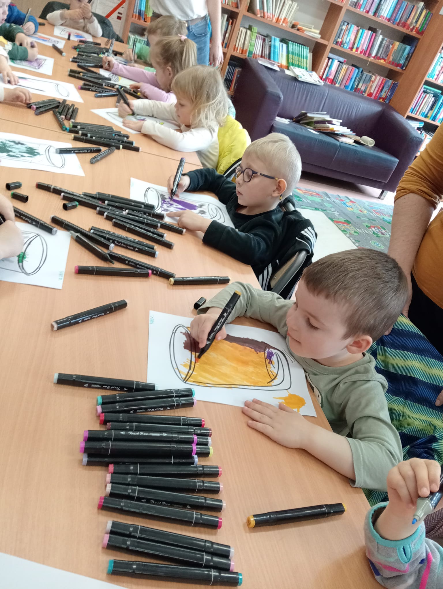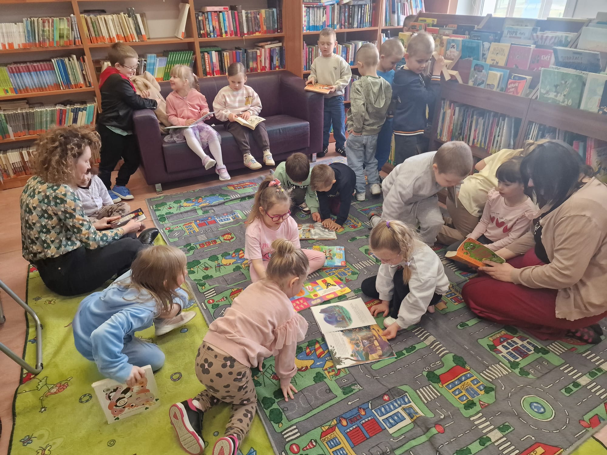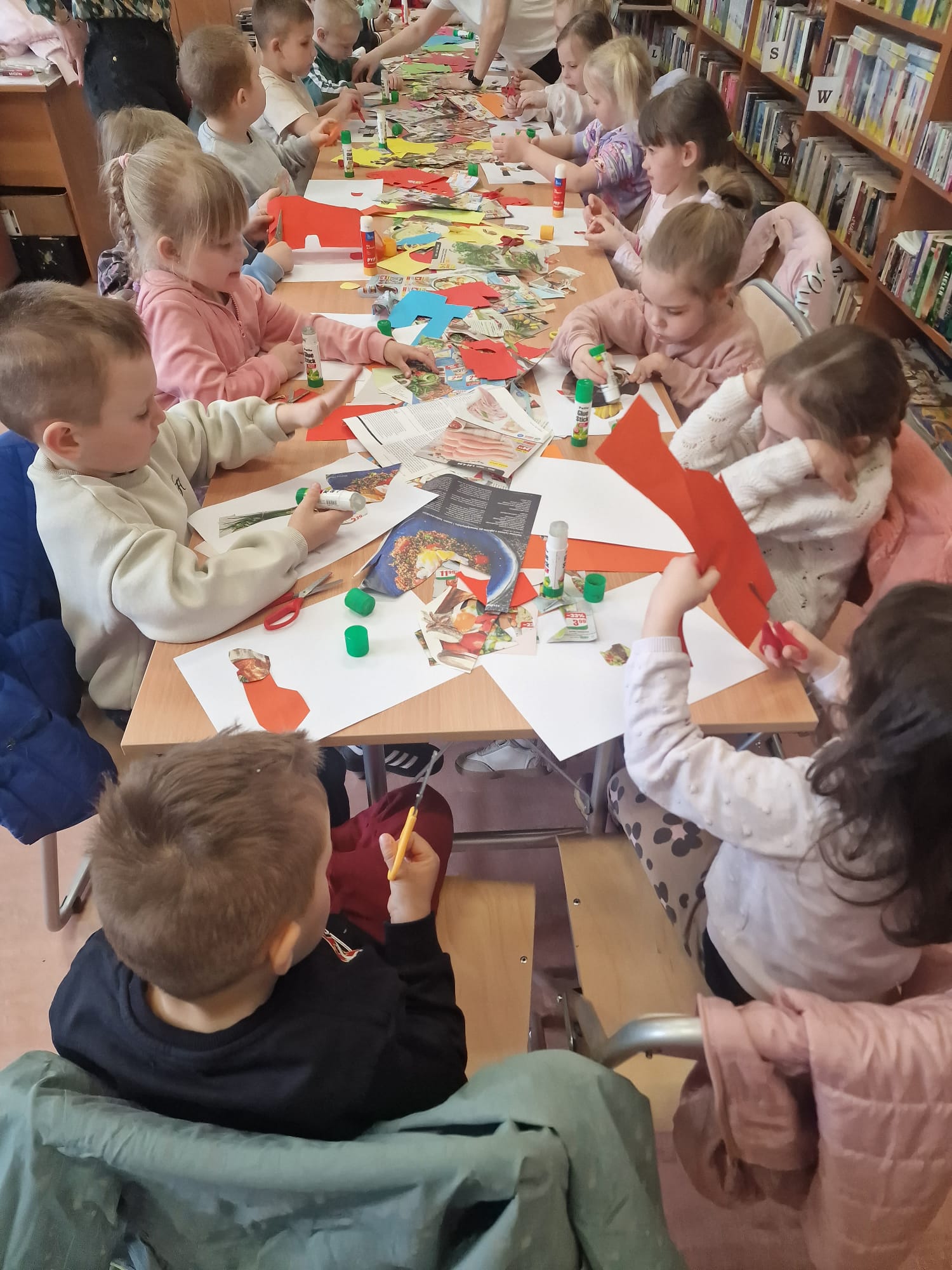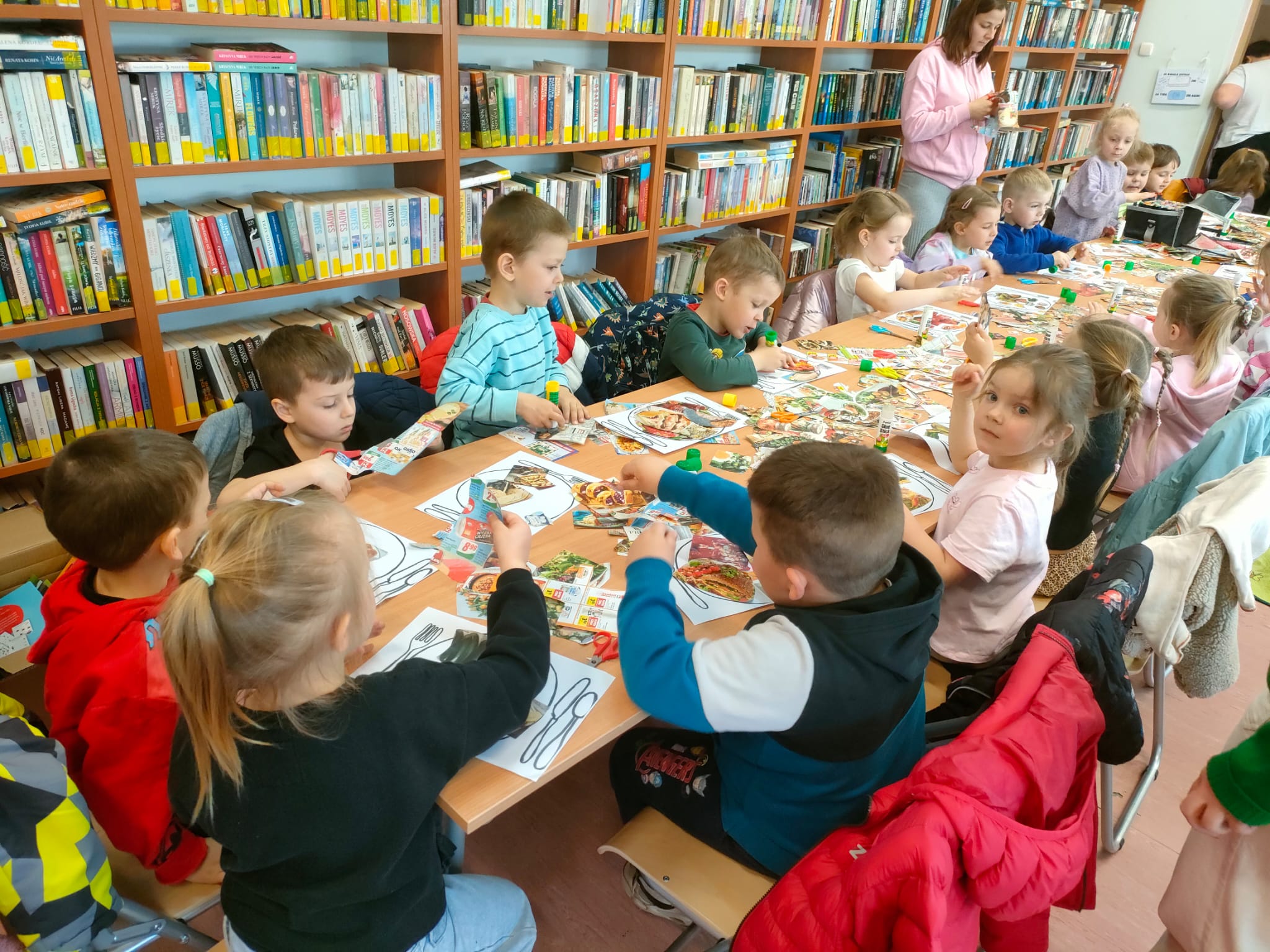 Zajęcia biblioteczne dla dzieci to doskonała okazja do rozwijania wyobraźni, kreatywności oraz umiejętności społecznych. W kwietniu w Gminnej Bibliotece Publicznej odbyły się warsztaty, które łączyły różnorodne formy aktywności – od oglądania i czytania książek, przez zabawy ruchowe, aż po twórczą pracę plastyczną. Dzięki takiemu połączeniu dzieci mogły nie tylko poznawać fascynujący świat literatury, ale także aktywnie spędzać czas, rozwijając swoje zdolności manualne i ruchowe.