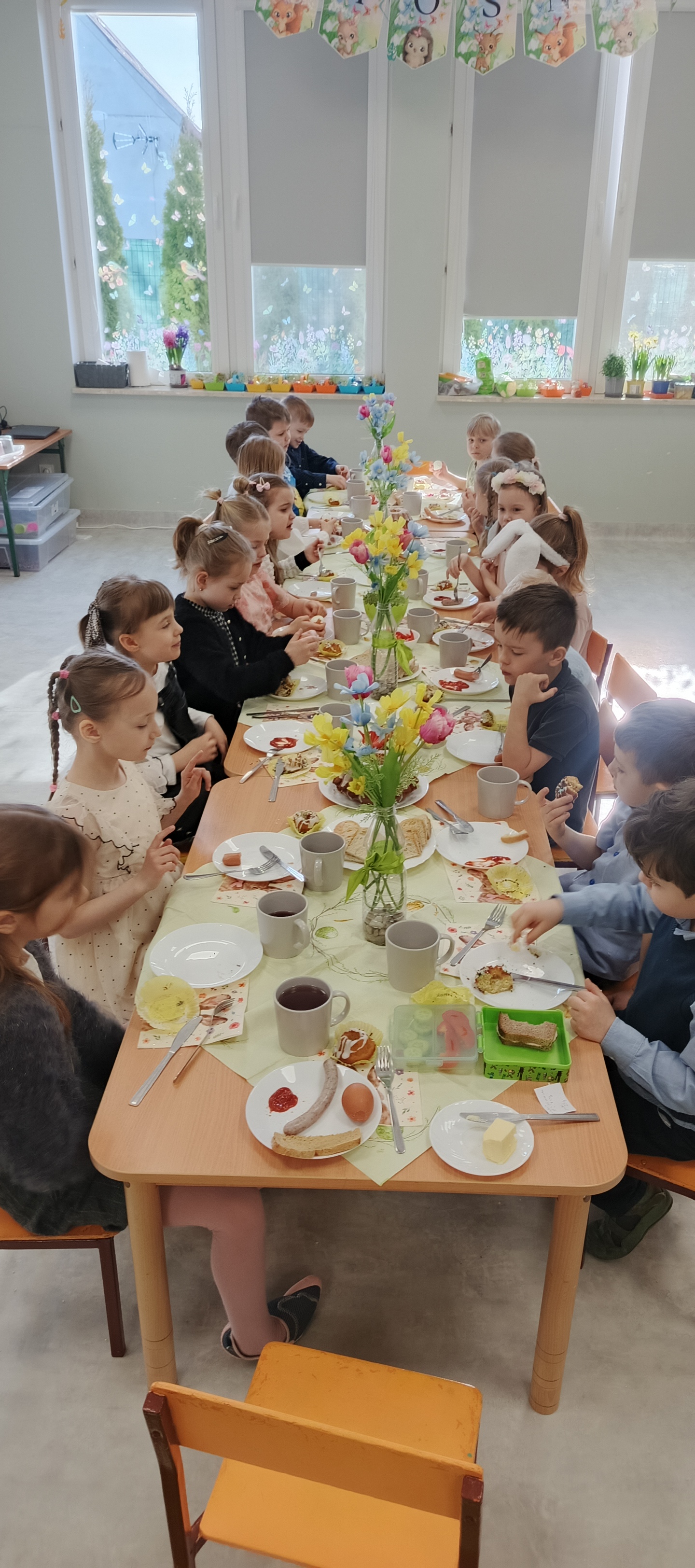 W "Niezapominajce" odbyło się radosne Śniadanie Wielkanocne, podczas którego dzieci miały okazję wspólnie celebrować świąteczne tradycje. Stoły były pięknie udekorowane, a na nich pojawiły się smaczne i zdrowe przysmaki.