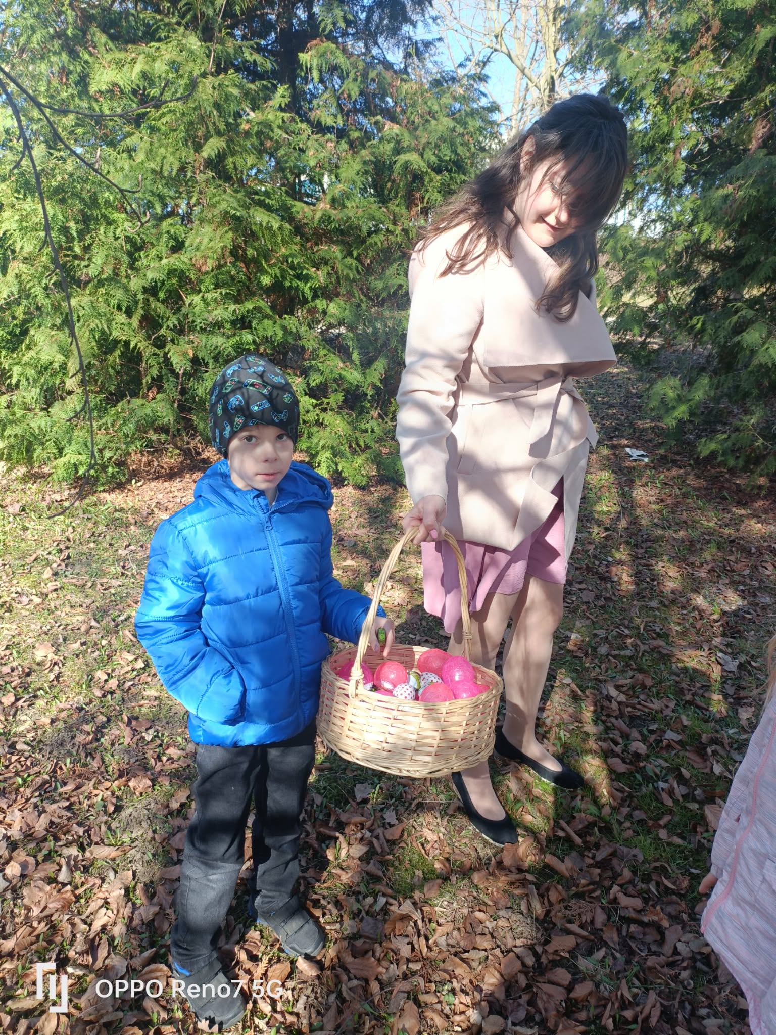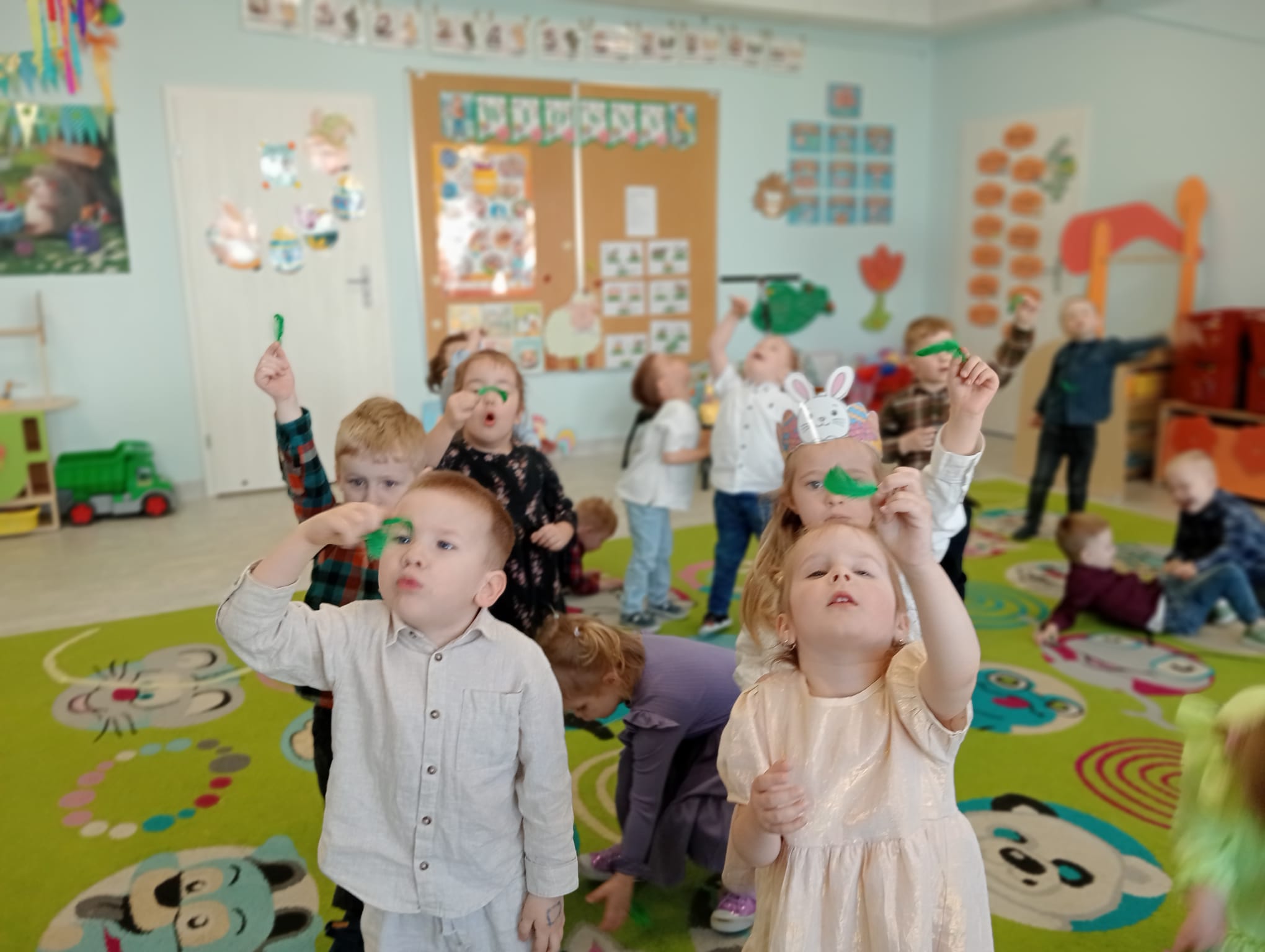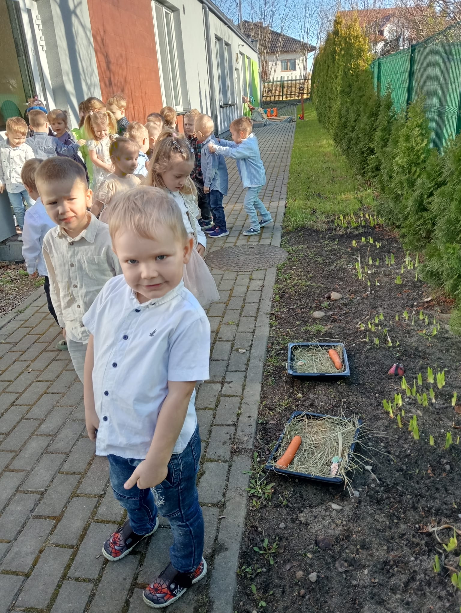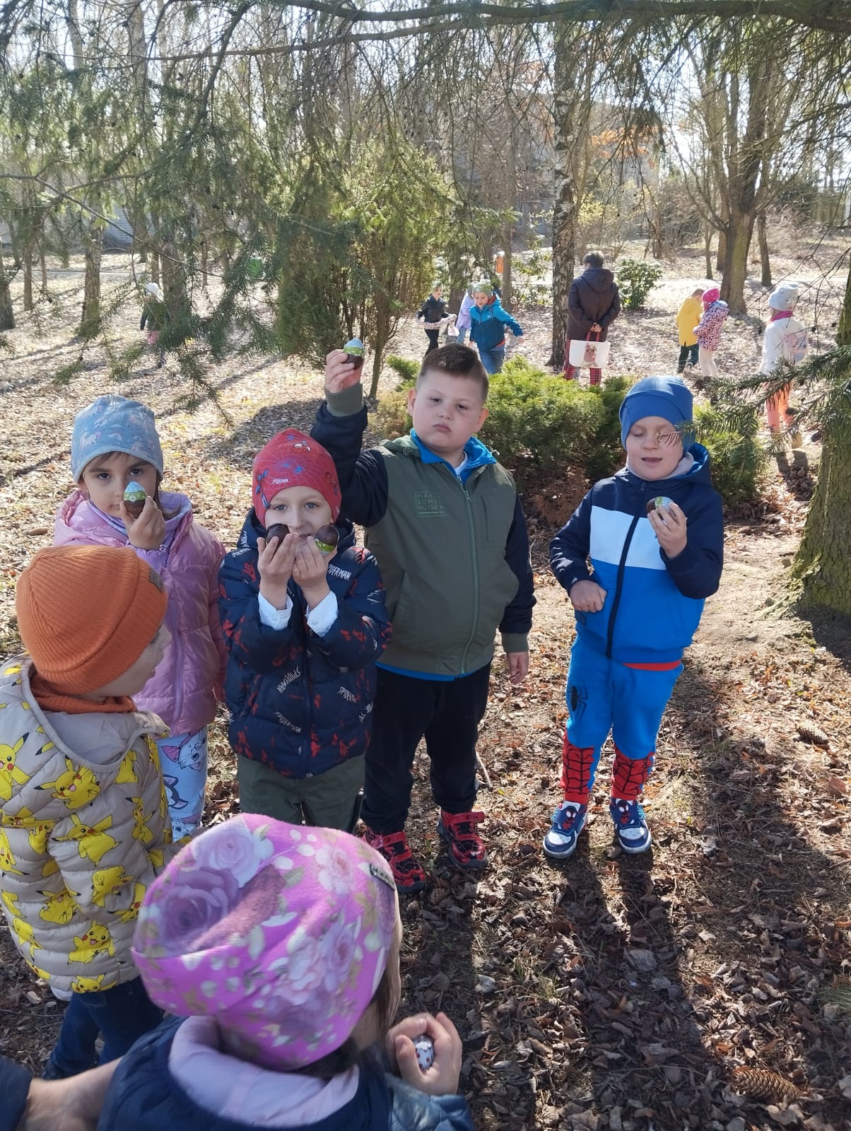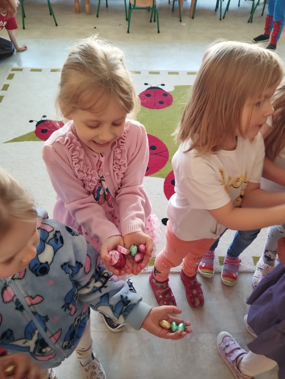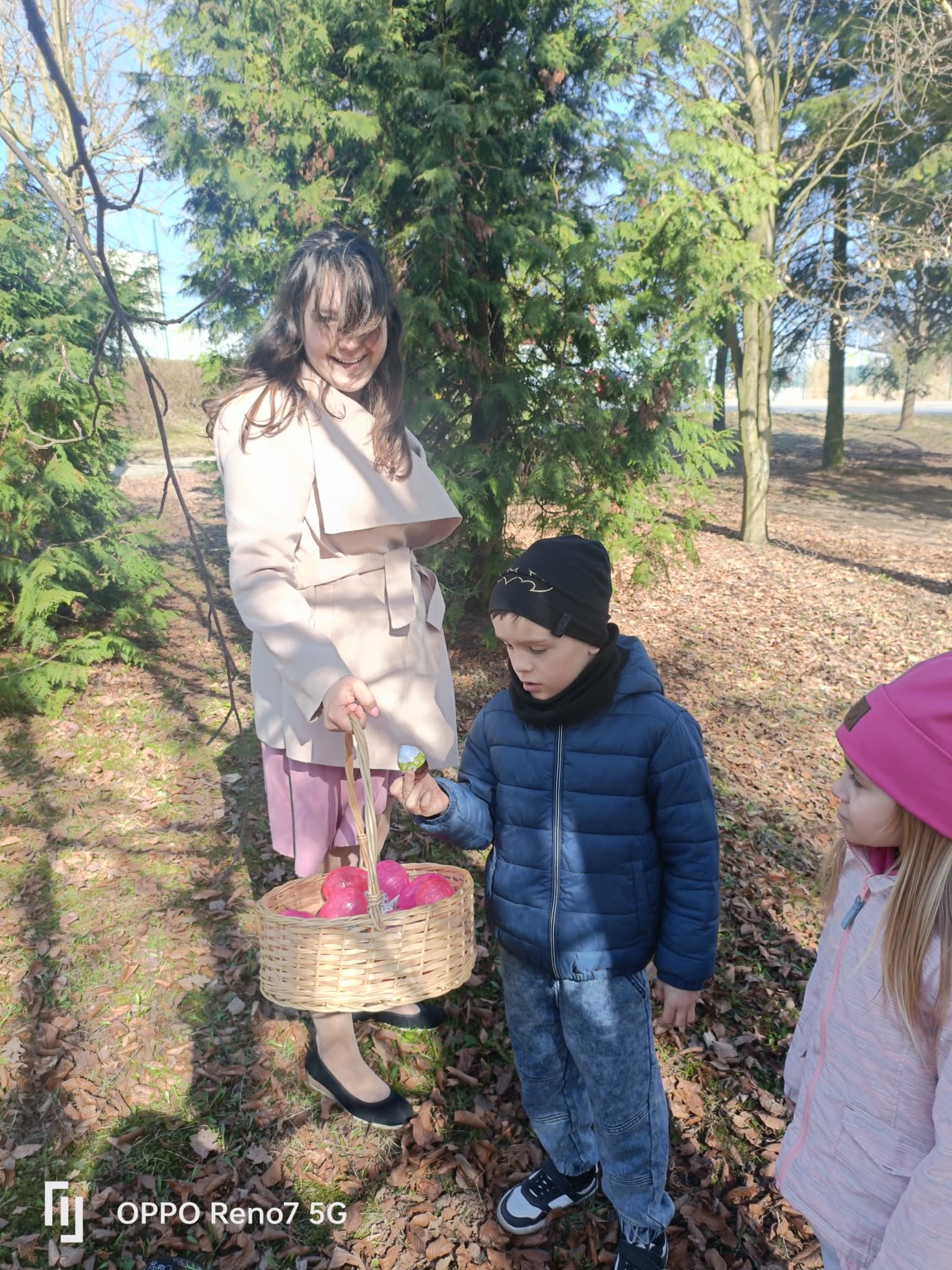 Po śniadaniu na przedszkolaki czekała wyjątkowa niespodzianka – poszukiwanie jajek od Zajączka Wielkanocnego. Dzieci z ogromnym zaangażowaniem i uśmiechem na twarzach szukały ukrytych niespodzianek , co sprawiło im wiele radości i dostarczyło niezapomnianych wrażeń.