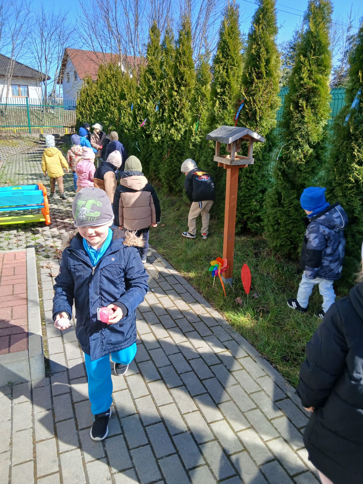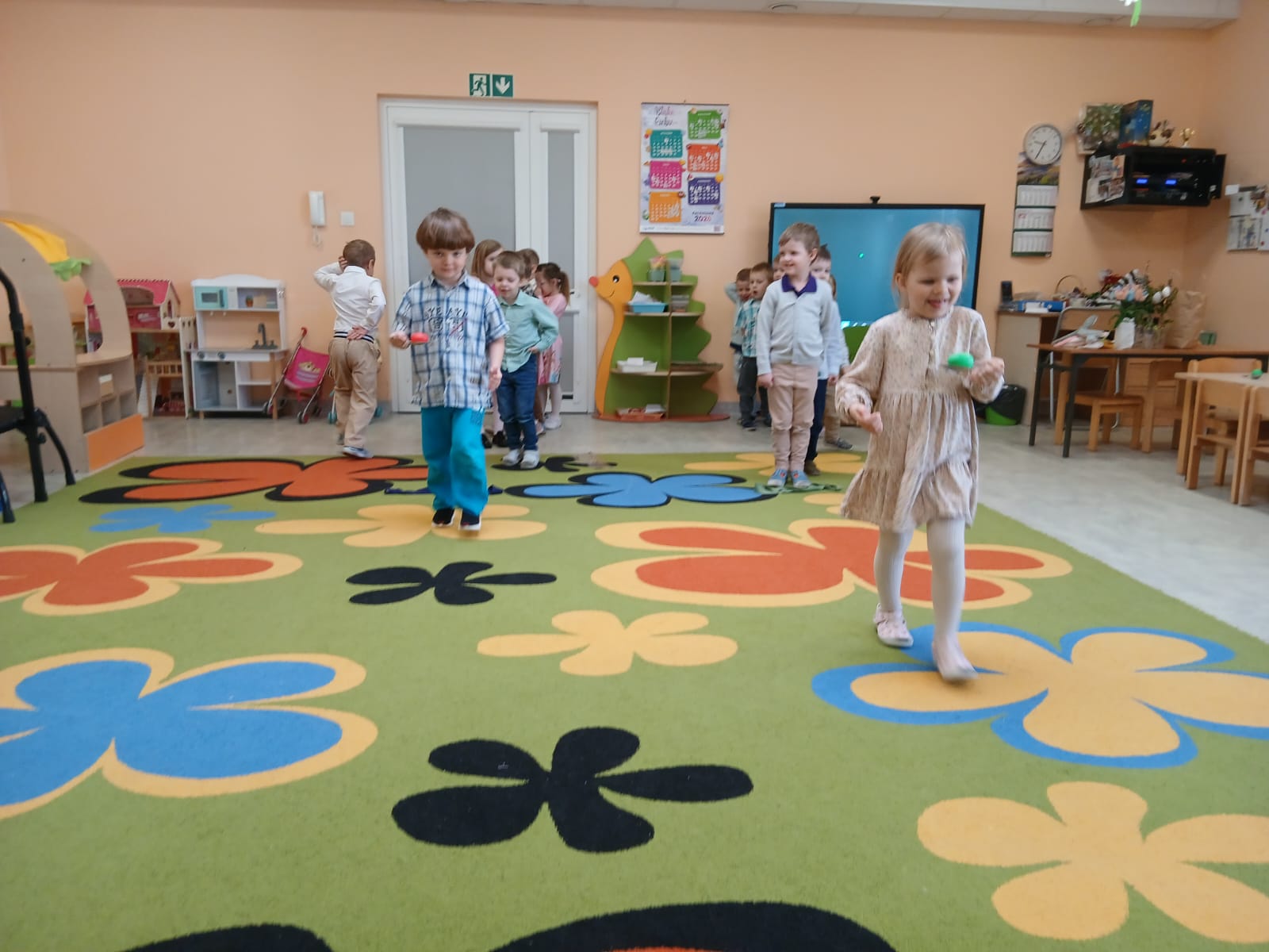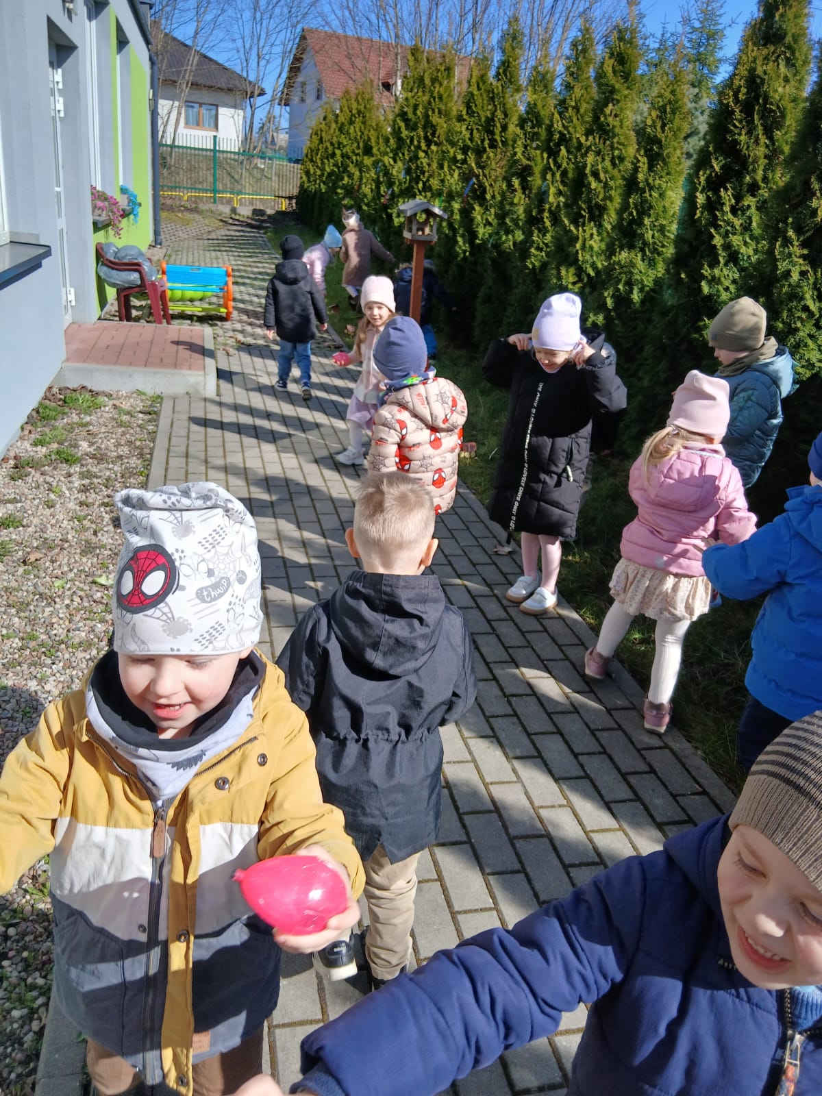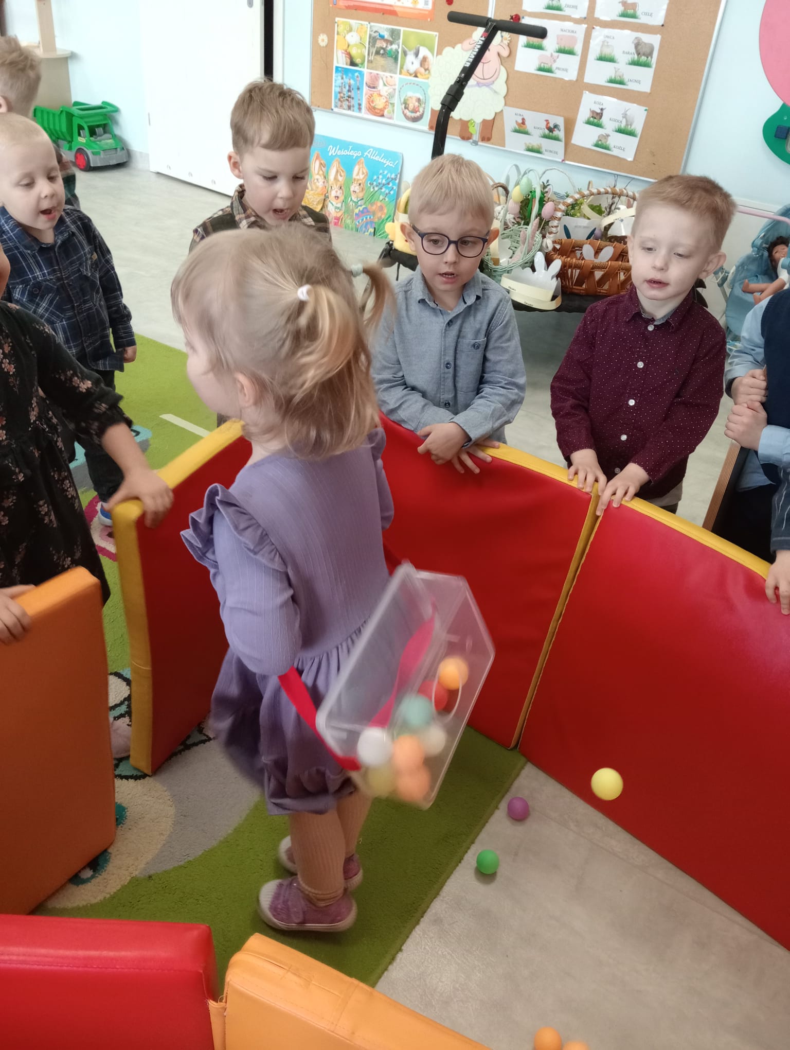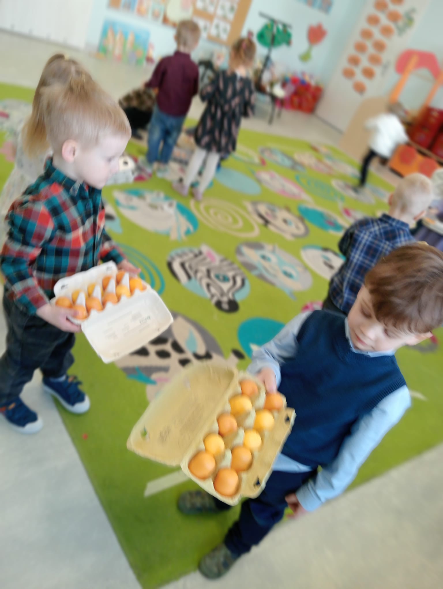 Po śniadaniu na przedszkolaki czekała wyjątkowa niespodzianka – poszukiwanie jajek od Zajączka Wielkanocnego. Dzieci z ogromnym zaangażowaniem i uśmiechem na twarzach szukały ukrytych niespodzianek , co sprawiło im wiele radości i dostarczyło niezapomnianych wrażeń.