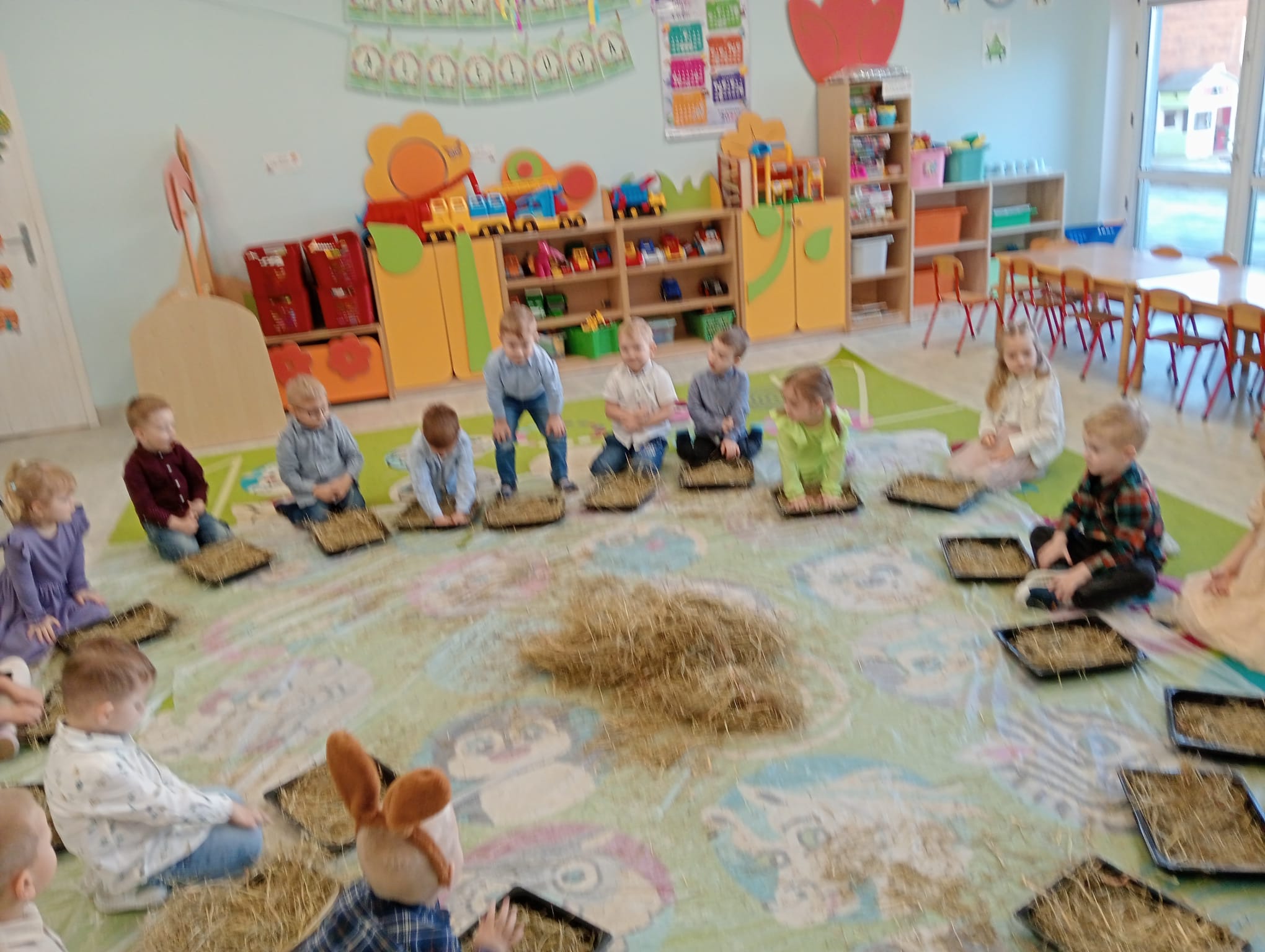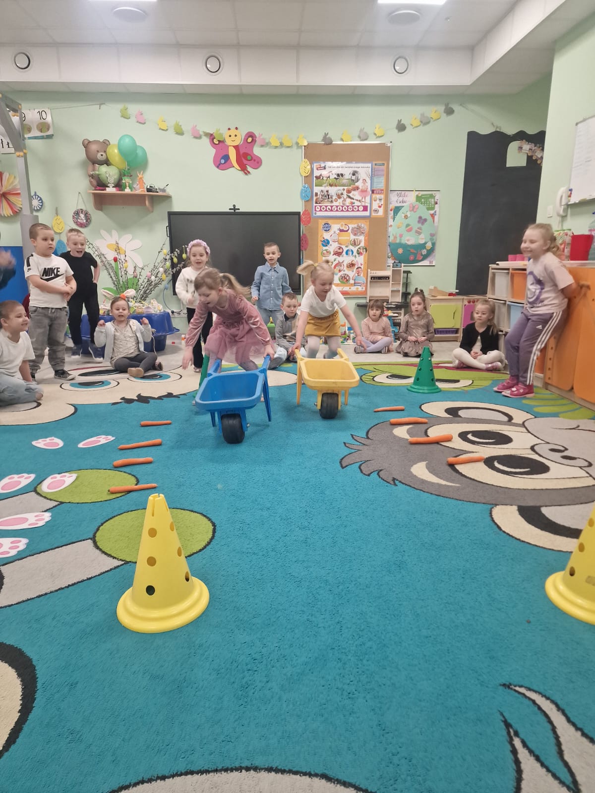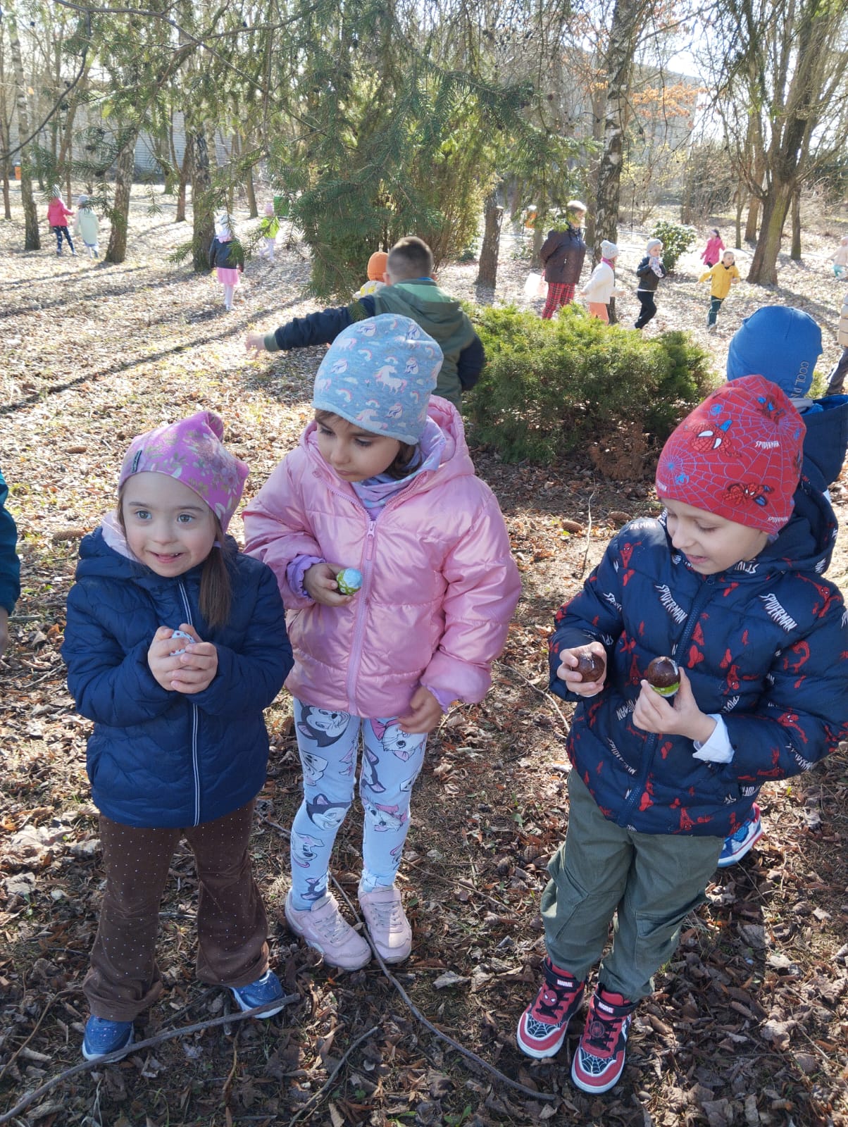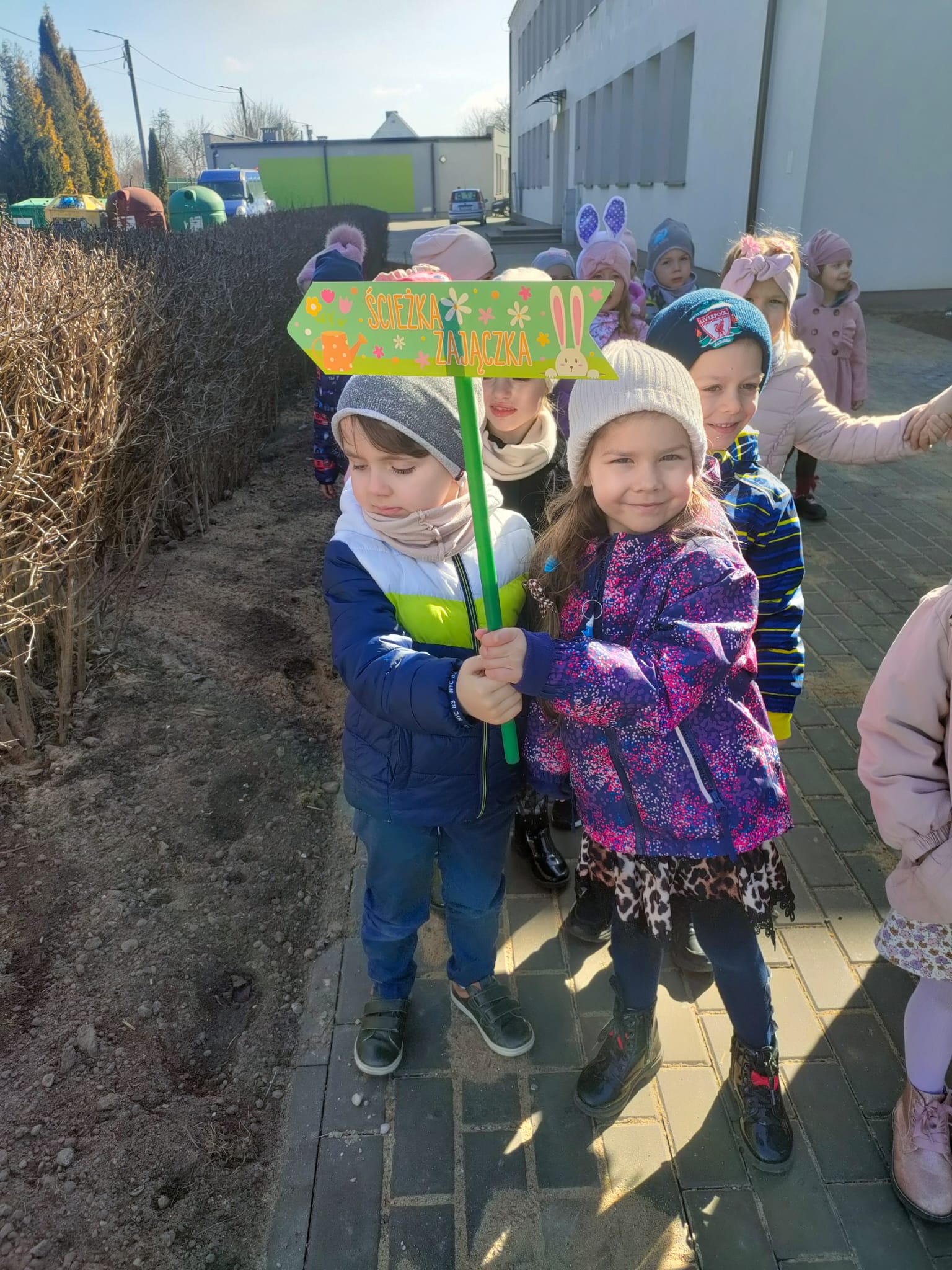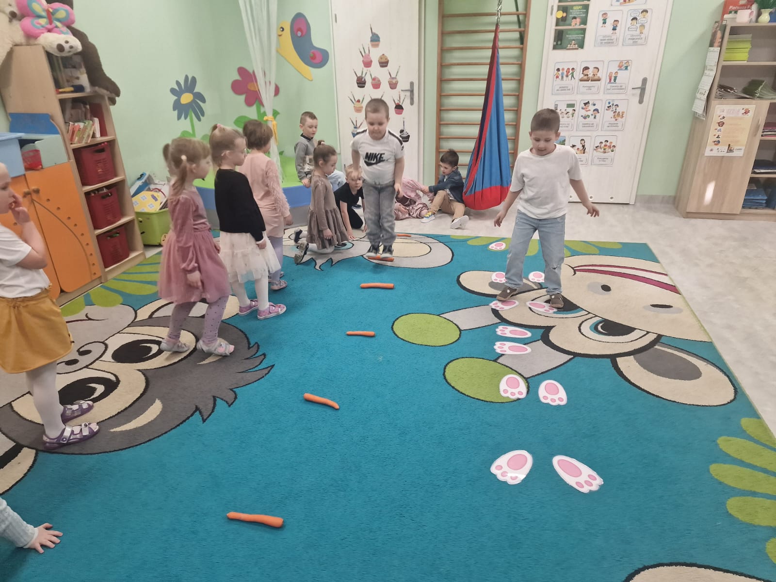 Po śniadaniu na przedszkolaki czekała wyjątkowa niespodzianka – poszukiwanie jajek od Zajączka Wielkanocnego. Dzieci z ogromnym zaangażowaniem i uśmiechem na twarzach szukały ukrytych niespodzianek , co sprawiło im wiele radości i dostarczyło niezapomnianych wrażeń.