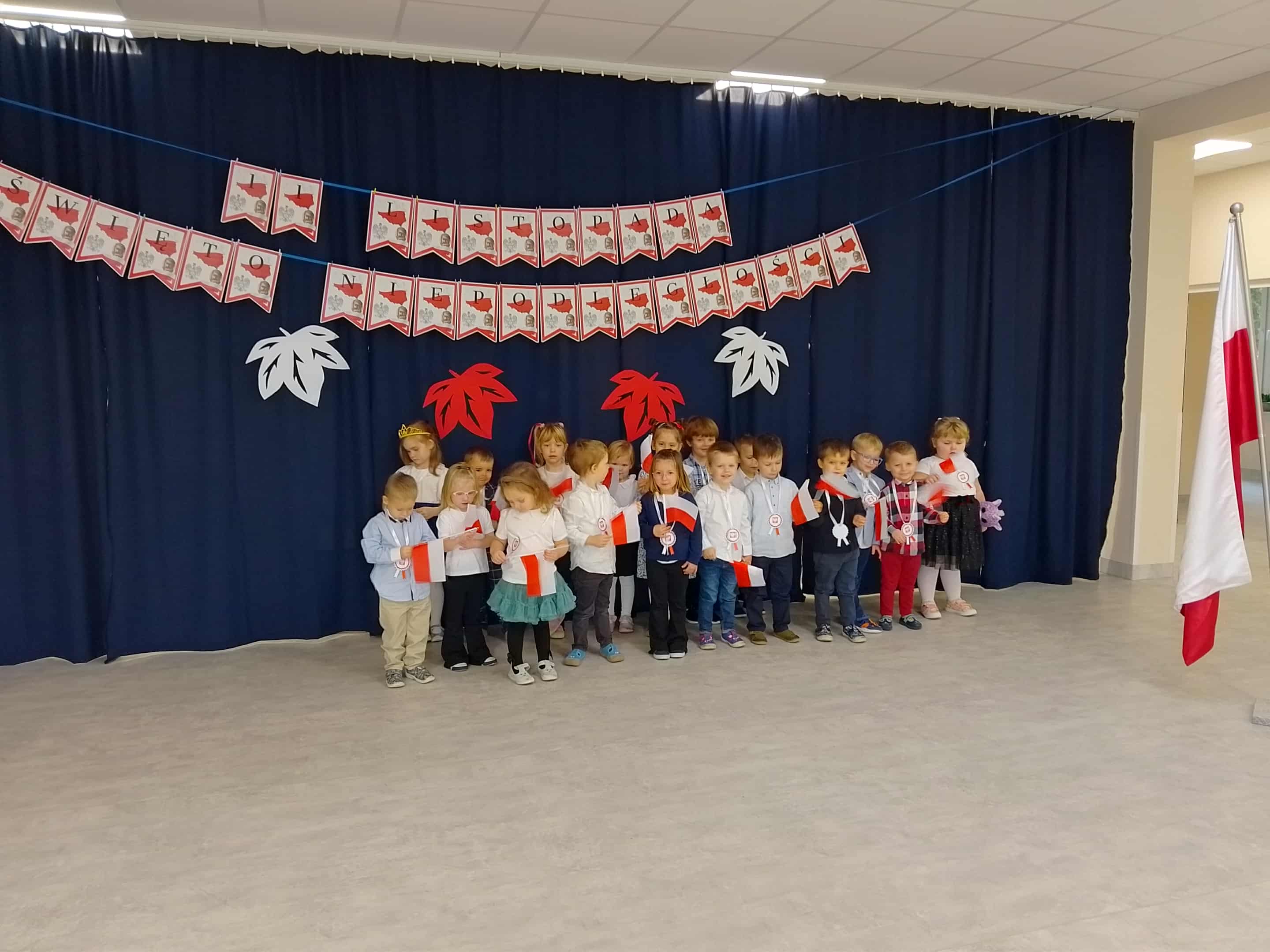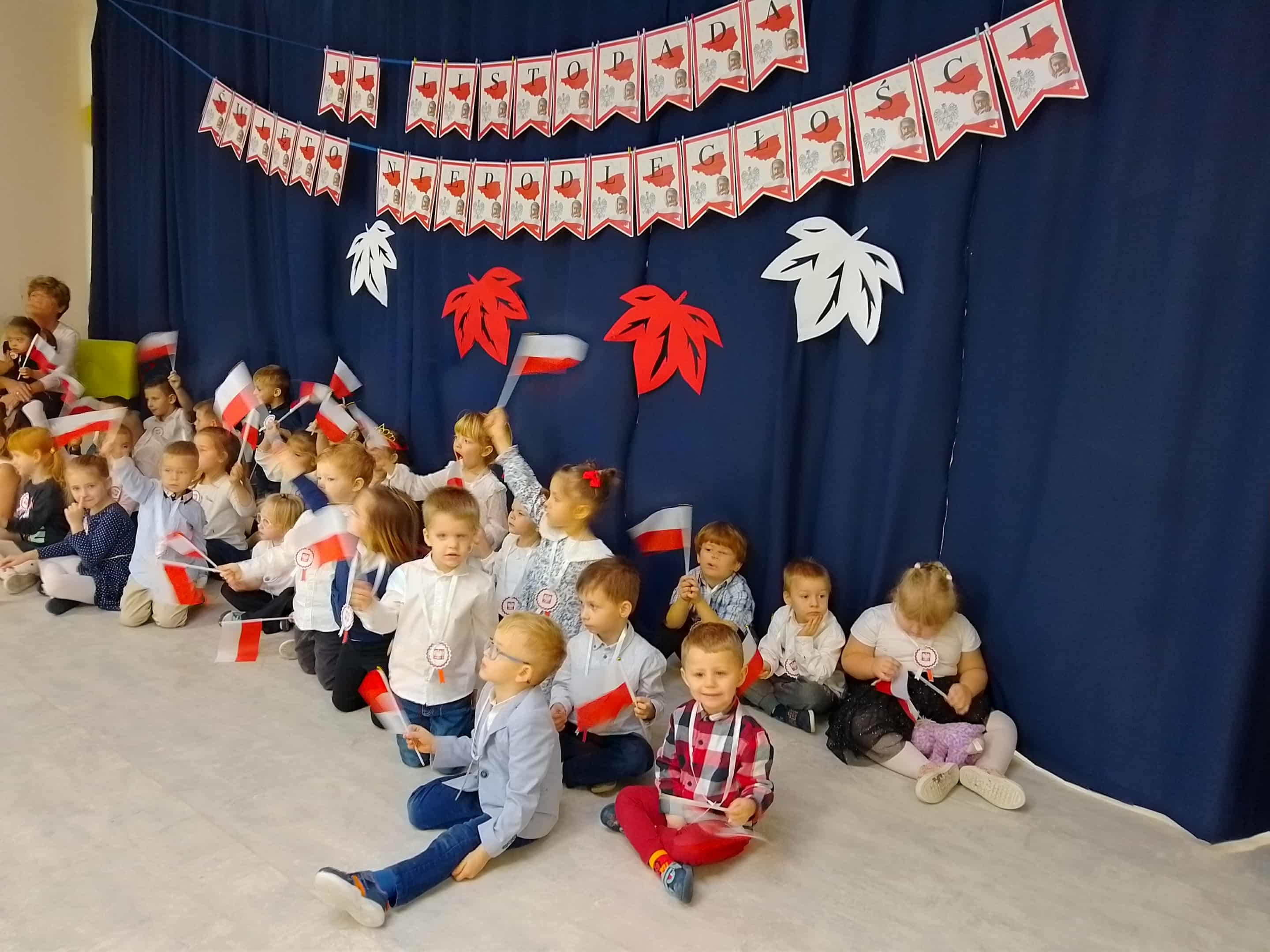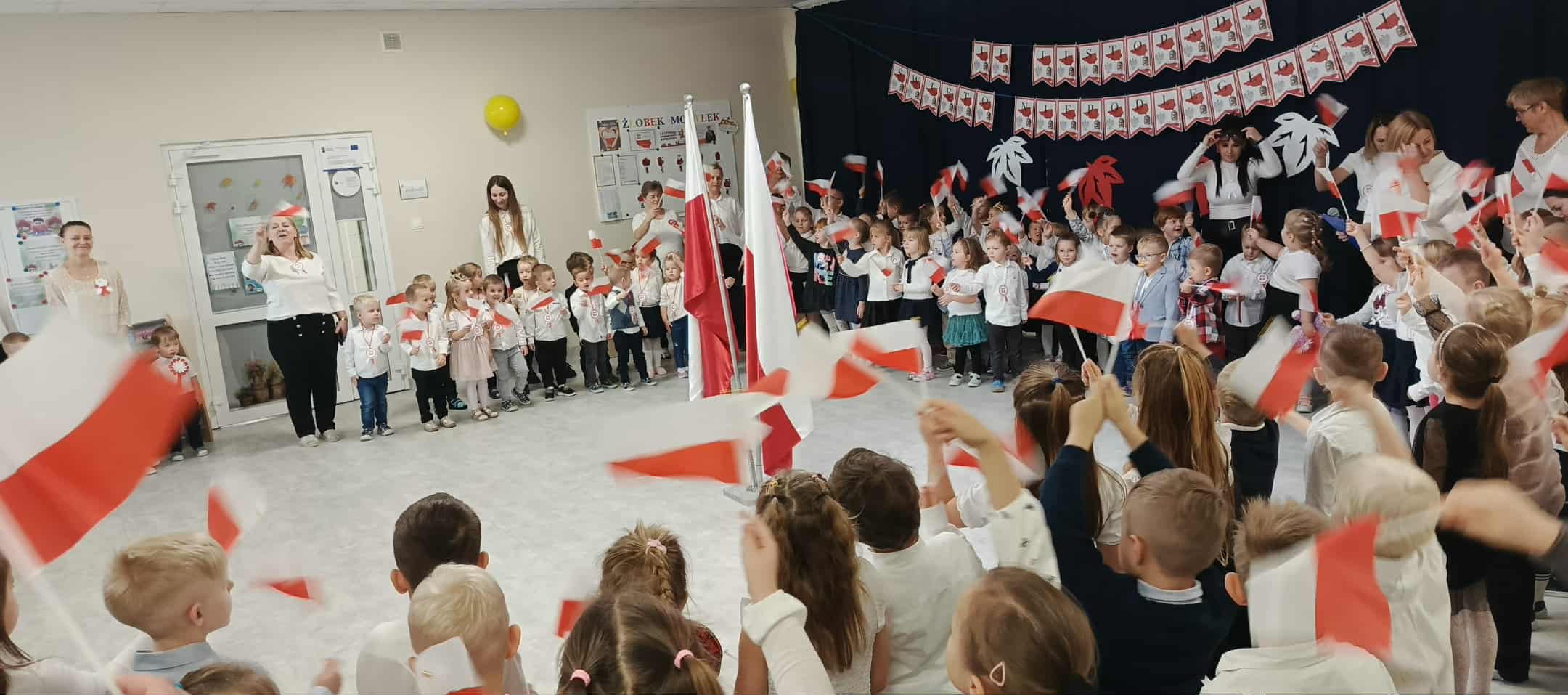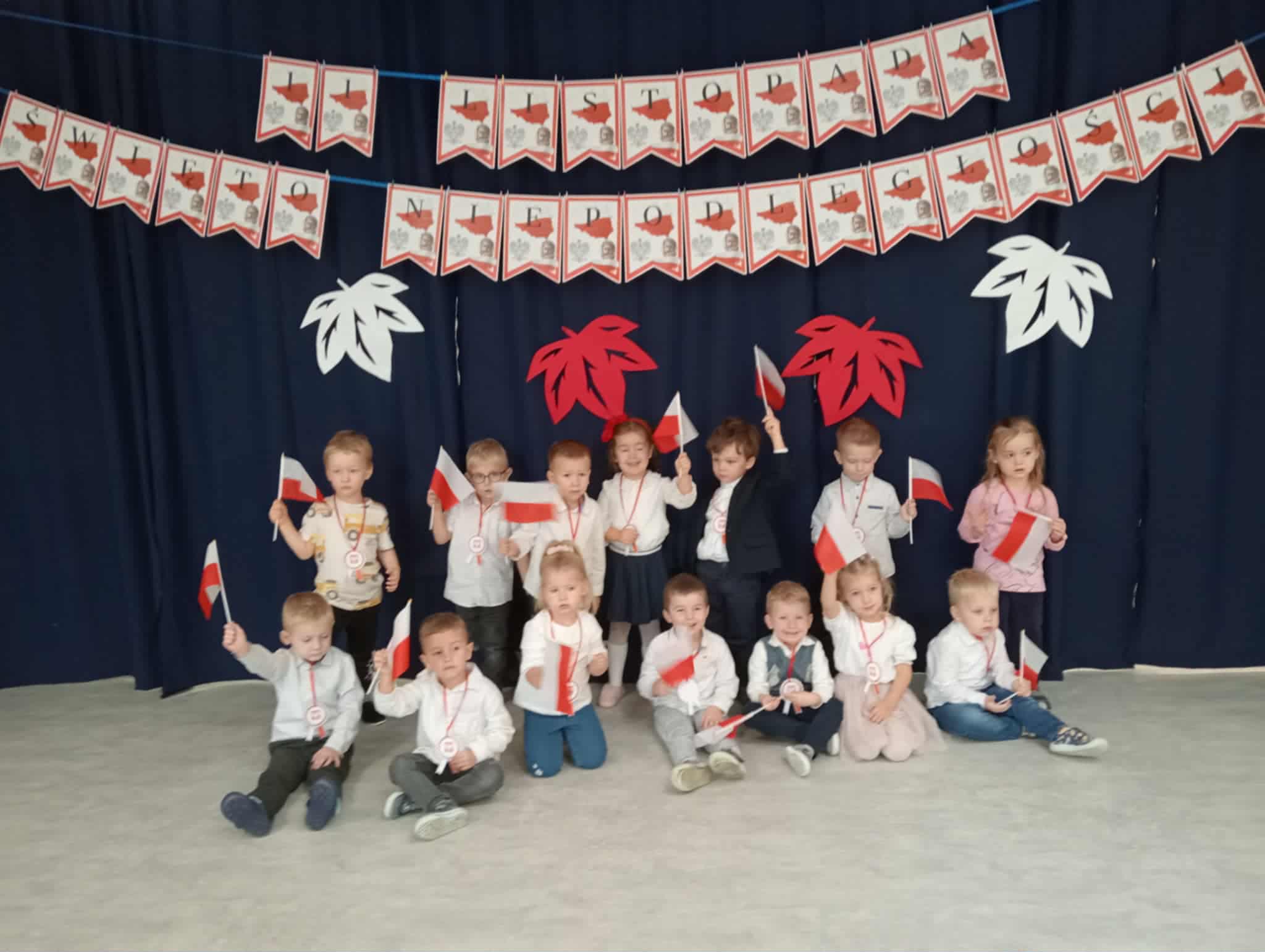 W naszym przedszkolu dnia 7 listopada odbyÅ‚ siÄ™ apel z okazji ÅšwiÄ™ta NiepodlegÅ‚oÅ›ci. Z tej okazji dzieci uroczyÅ›cie Å›wiÄ™towaÅ‚y ten wyjÄ…tkowy dla Nas - Polaków dzieÅ„. Dzieci na tÄ™ uroczystość miaÅ‚y przyczepione kotyliony w barwach ojczystych oraz flagi. Do przedszkola tego dnia wszyscy przyszli ubrani w odÅ›wiÄ™tne stroje. Uroczystość rozpoczęła Pani dyrektor, która powitaÅ‚a wszystkich, a nastÄ™pnie dokonaÅ‚a krótkiego rysu historycznego dotyczÄ…cego ÅšwiÄ™ta NiepodlegÅ‚oÅ›ci. Wszyscy, dumnie przyjmujÄ…c wÅ‚aÅ›ciwÄ… postawÄ™ "na baczność", odÅ›piewali hymn Polski "Mazurek DÄ…browskiego" oraz wyrecytowali wiersz "Barwy ojczyste" CzesÅ‚awa Janczarskiego.
