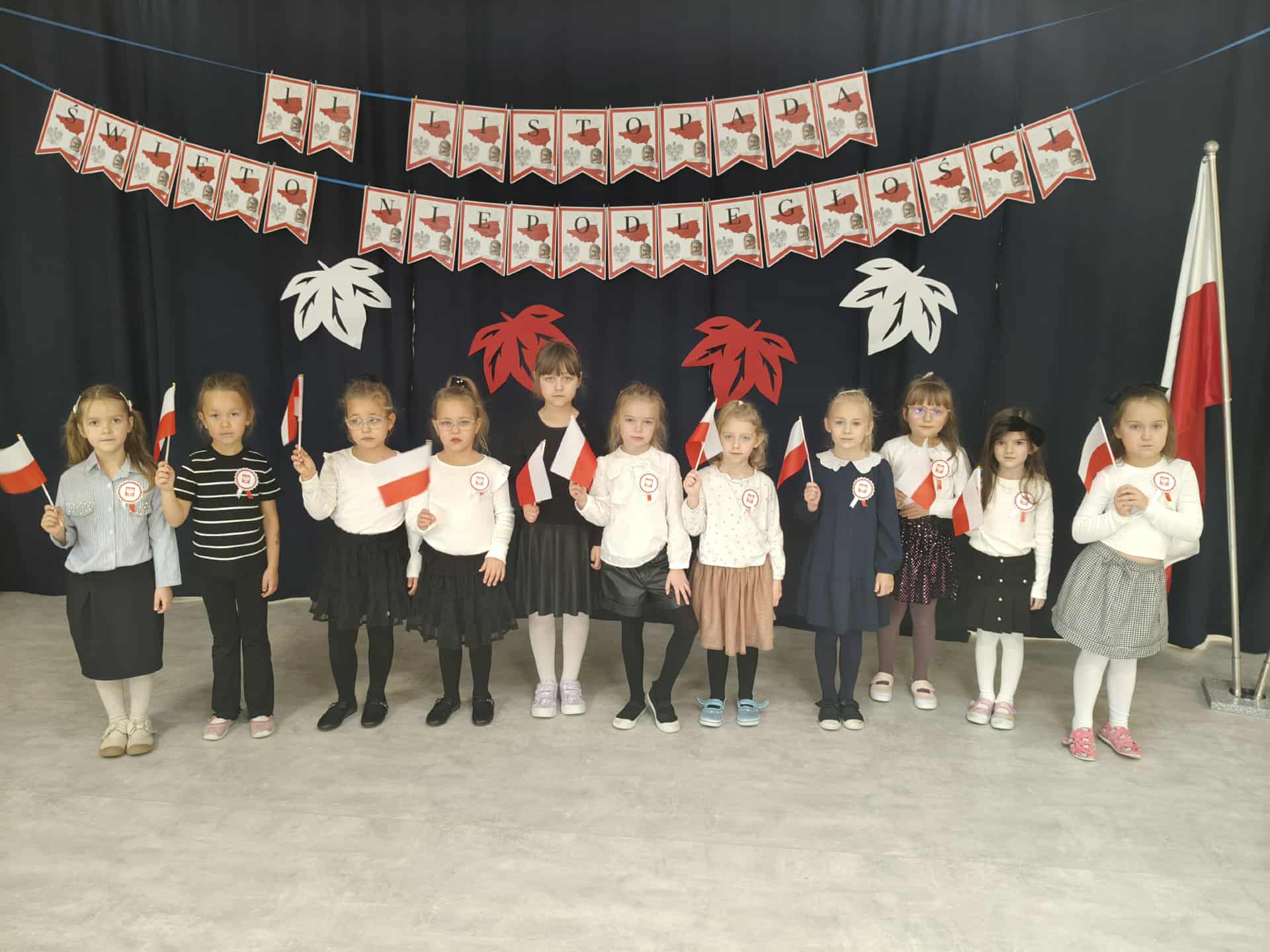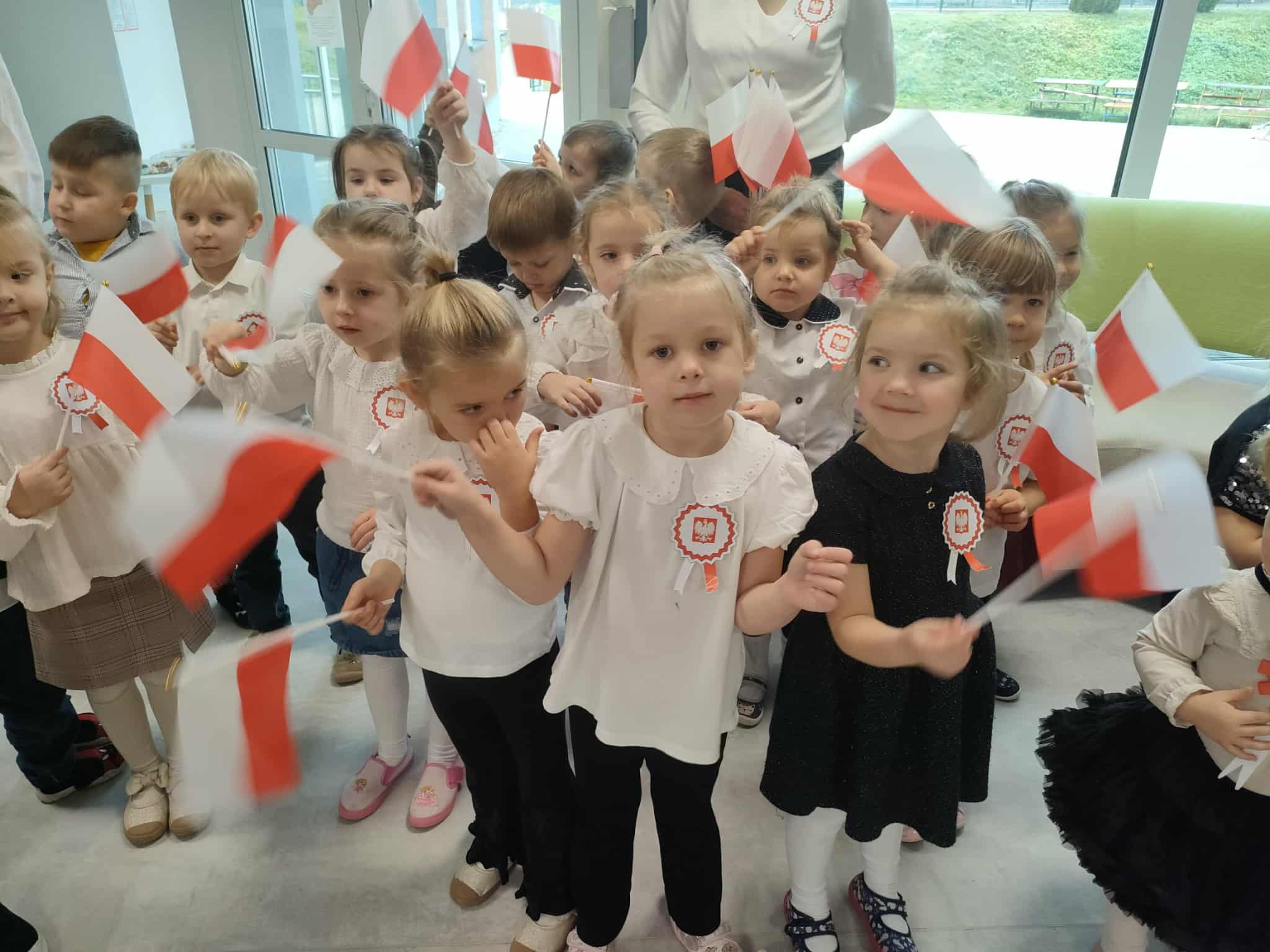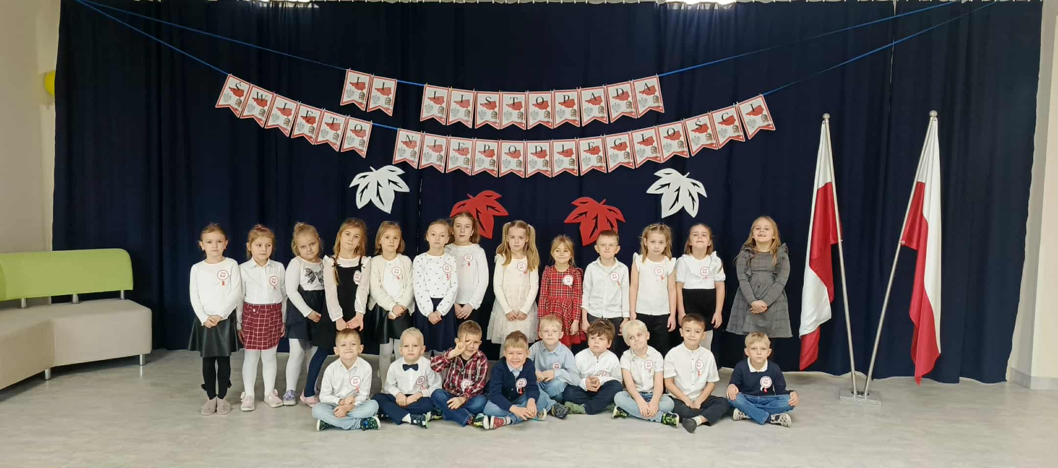 W naszym przedszkolu dnia 7 listopada odbyÅ‚ siÄ™ apel z okazji ÅšwiÄ™ta NiepodlegÅ‚oÅ›ci. Z tej okazji dzieci uroczyÅ›cie Å›wiÄ™towaÅ‚y ten wyjÄ…tkowy dla Nas - Polaków dzieÅ„. Dzieci na tÄ™ uroczystość miaÅ‚y przyczepione kotyliony w barwach ojczystych oraz flagi. Do przedszkola tego dnia wszyscy przyszli ubrani w odÅ›wiÄ™tne stroje. Uroczystość rozpoczęła Pani dyrektor, która powitaÅ‚a wszystkich, a nastÄ™pnie dokonaÅ‚a krótkiego rysu historycznego dotyczÄ…cego ÅšwiÄ™ta NiepodlegÅ‚oÅ›ci. Wszyscy, dumnie przyjmujÄ…c wÅ‚aÅ›ciwÄ… postawÄ™ "na baczność", odÅ›piewali hymn Polski "Mazurek DÄ…browskiego" oraz wyrecytowali wiersz "Barwy ojczyste" CzesÅ‚awa Janczarskiego.