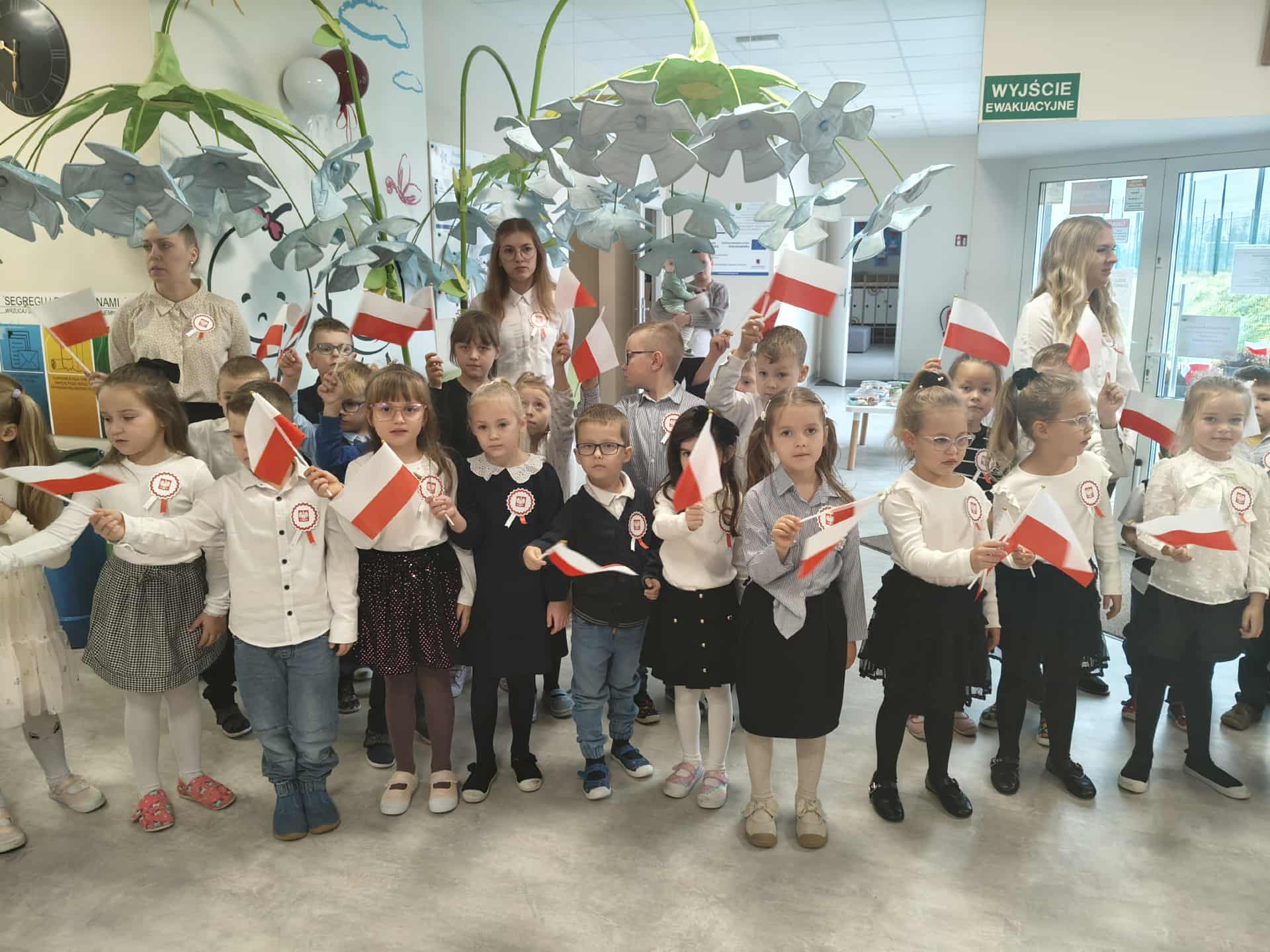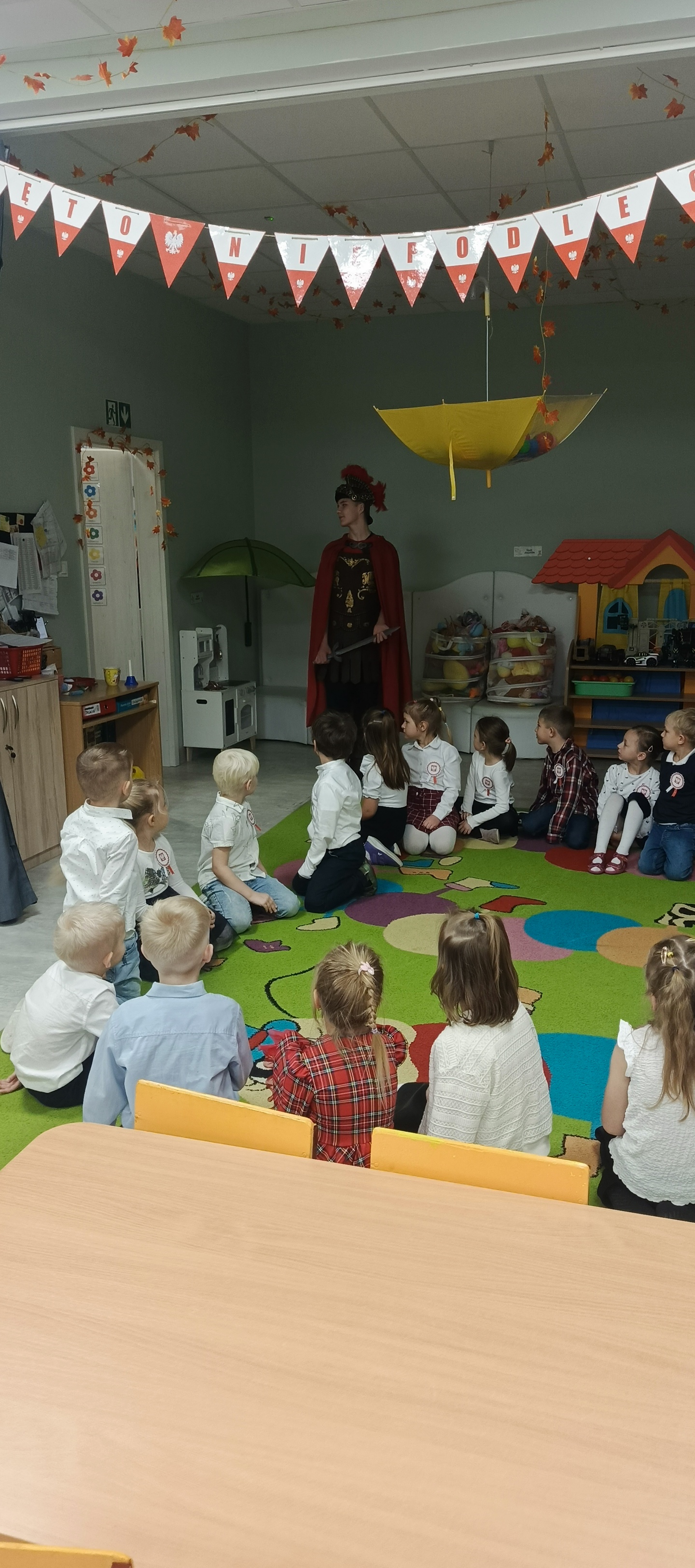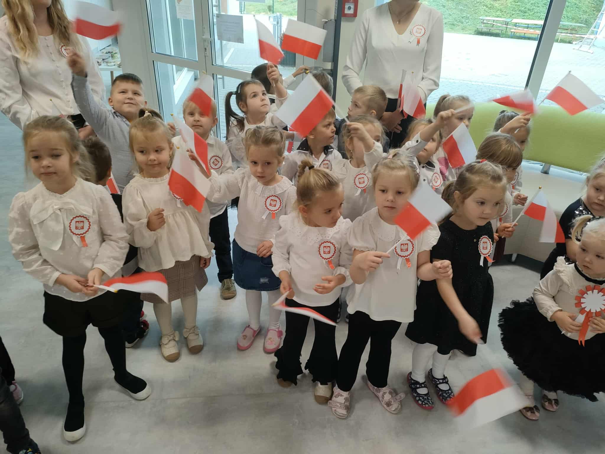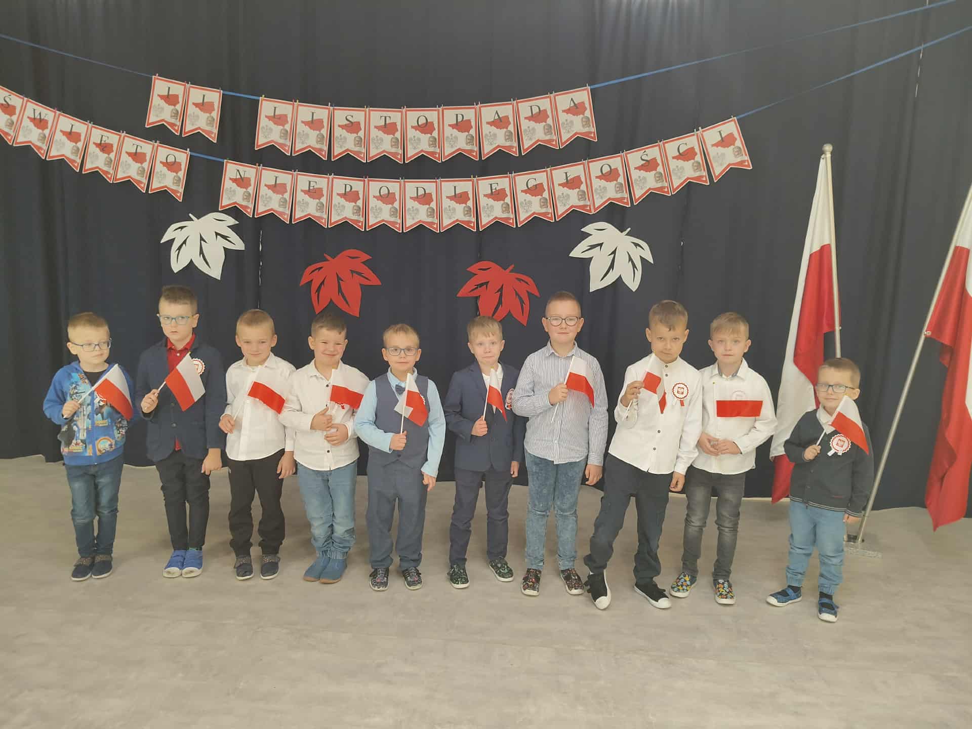 W naszym przedszkolu dnia 7 listopada odbyÅ‚ siÄ™ apel z okazji ÅšwiÄ™ta NiepodlegÅ‚oÅ›ci. Z tej okazji dzieci uroczyÅ›cie Å›wiÄ™towaÅ‚y ten wyjÄ…tkowy dla Nas - Polaków dzieÅ„. Dzieci na tÄ™ uroczystość miaÅ‚y przyczepione kotyliony w barwach ojczystych oraz flagi. Do przedszkola tego dnia wszyscy przyszli ubrani w odÅ›wiÄ™tne stroje. Uroczystość rozpoczęła Pani dyrektor, która powitaÅ‚a wszystkich, a nastÄ™pnie dokonaÅ‚a krótkiego rysu historycznego dotyczÄ…cego ÅšwiÄ™ta NiepodlegÅ‚oÅ›ci. Wszyscy, dumnie przyjmujÄ…c wÅ‚aÅ›ciwÄ… postawÄ™ "na baczność", odÅ›piewali hymn Polski "Mazurek DÄ…browskiego" oraz wyrecytowali wiersz "Barwy ojczyste" CzesÅ‚awa Janczarskiego.
