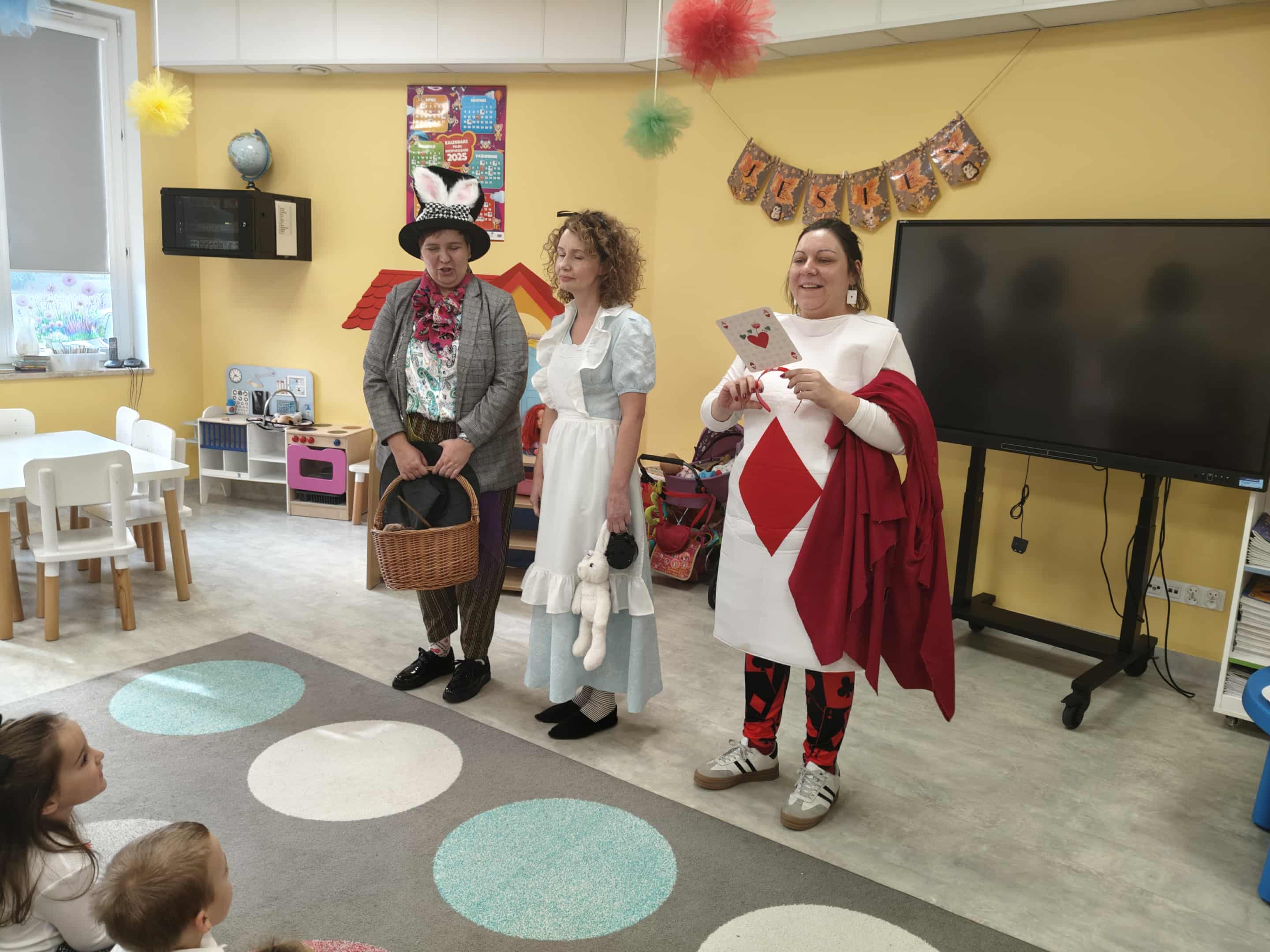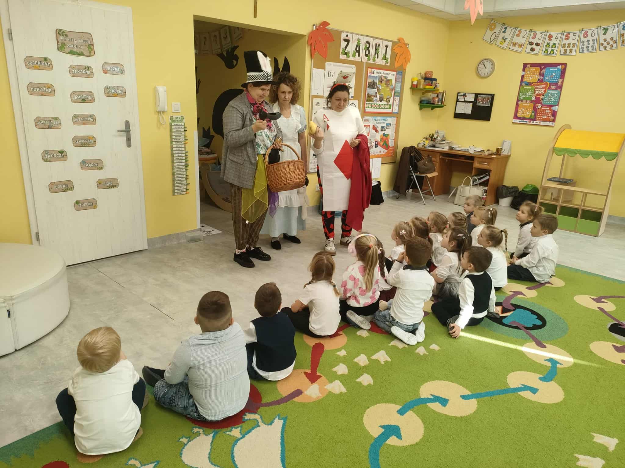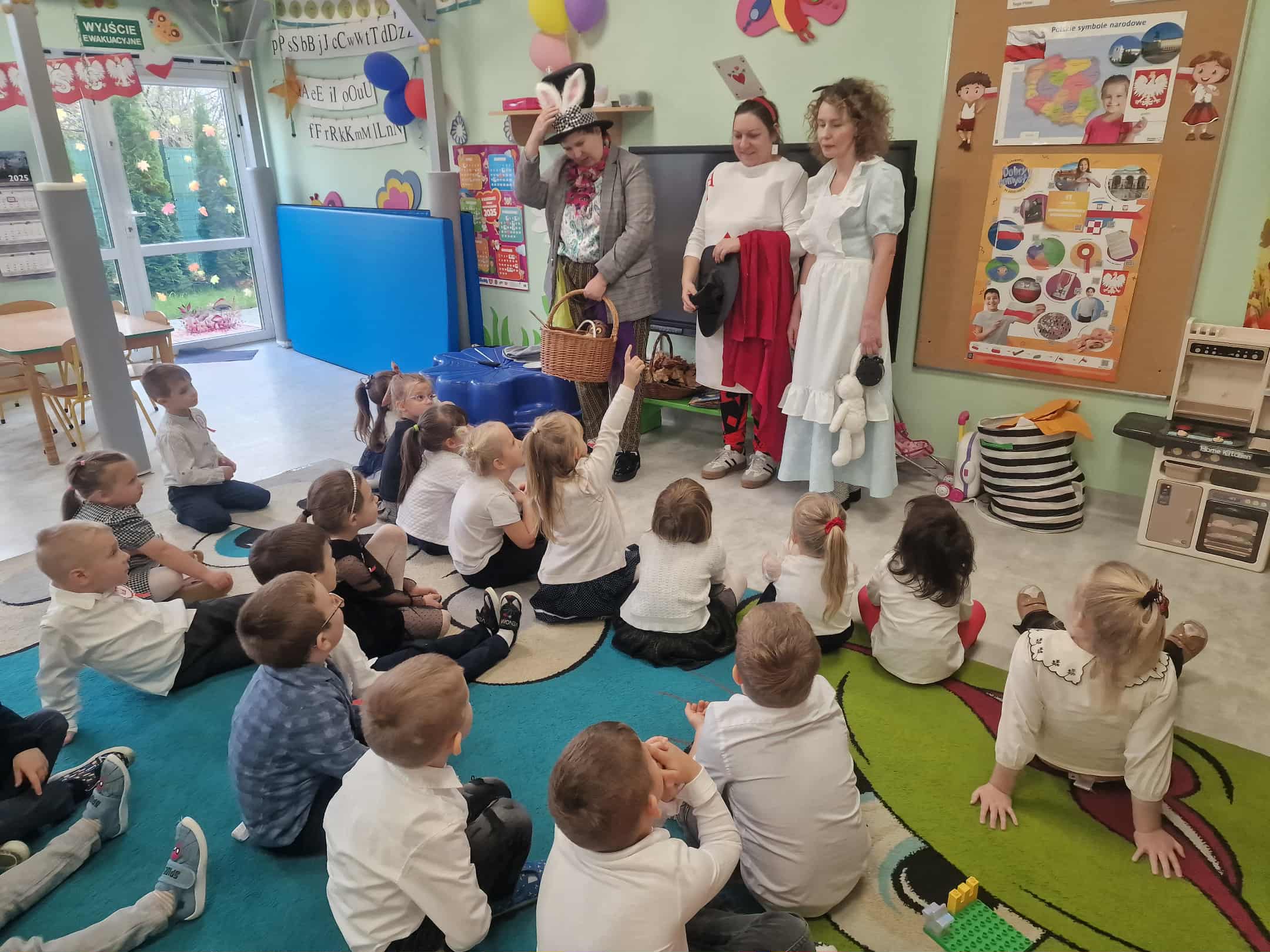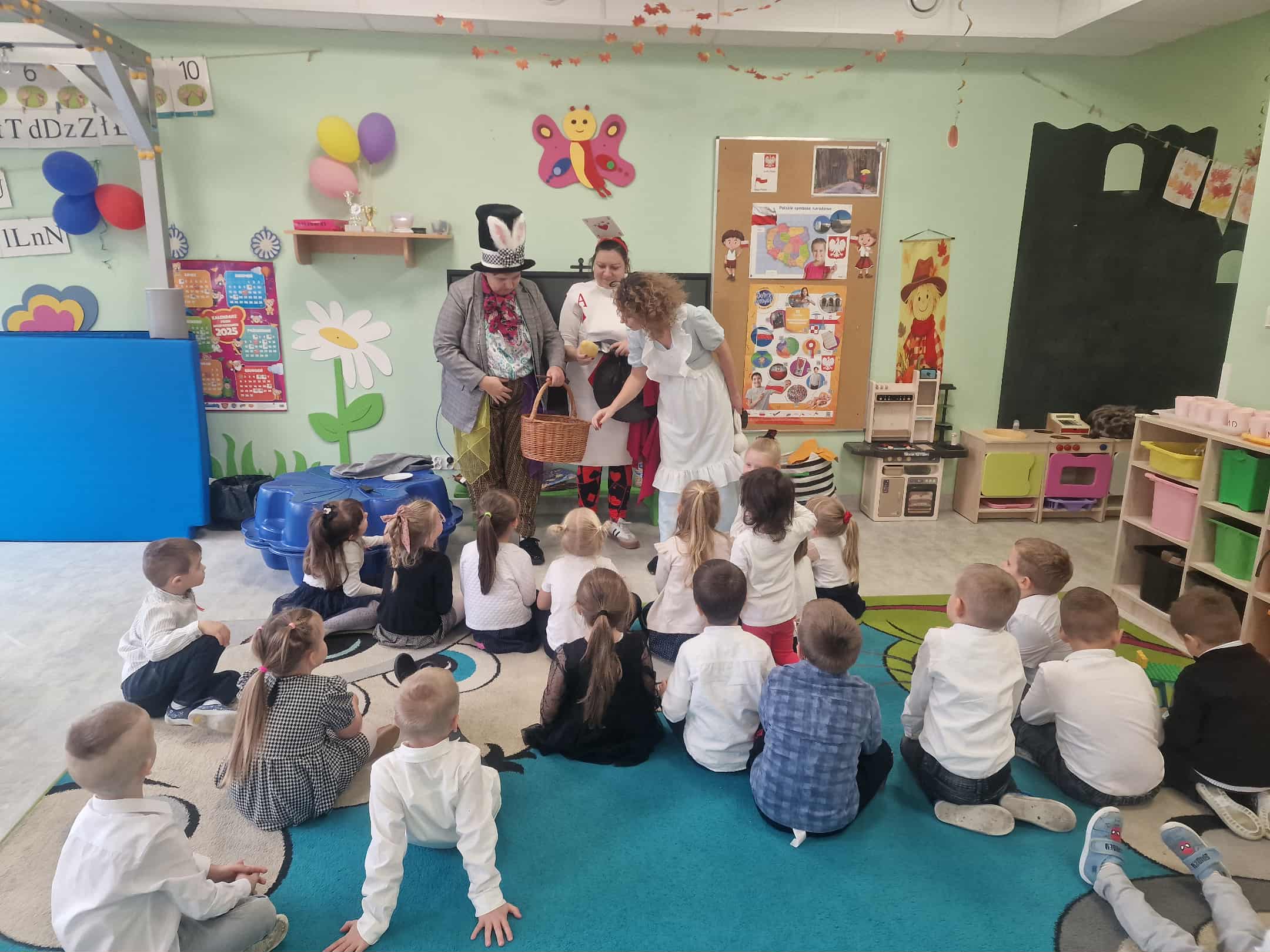 Póżniej odwiedziÅ‚y nas postaci prosto z bajki, czyli wspaniaÅ‚e Panie z Gminnej Biblioteki Publicznej w Gostycynie, które ciekawymi zagadkami uczciÅ‚y DzieÅ„ Postaci z Bajek, który Å›wiÄ™tujemy 5 listopada.