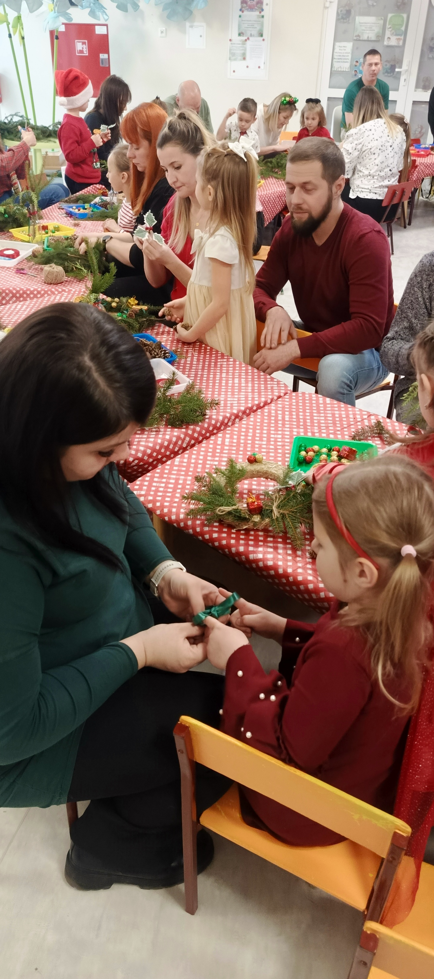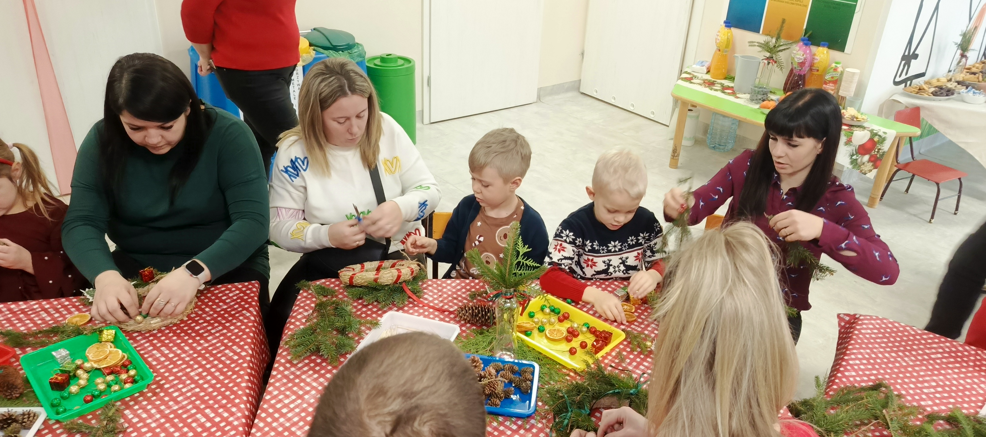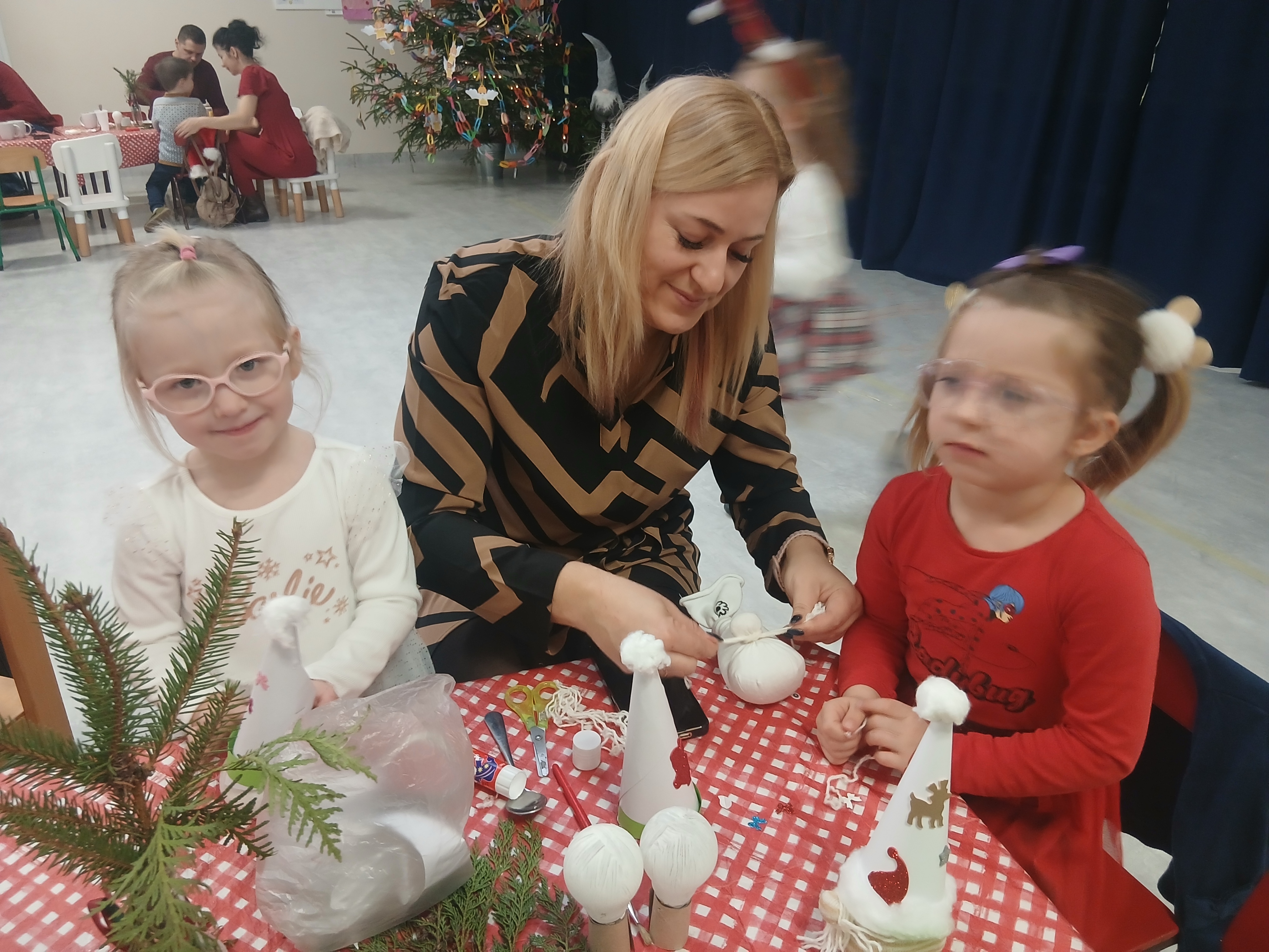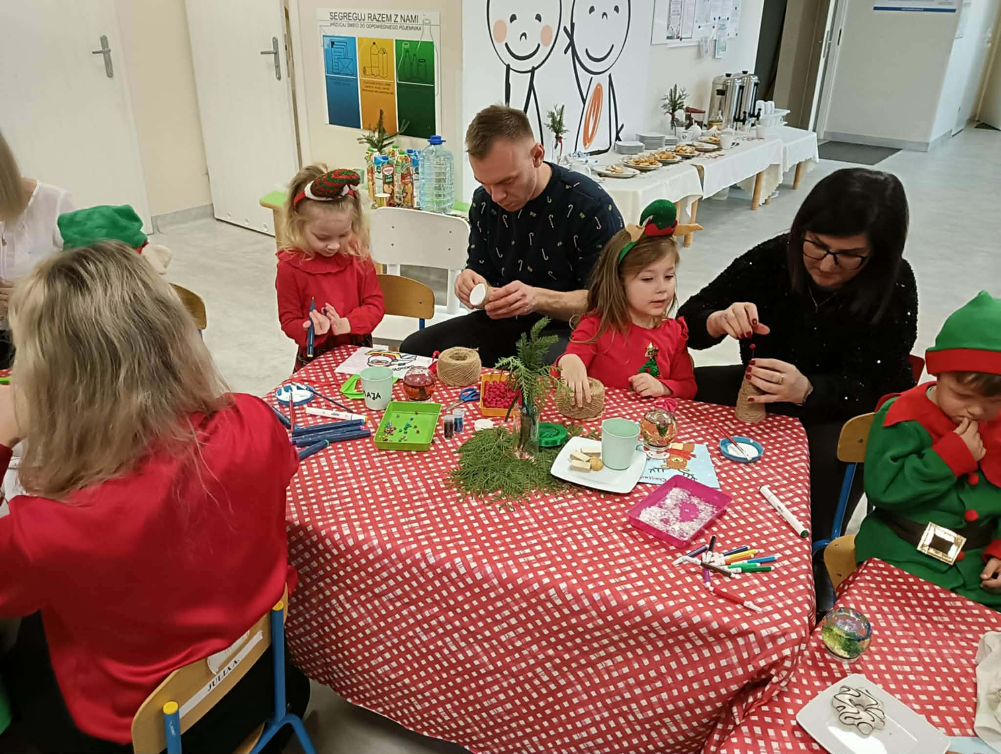 W grudniu dzieci ze wszystkich grup przedszkolnych spotykały się z Rodzicami na warsztatach bożonarodzeniowych. Podczas wspólnych zajęć dzieci wraz z Rodzicami wykonywały ozdoby świąteczne, tworząc miłą i radosną atmosferę świąt.