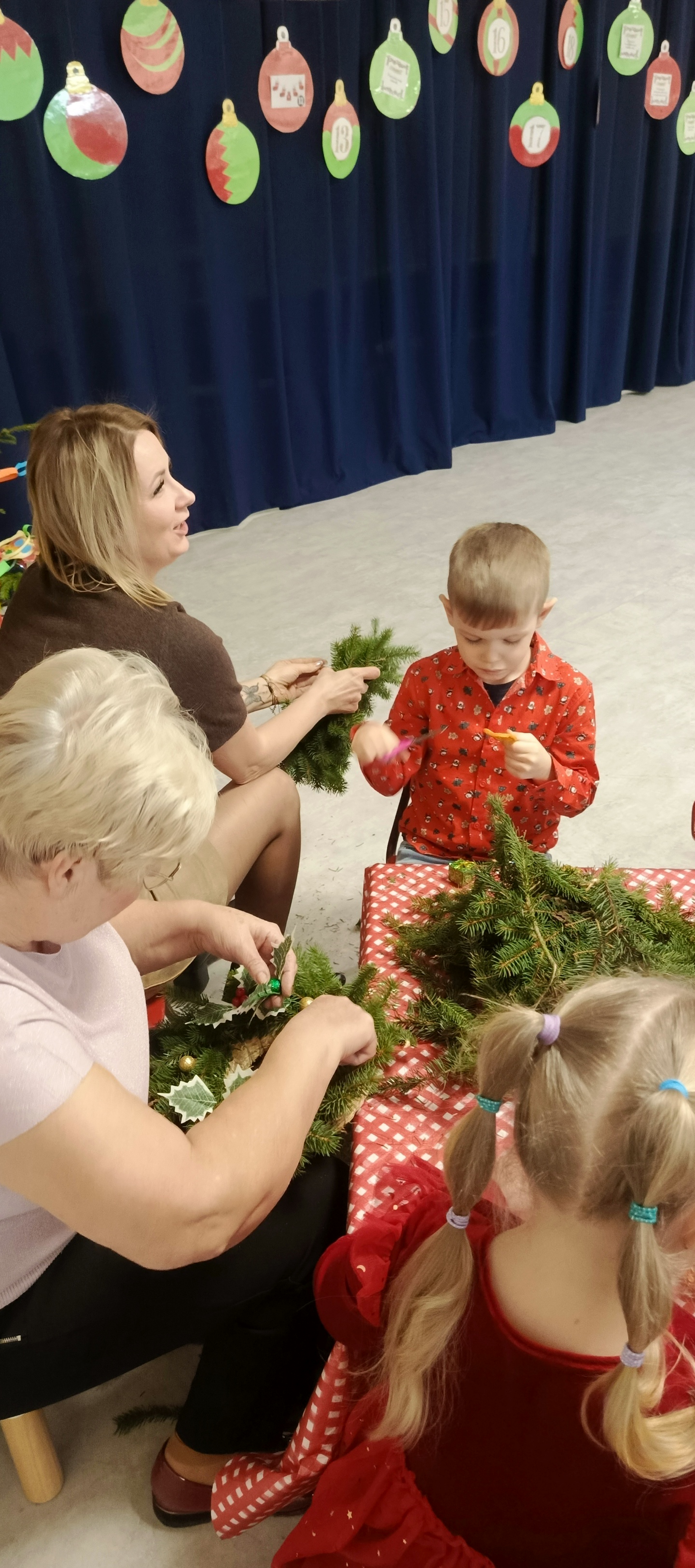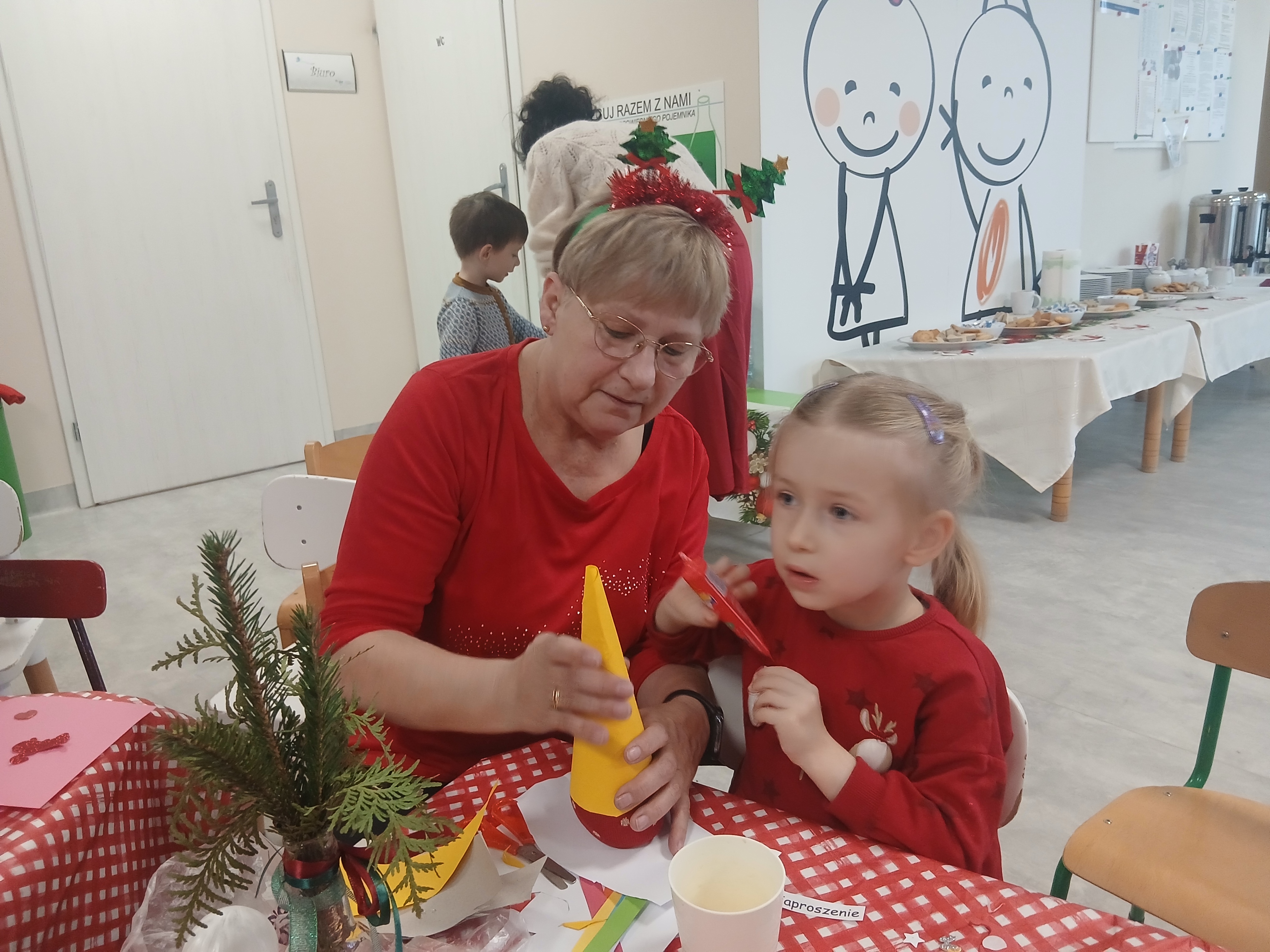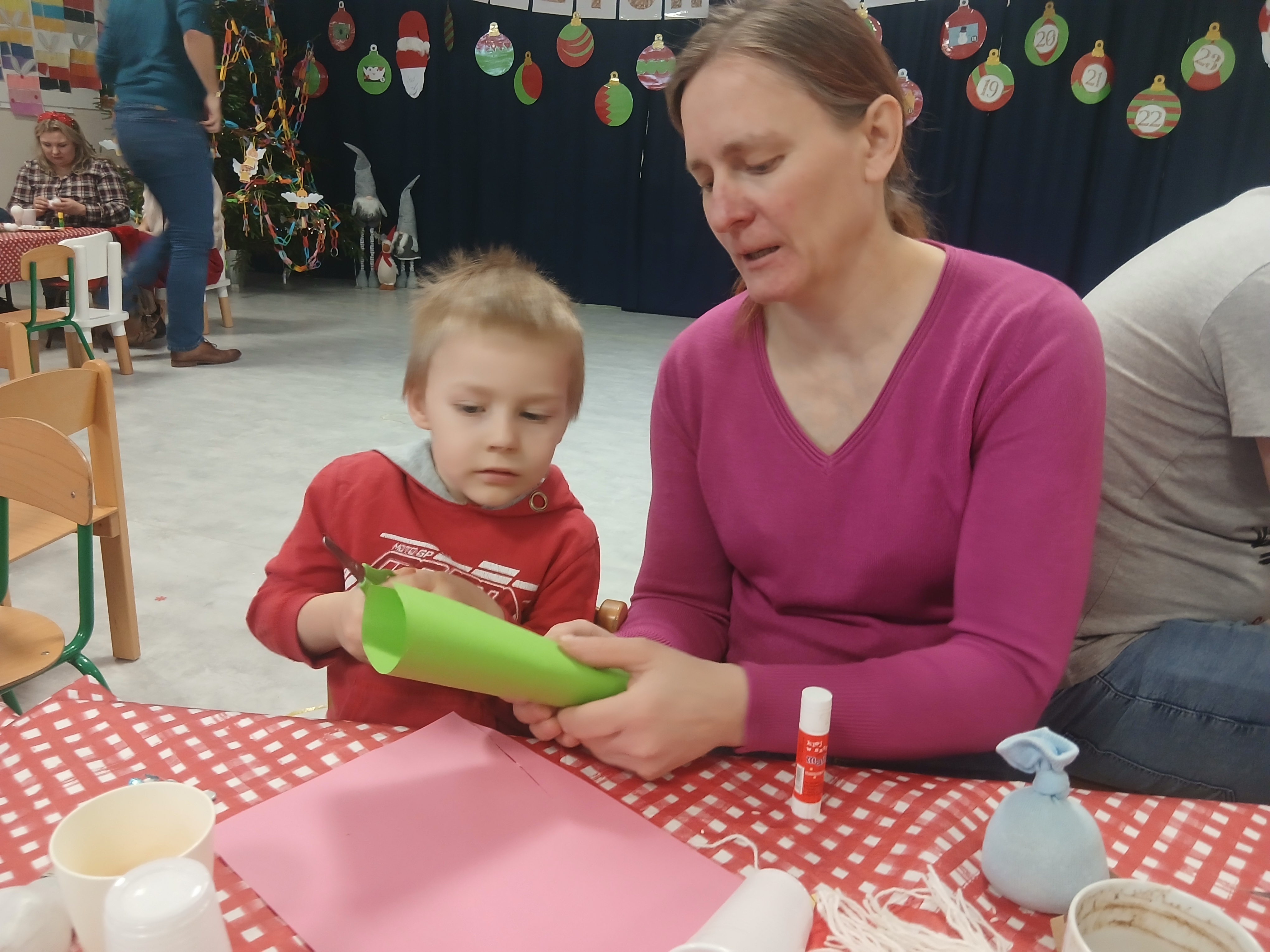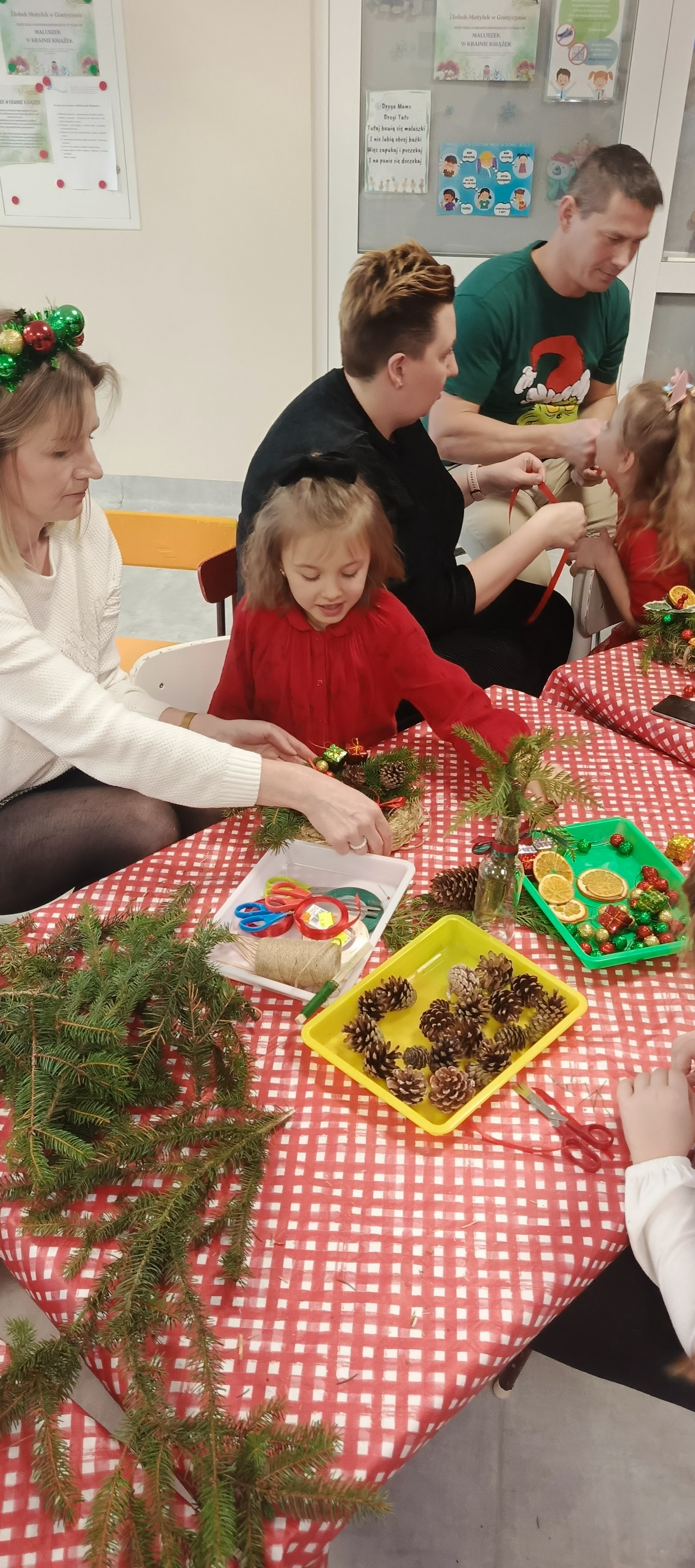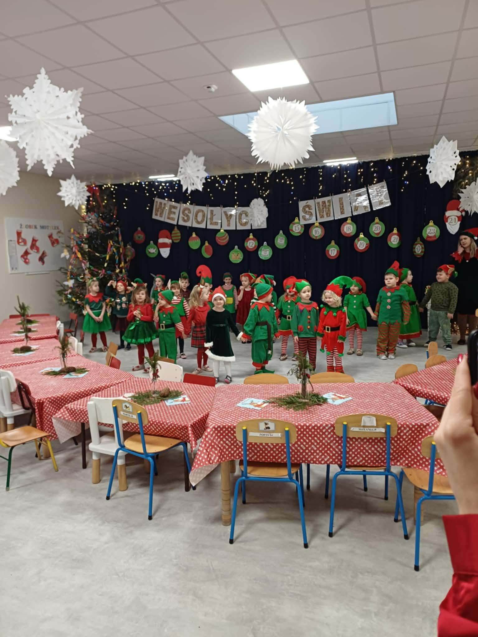 W grudniu dzieci ze wszystkich grup przedszkolnych spotykały się z Rodzicami na warsztatach bożonarodzeniowych. Podczas wspólnych zajęć dzieci wraz z Rodzicami wykonywały ozdoby świąteczne, tworząc miłą i radosną atmosferę świąt.