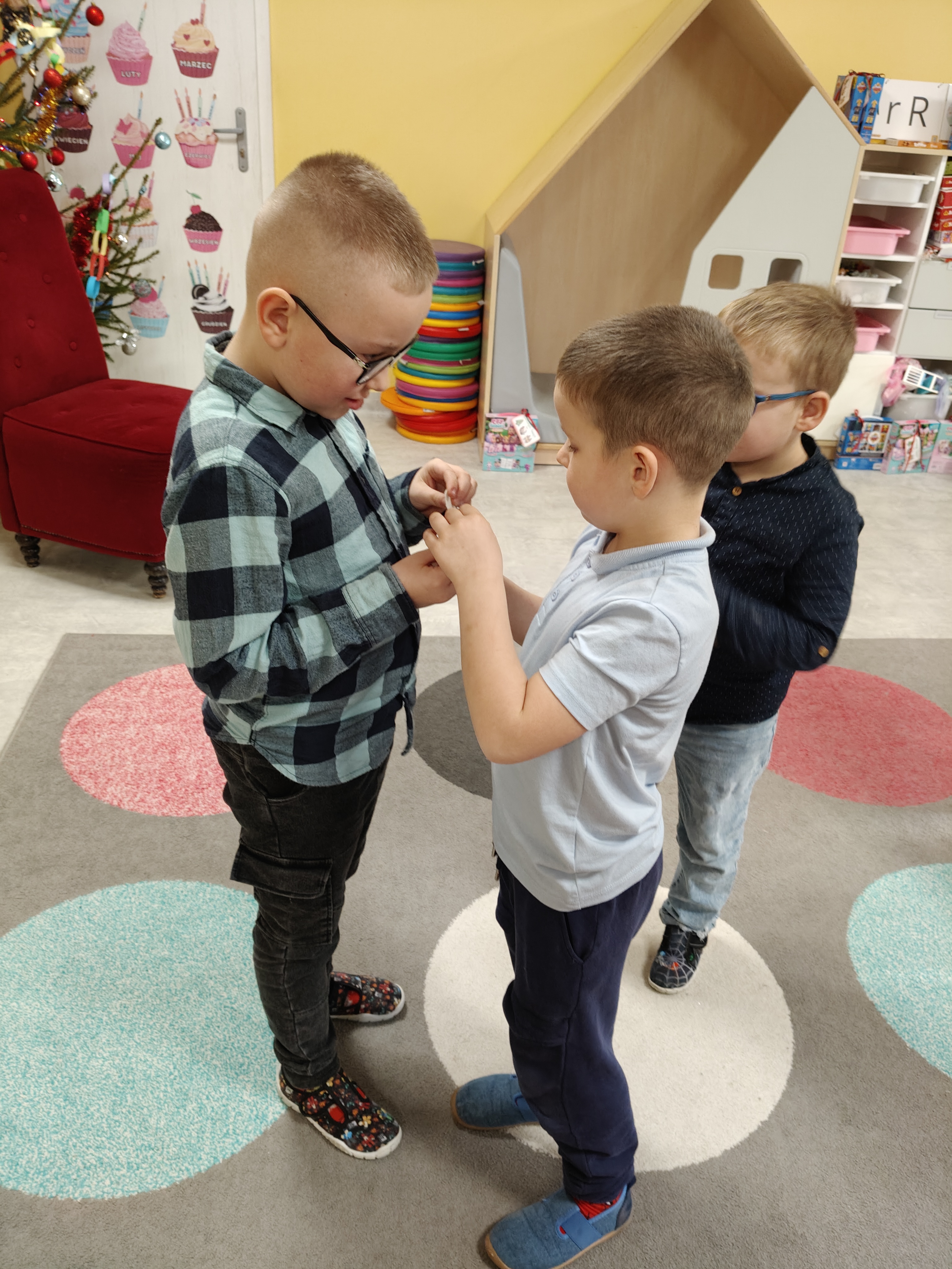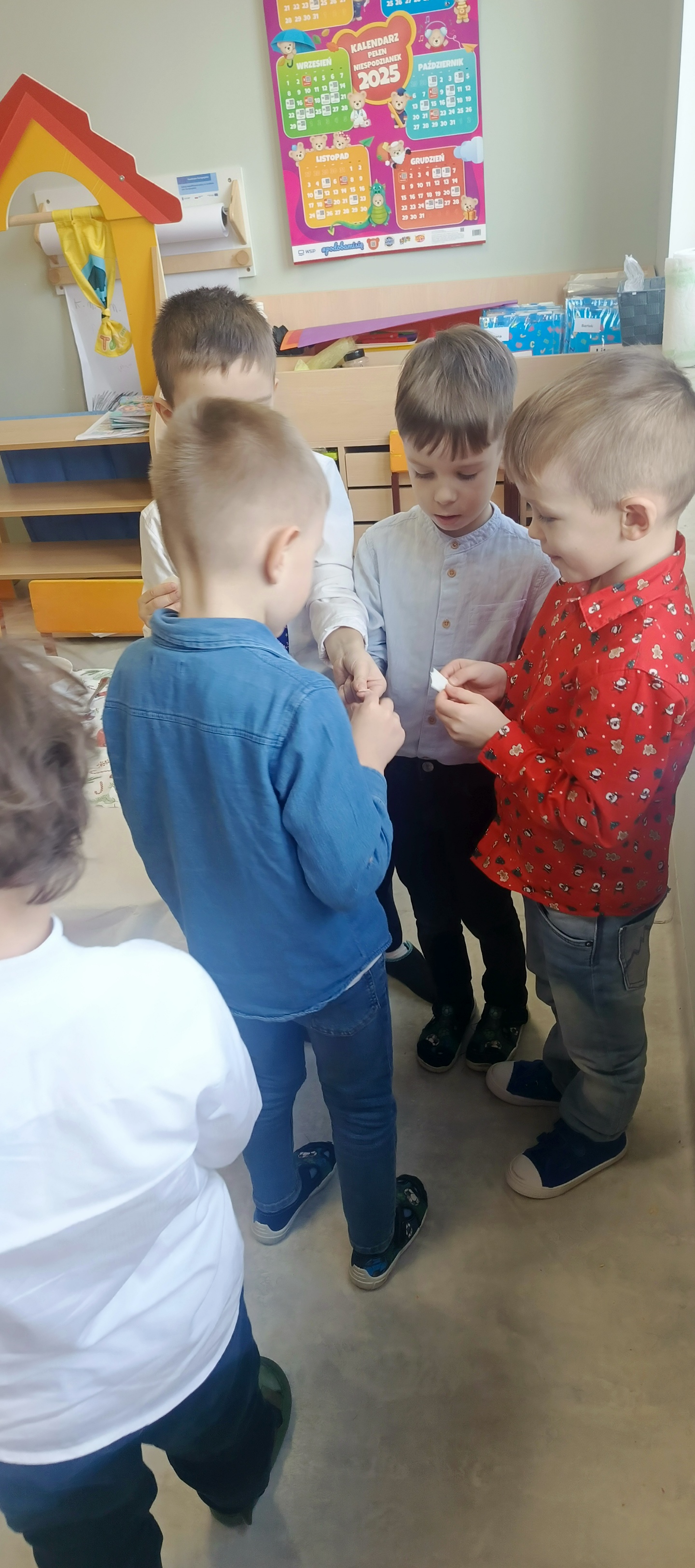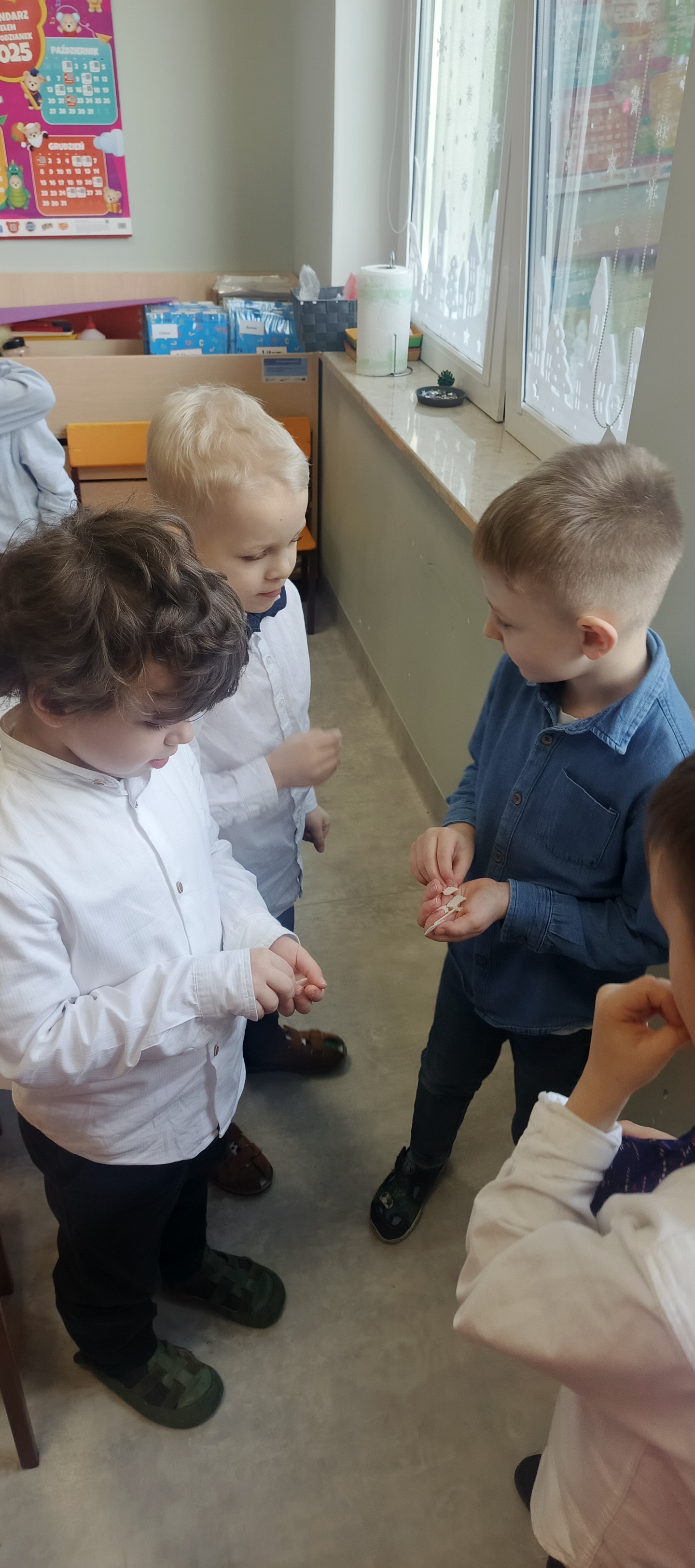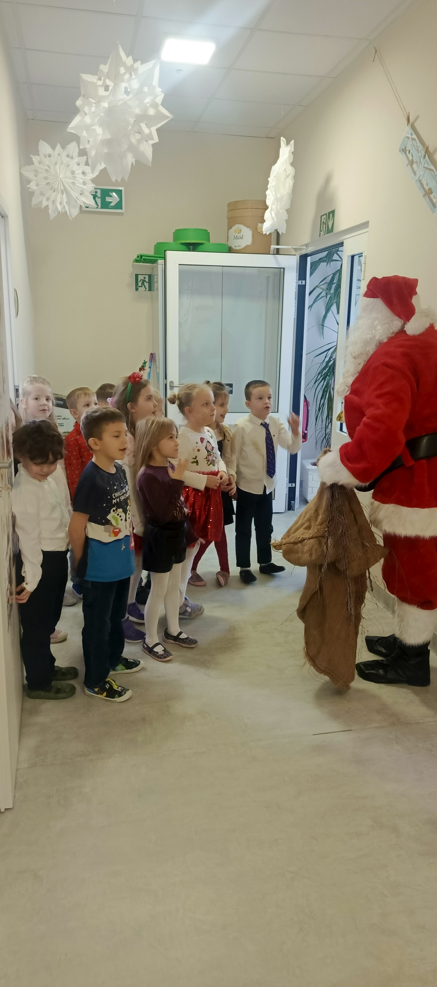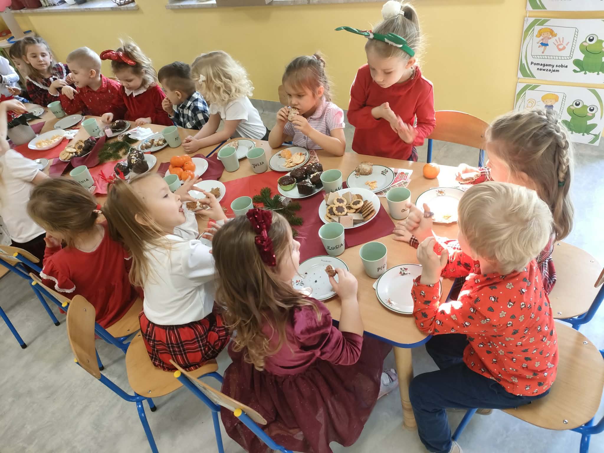 W piatek 19 grudnia naszym przedszkolu odbyła się uroczysta Wigilia przedszkolna połączona z kolędowaniem. W ciepłej, świątecznej atmosferze dzieci wspólnie dzieliły się opłatkiem i śpiewały kolędy. Wyjątkowym gościem był leśniczy Pan Adam Cymerys, który akompaniował na gitarze, wprowadzając wszystkich w radosny, bożonarodzeniowy nastrój. Był to piękny czas pełen uśmiechu, muzyki i świątecznej bliskości.