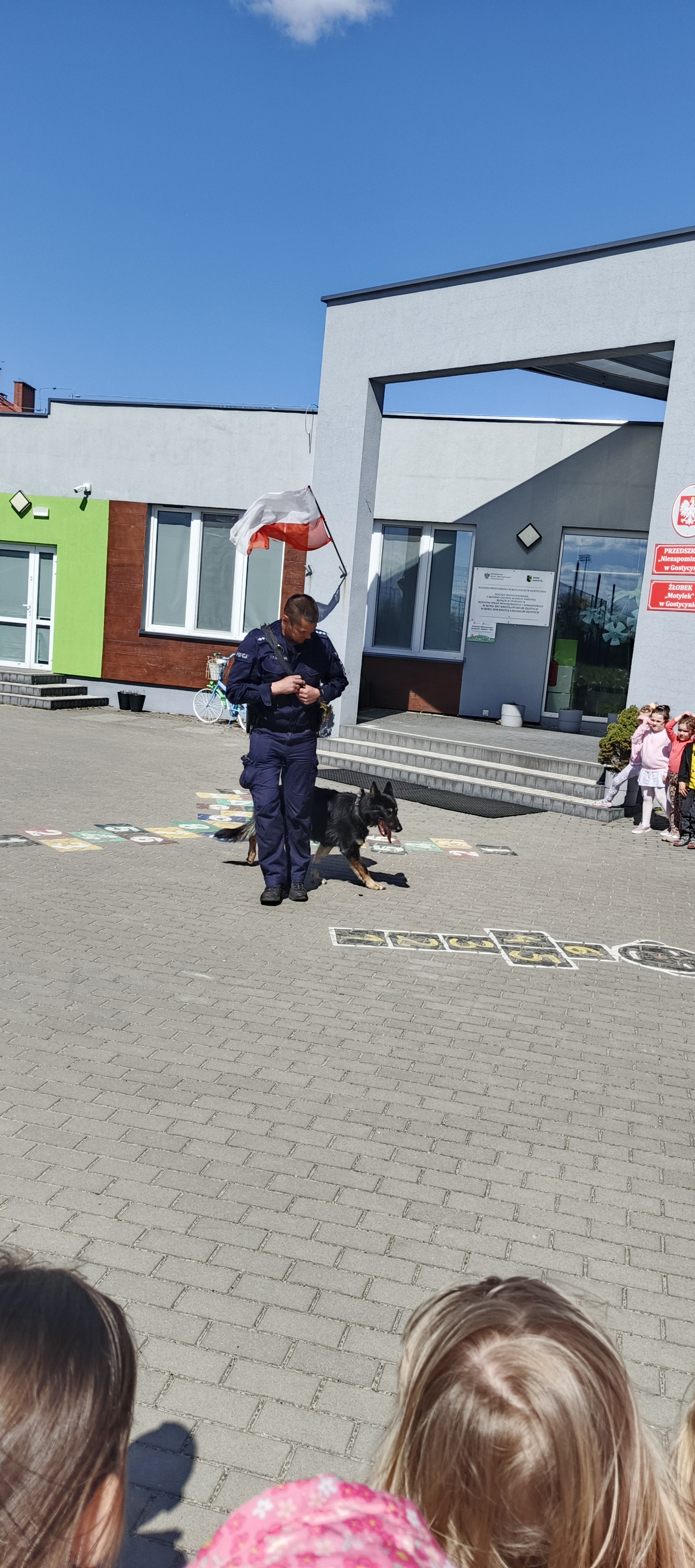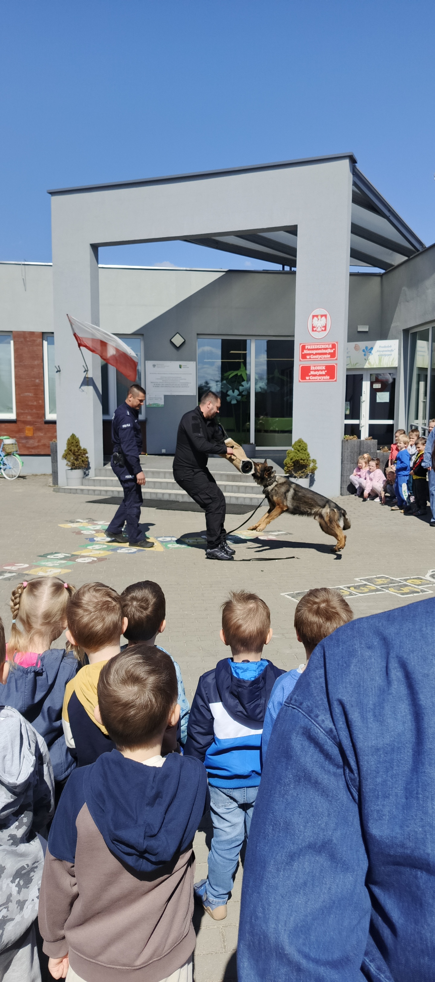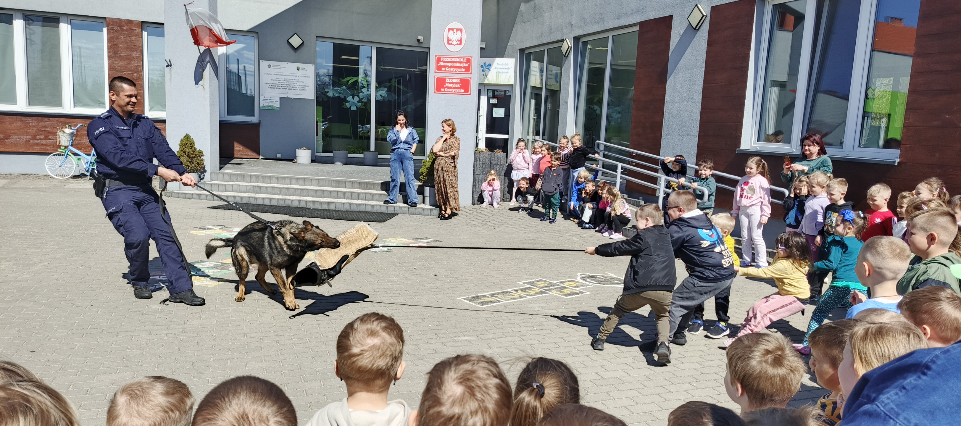 Spotkanie z policjantem i jego psami służbowymi to wyjątkowa okazja, by poznać tajniki pracy tych niezwykłych czworonogów oraz dowiedzieć się, jak ważną rolę odgrywają w codziennym działaniu policji. W ramach realizacji projektu "Wsparcie wychowania przedszkolnego w Gminie Gostycyn" pan ratownik - Janusz Kozielecki zorganizował spotkanie z funkcjonariuszem policji Tomaszem Kozieleckim.