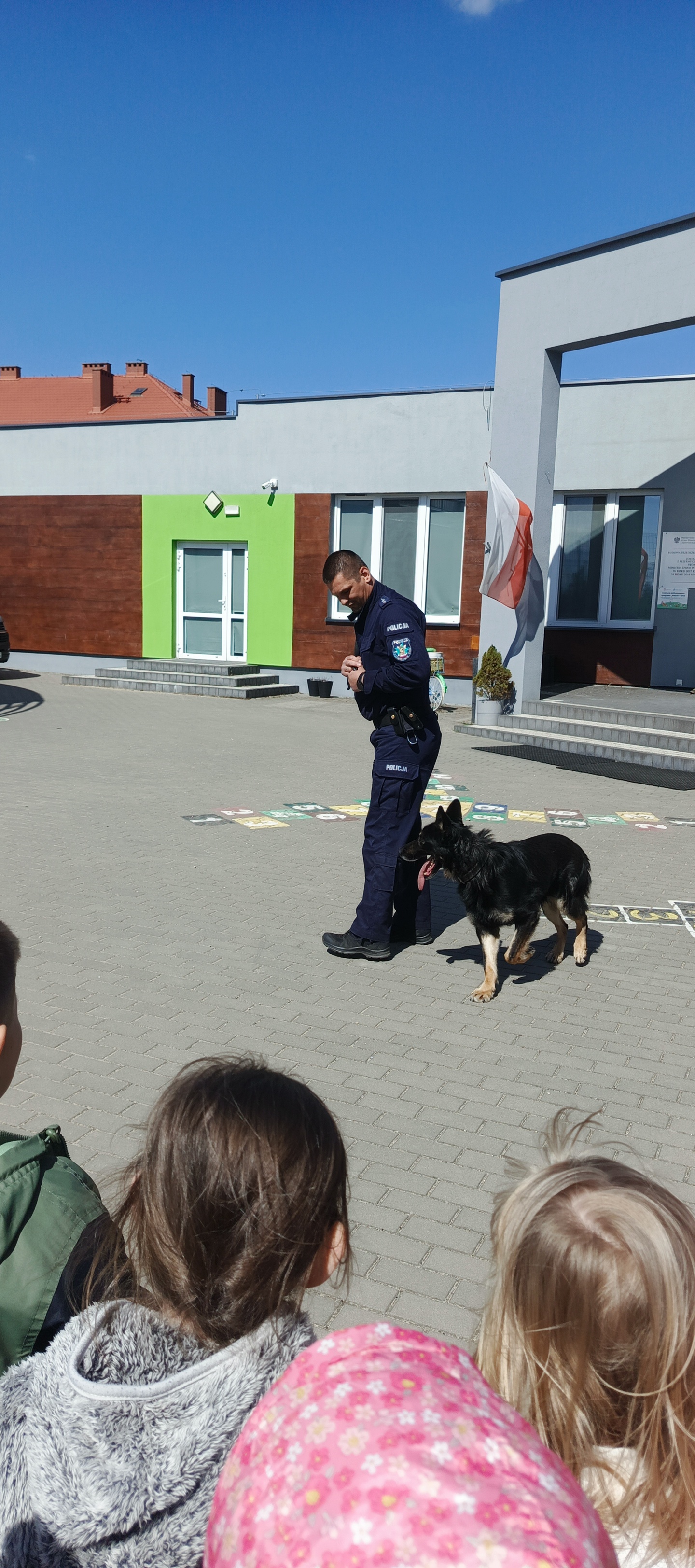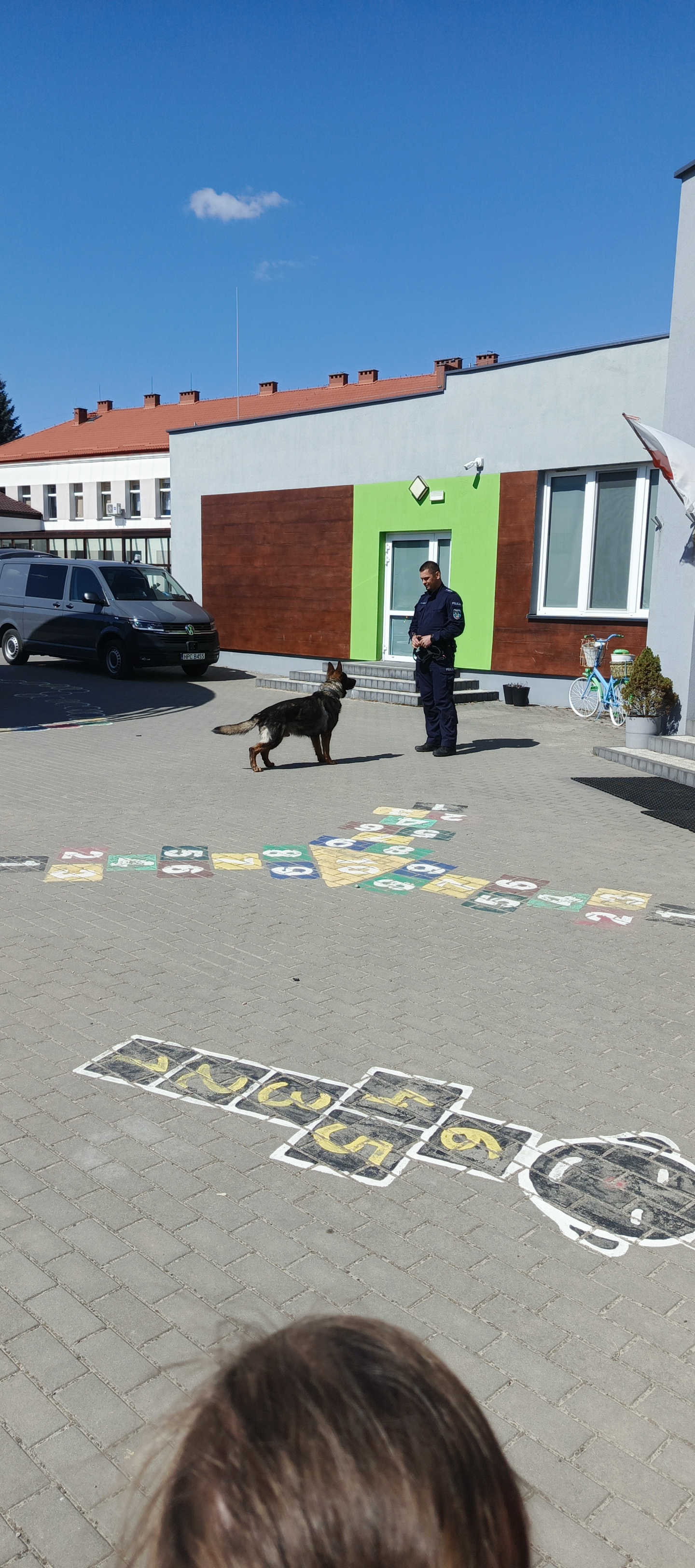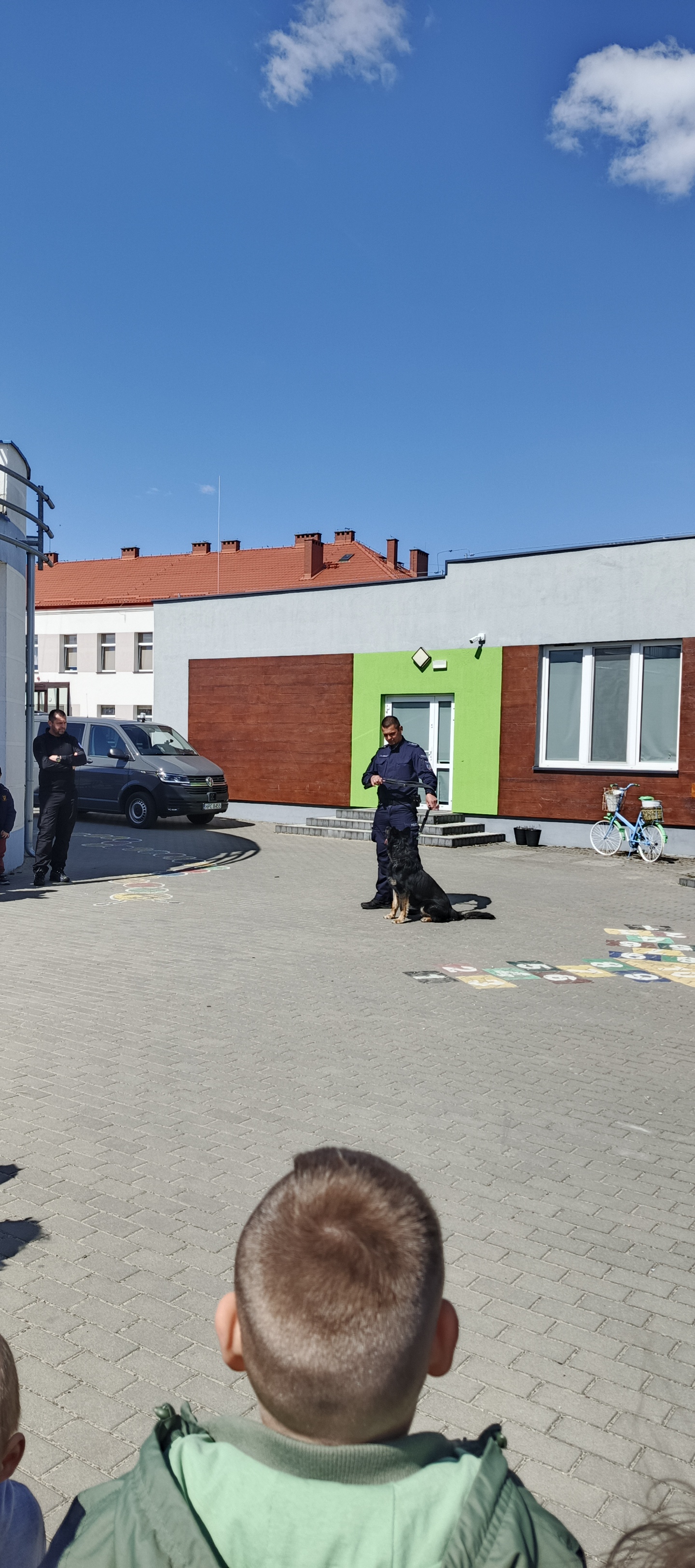 Spotkanie z policjantem i jego psami służbowymi to wyjątkowa okazja, by poznać tajniki pracy tych niezwykłych czworonogów oraz dowiedzieć się, jak ważną rolę odgrywają w codziennym działaniu policji. W ramach realizacji projektu "Wsparcie wychowania przedszkolnego w Gminie Gostycyn" pan ratownik - Janusz Kozielecki zorganizował spotkanie z funkcjonariuszem policji Tomaszem Kozieleckim.