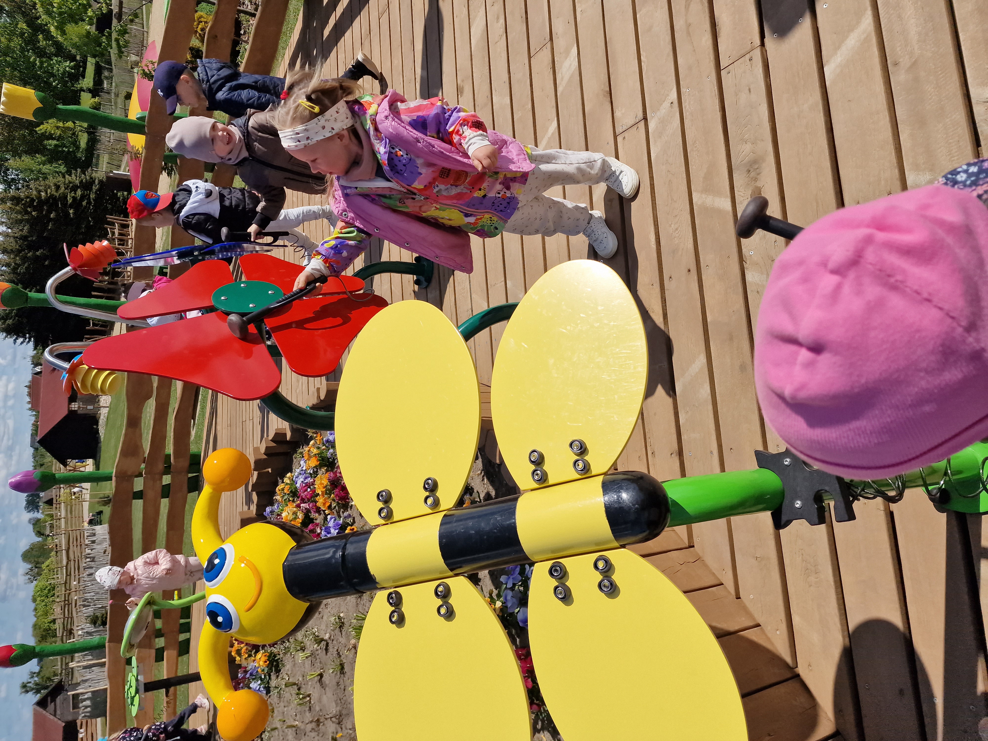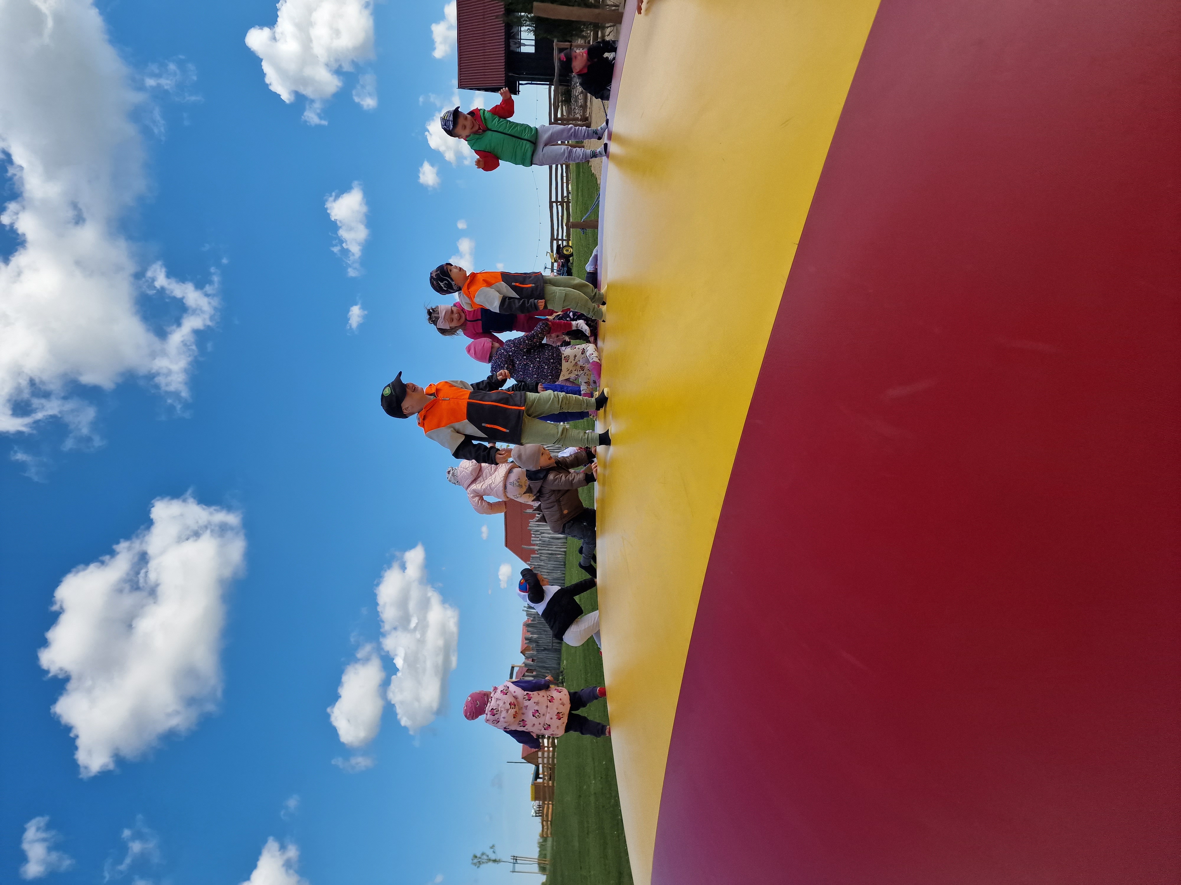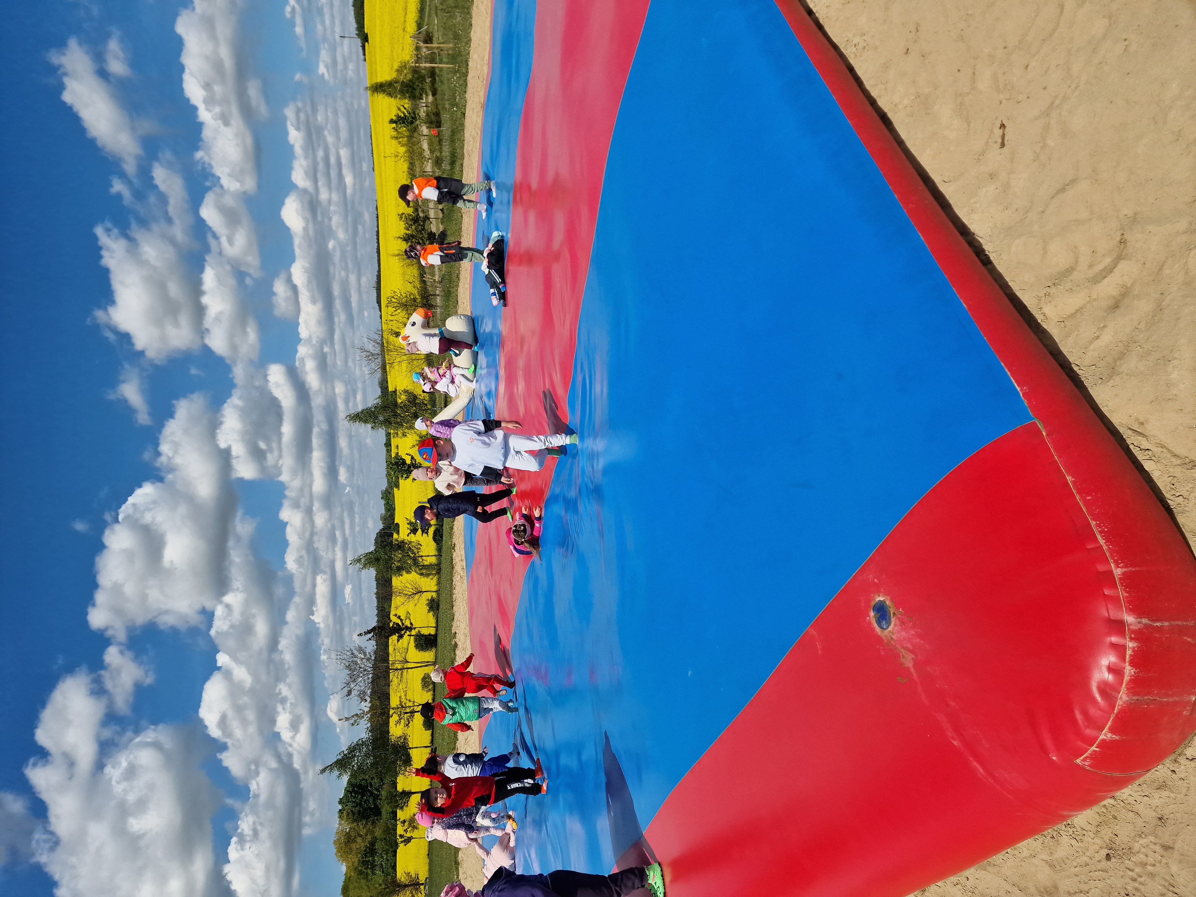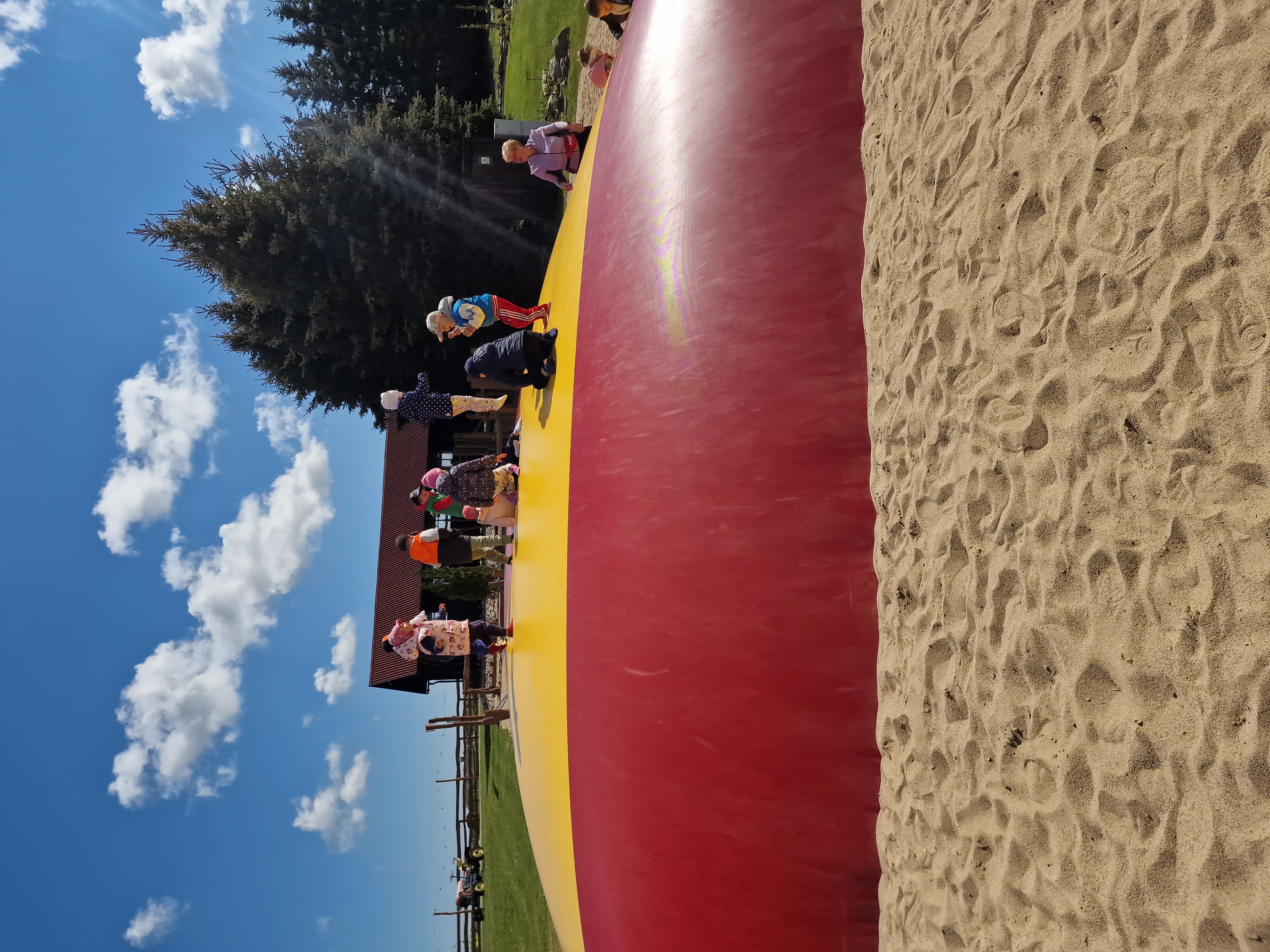 Dzieci podczas pobytu mogły bawić się na łące, pograć w Pyto- golfa, poskakać na wielkich poduchach, pochodzić po labiryncie, czy też pooglądać i pokarmić lokalne zwierzęta gospodarskie.