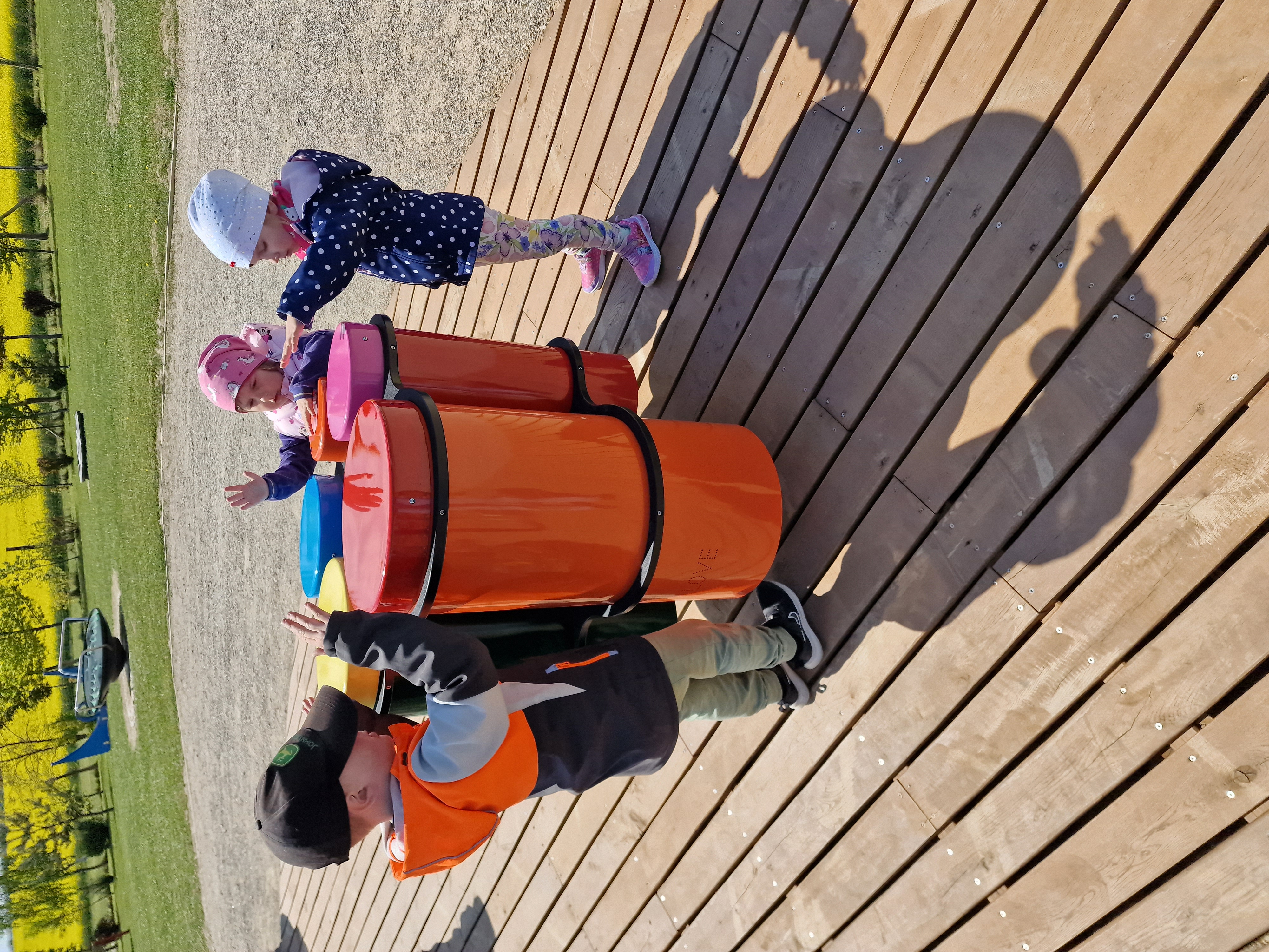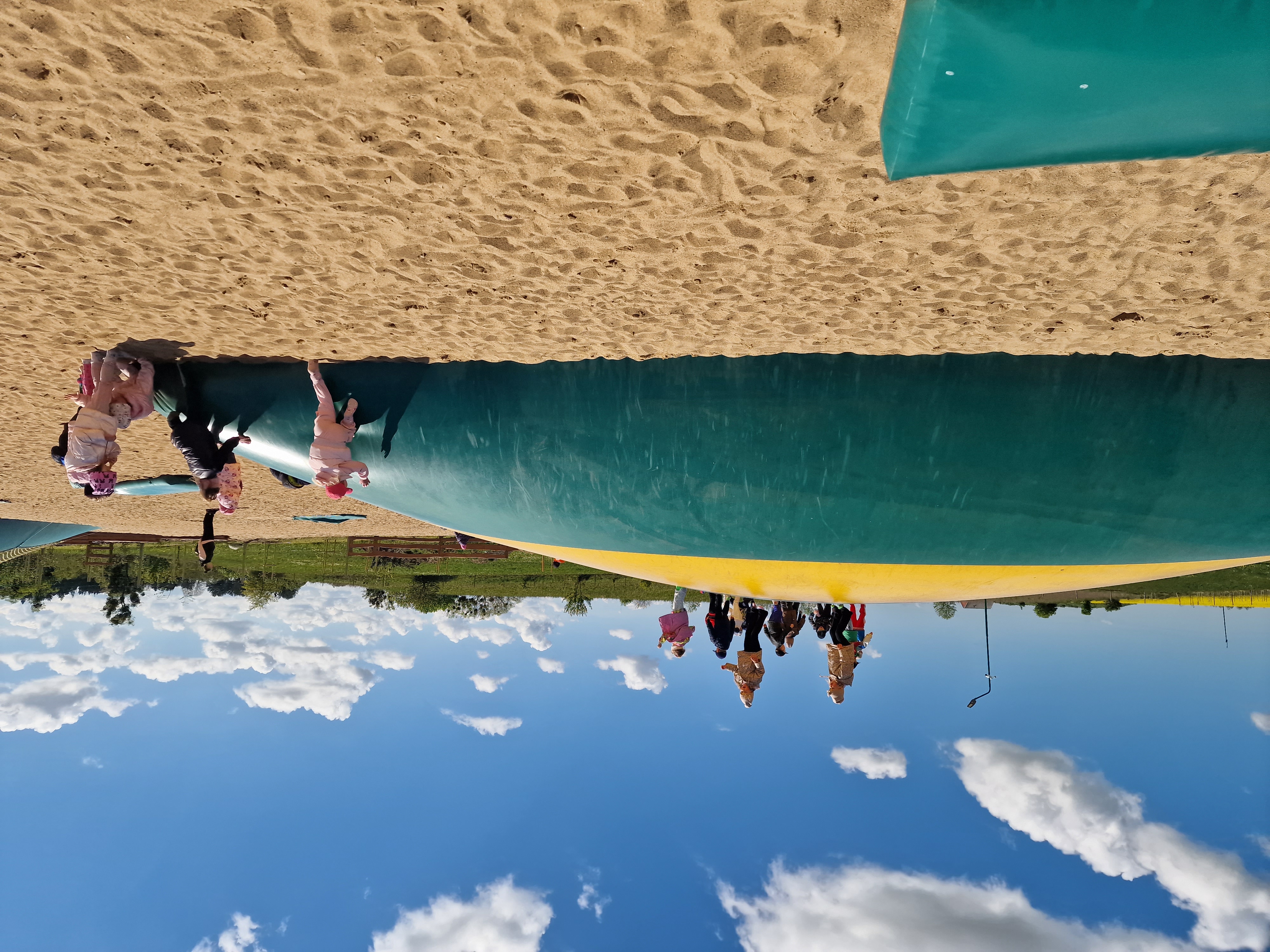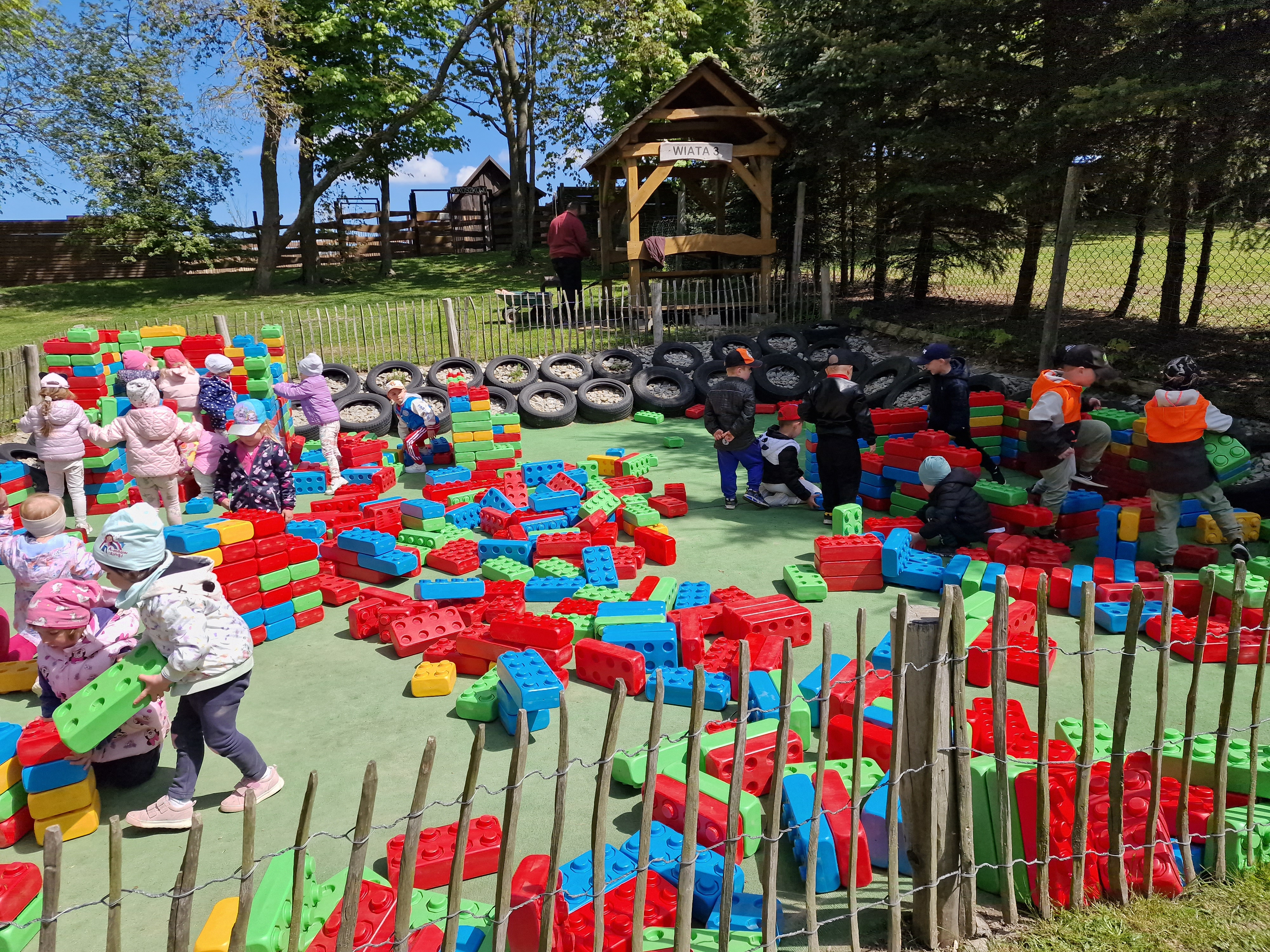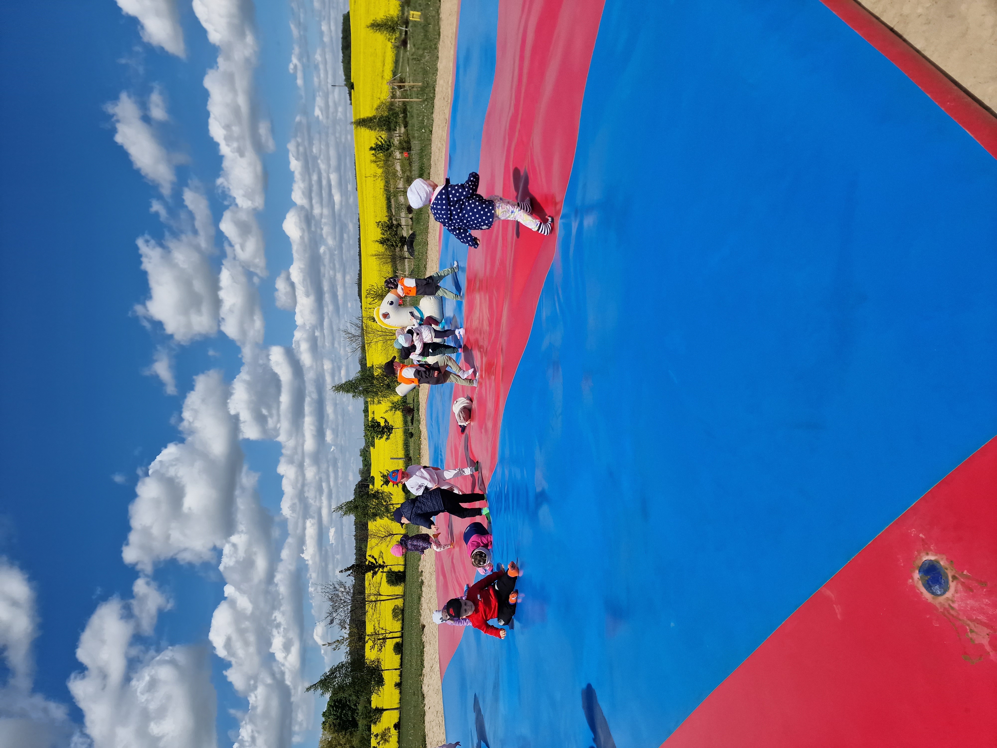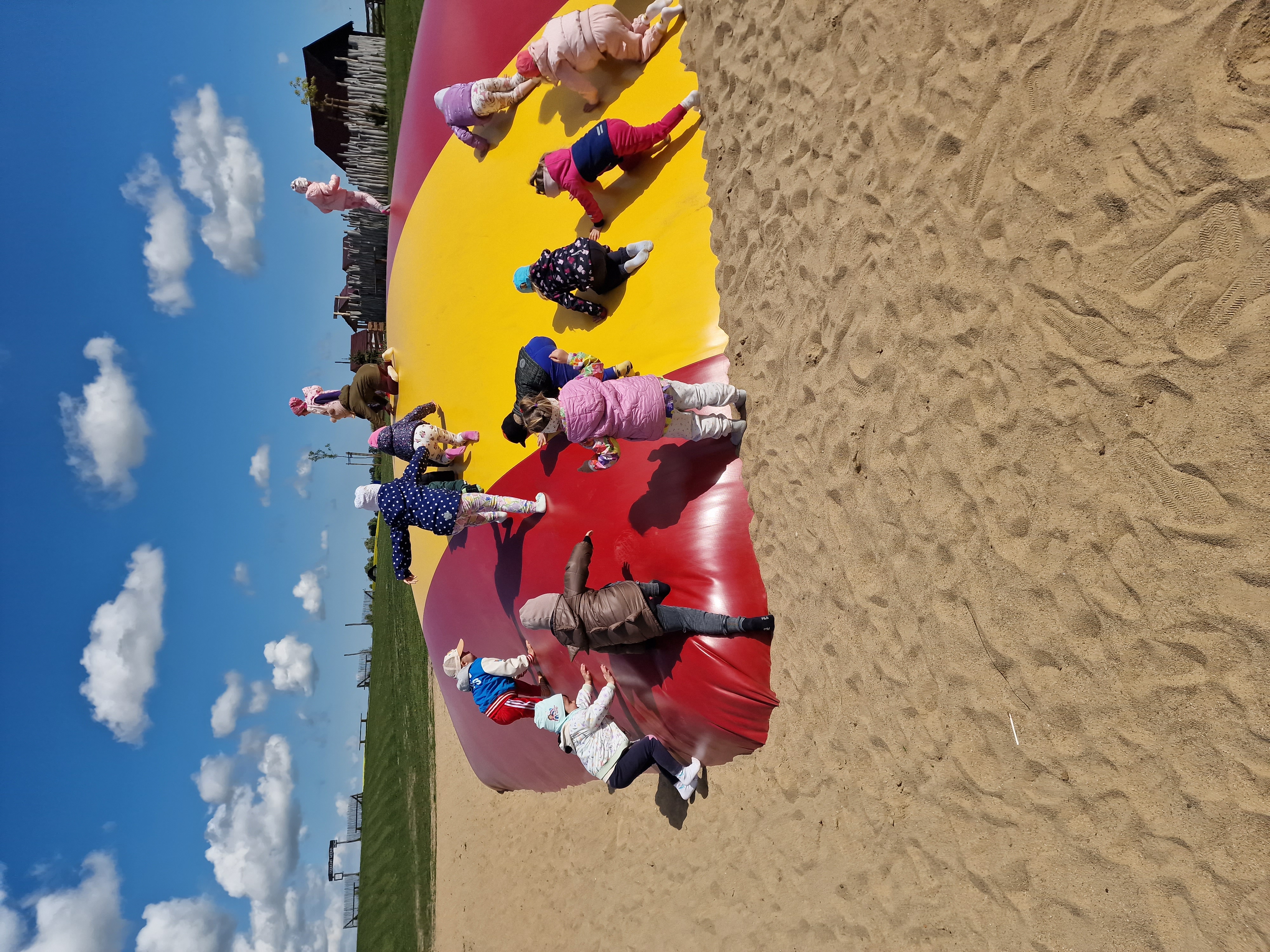 Dzieci podczas pobytu mogły bawić się na łące, pograć w Pyto- golfa, poskakać na wielkich poduchach, pochodzić po labiryncie, czy też pooglądać i pokarmić lokalne zwierzęta gospodarskie.