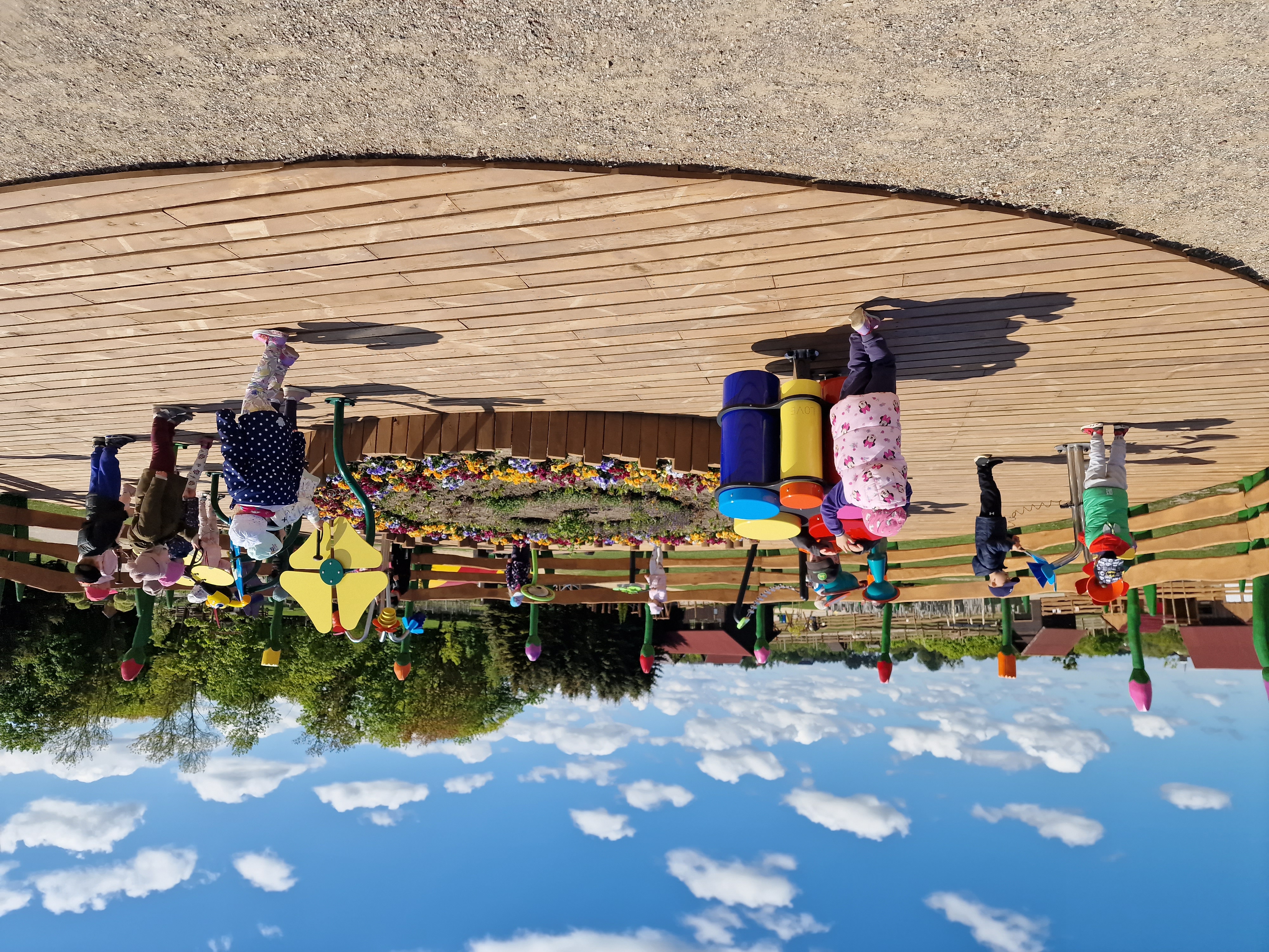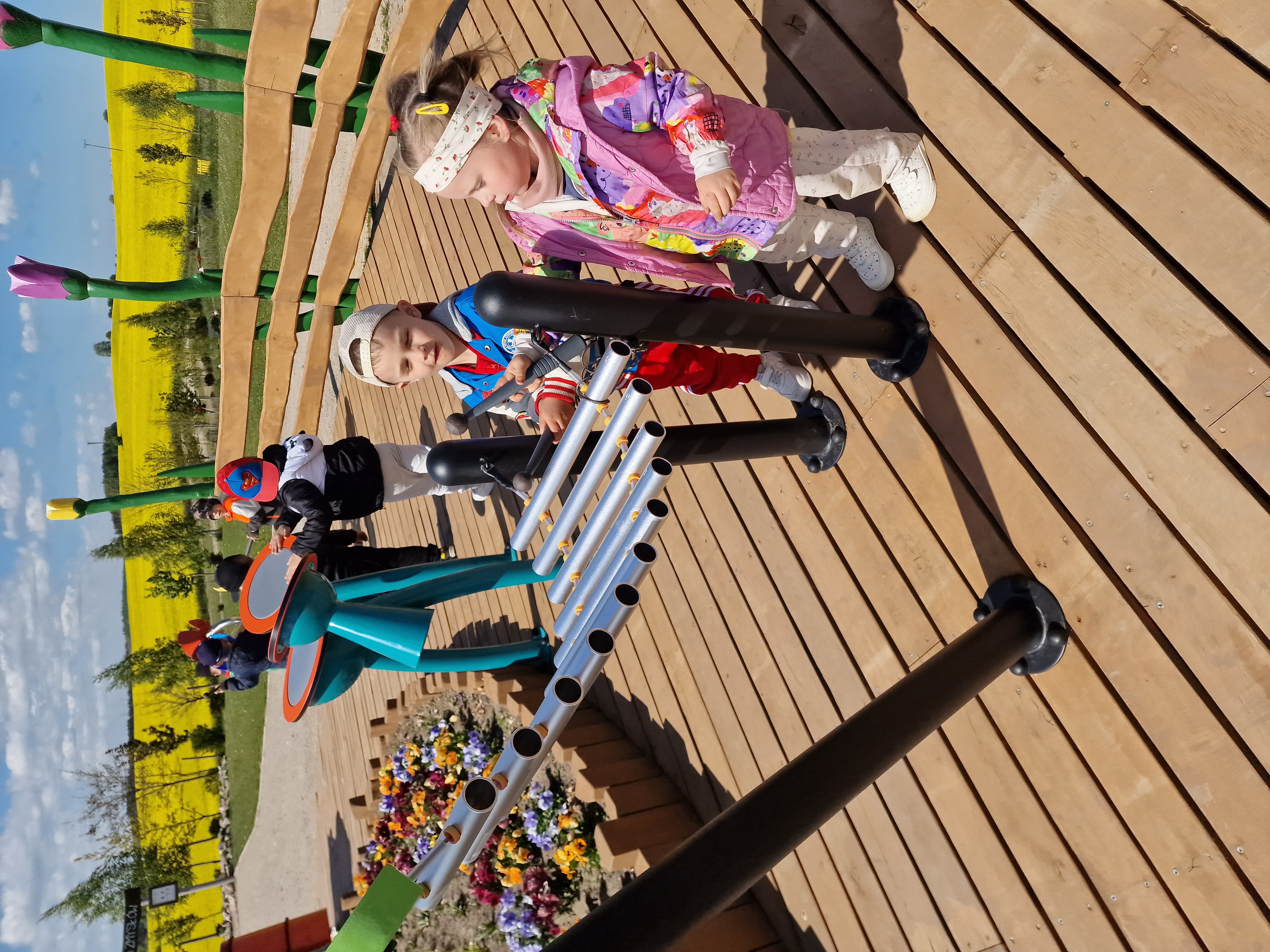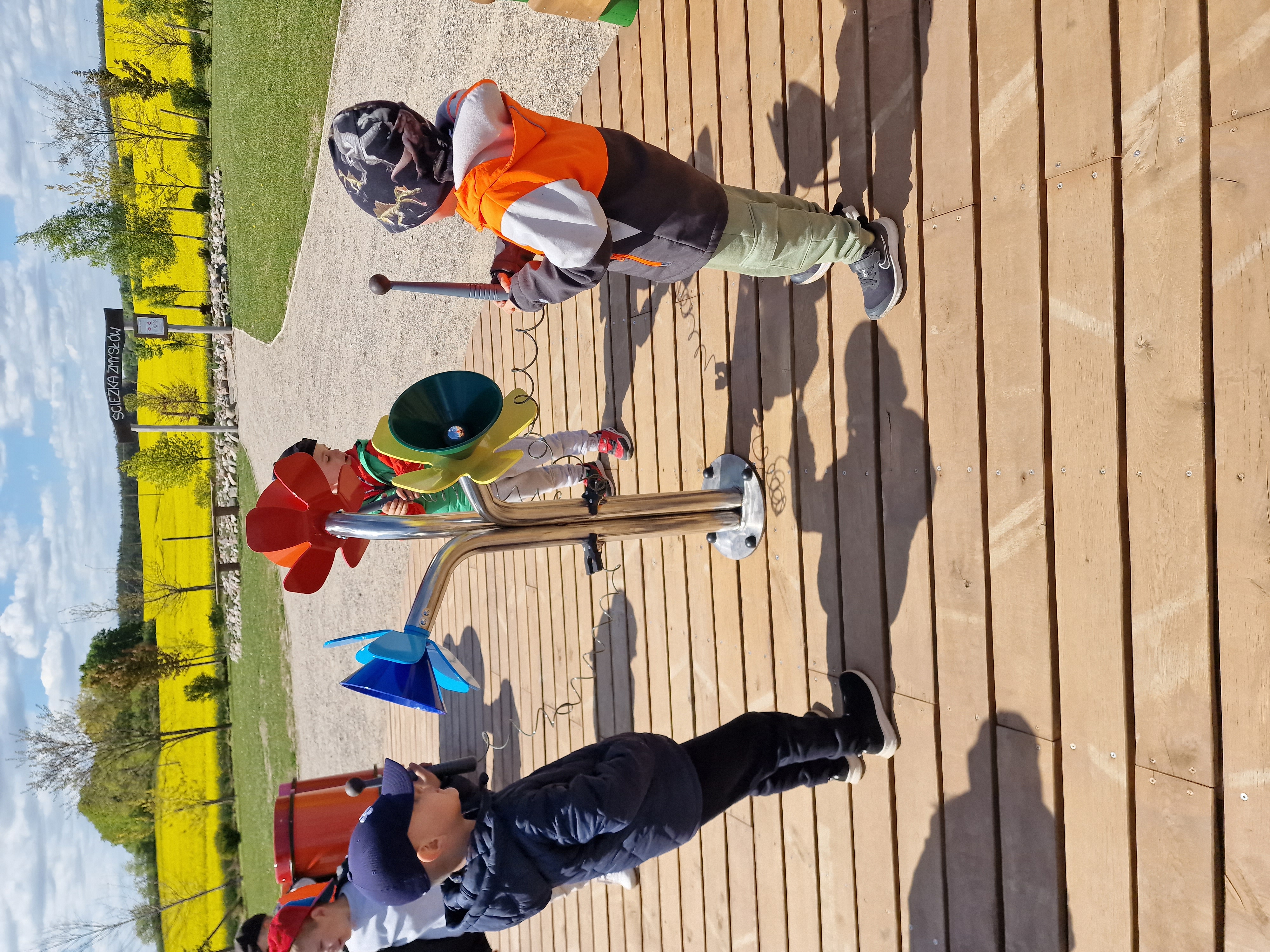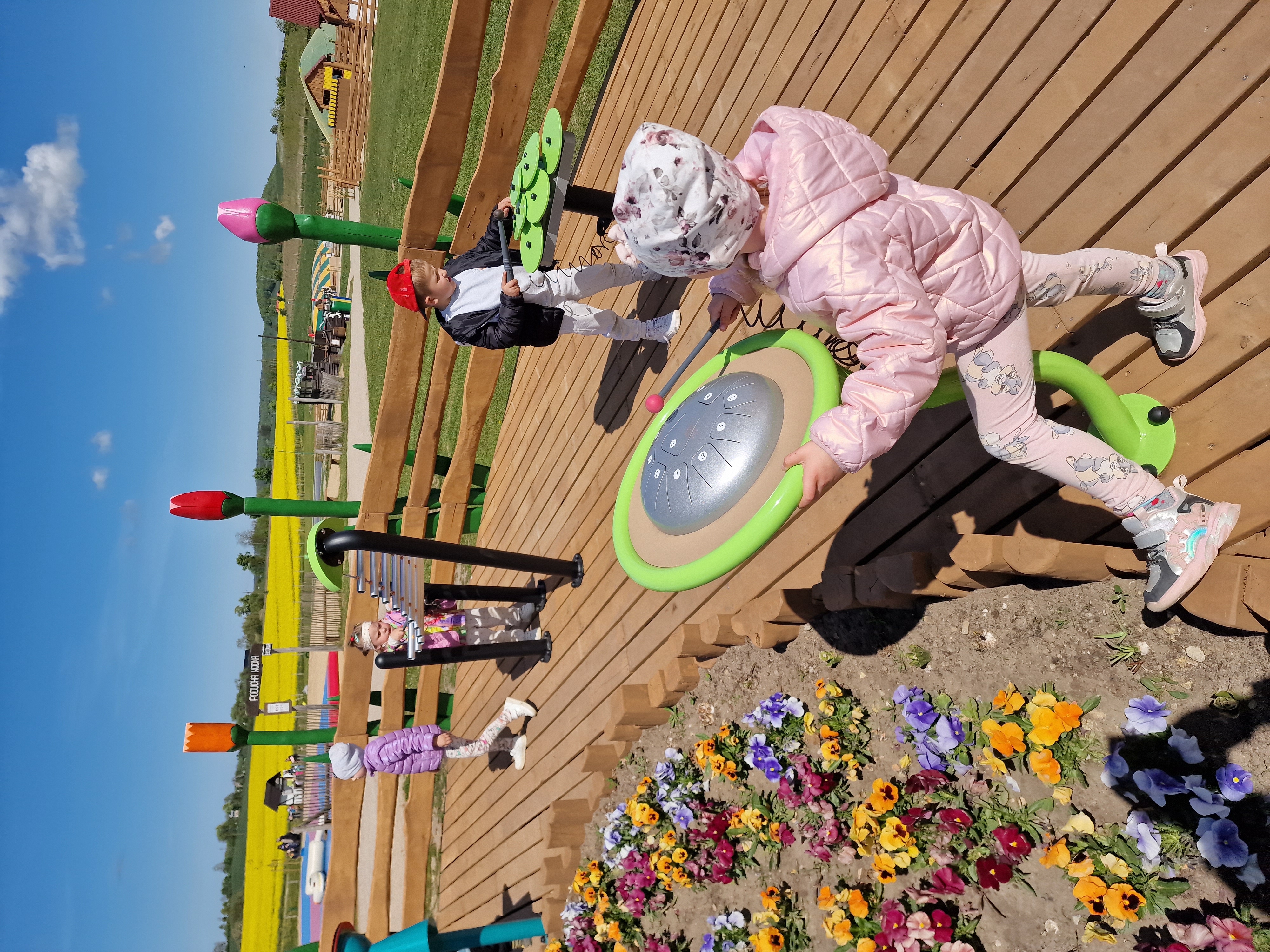 Dzieci podczas pobytu mogły bawić się na łące, pograć w Pyto- golfa, poskakać na wielkich poduchach, pochodzić po labiryncie, czy też pooglądać i pokarmić lokalne zwierzęta gospodarskie.