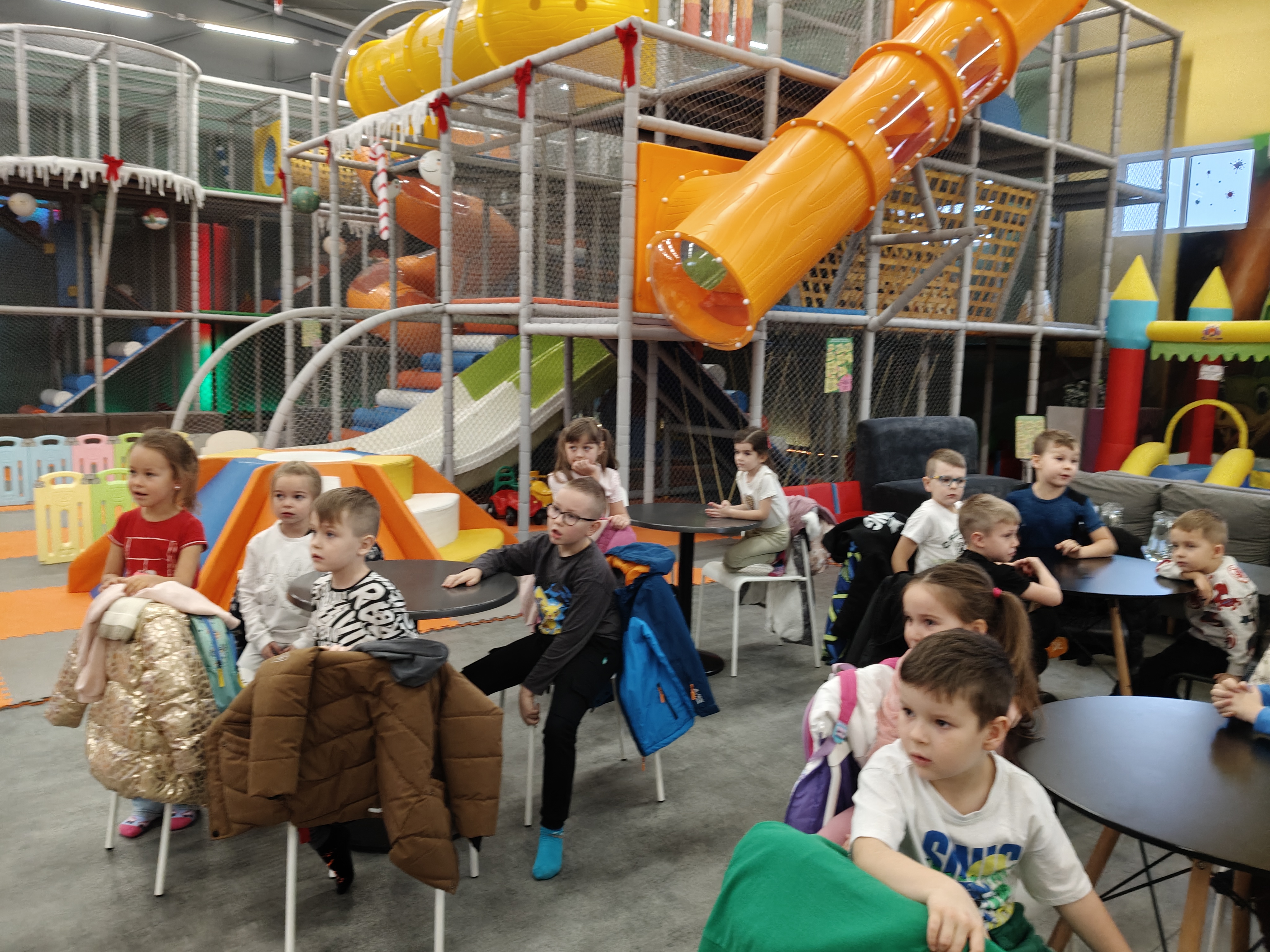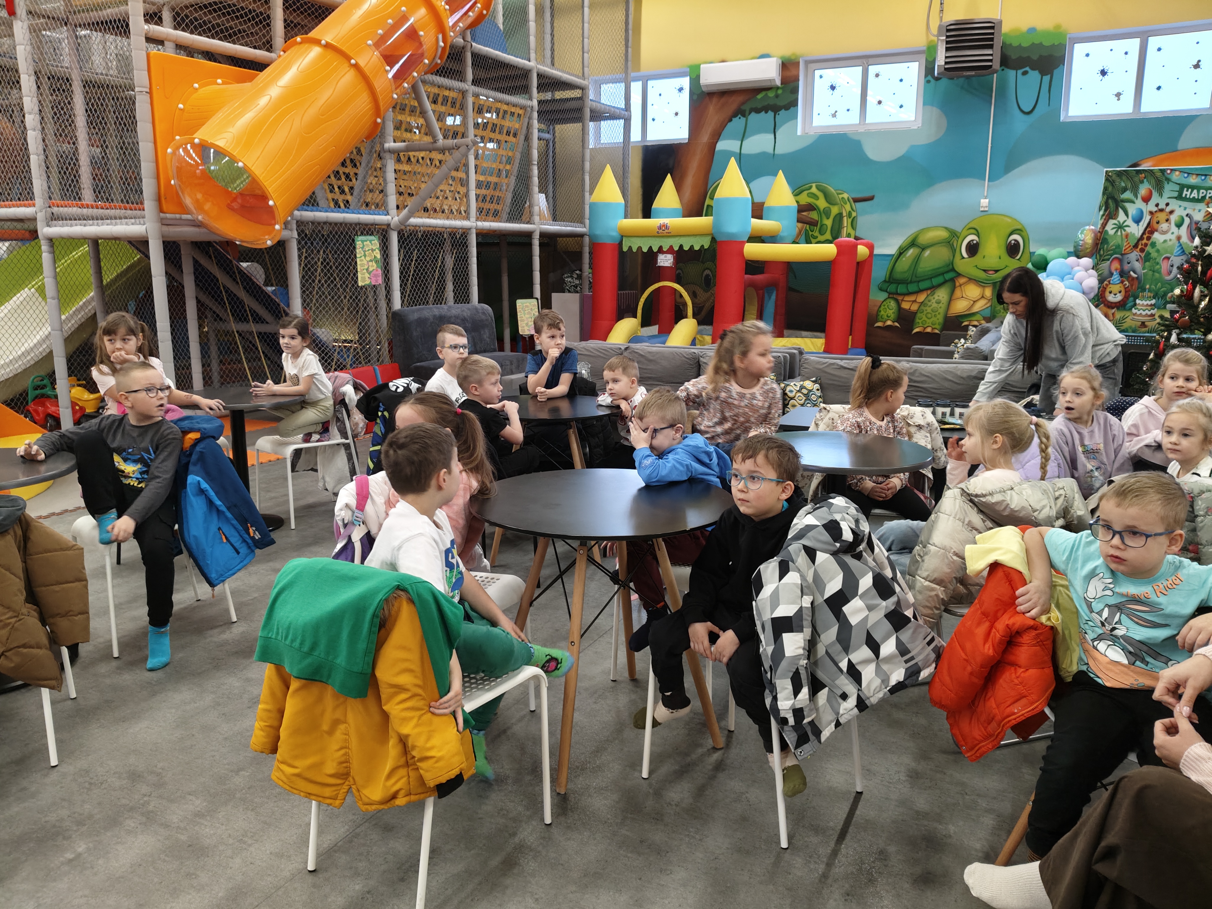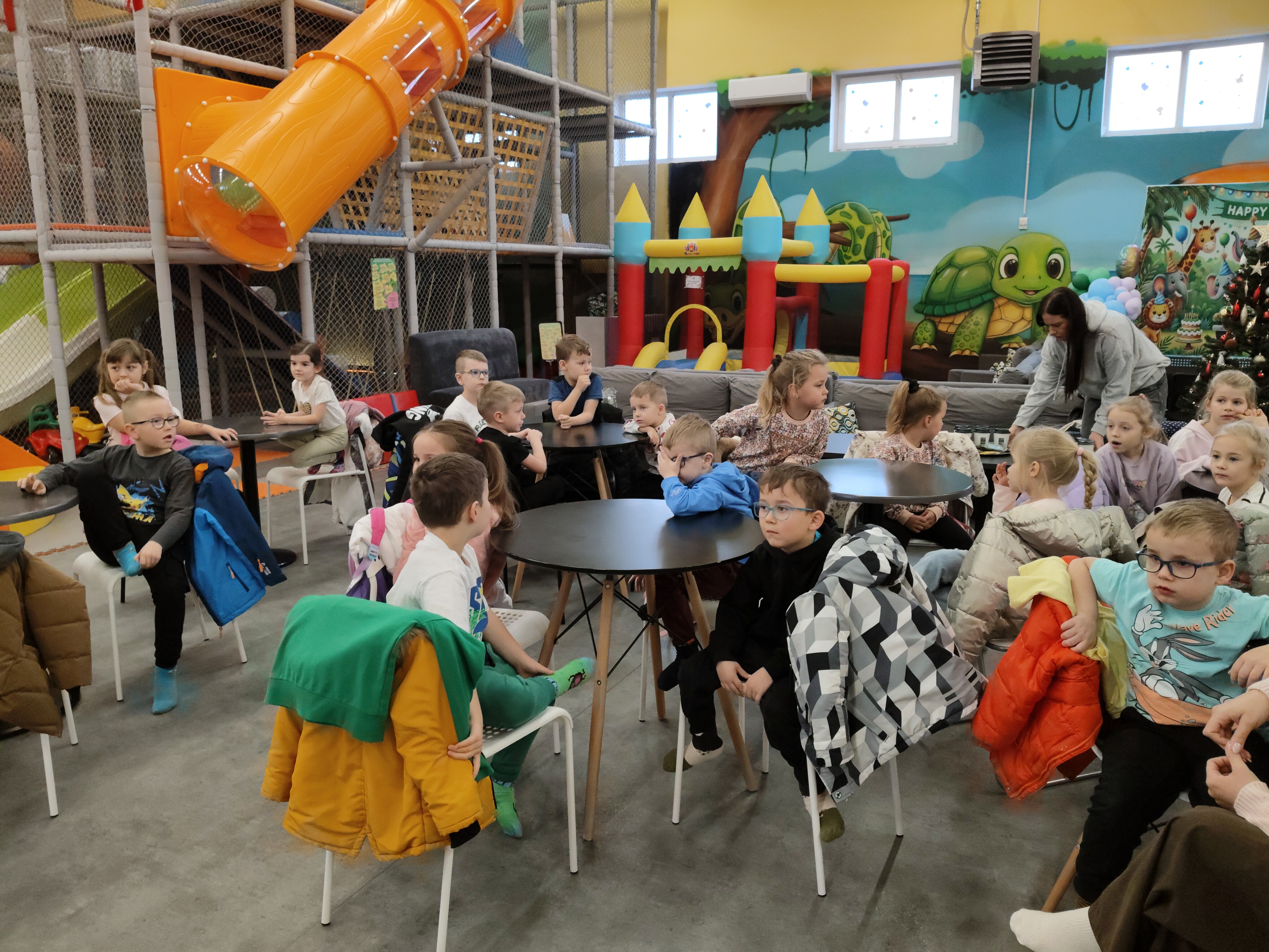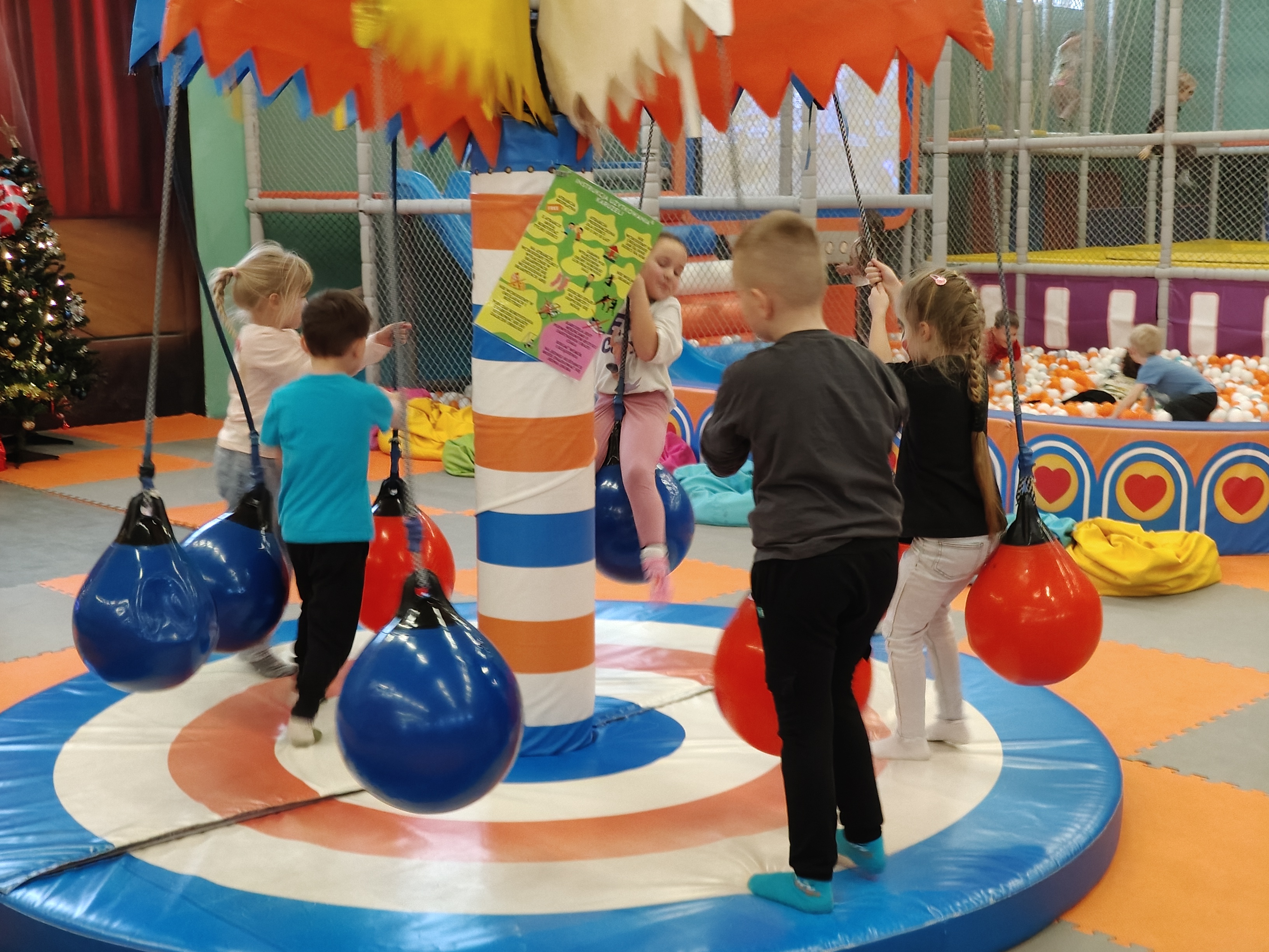 W środę 3 grudnia dzieci z grup "Pszczółki" i "Ślimaczki" wybrały się na drugą wycieczkę organizowaną w ramach realizacji projektu nr FEKP.08.11-IZ.00-0001/24 „Dwujęzyczne przedszkolaki Kujaw i Pomorza”. Tym razem przedszkolaki pojechały na salę zabaw "Grinlandia" w Lisim Ogonie. W programie oprócz zabaw na konstrukcji były także zabawy z animatorem w języku angielskim, malowanie buziek i zabawy taneczne z żywą maskotką. Po godzinach pełnych wrażeń przedszkolaki udały się na obiad do restauracji "Kultowa kuchnia".