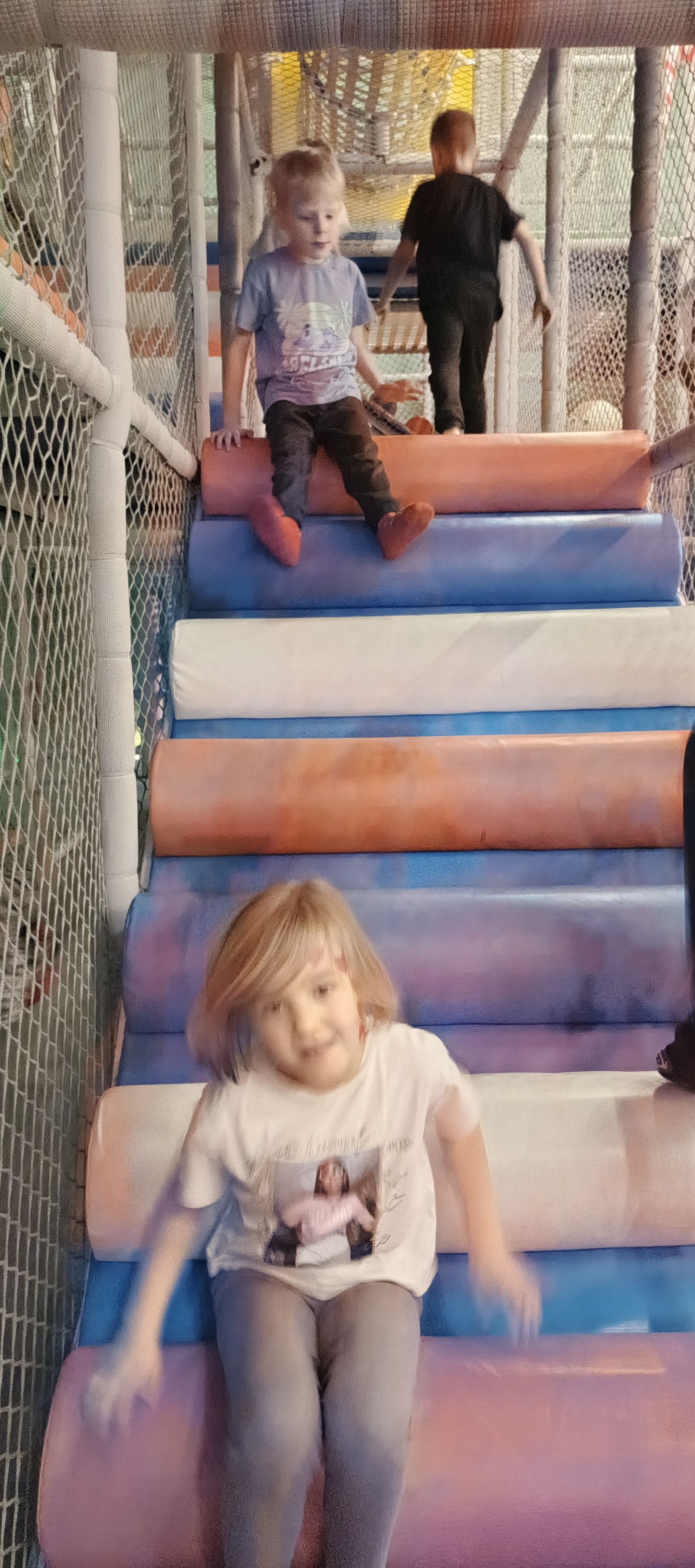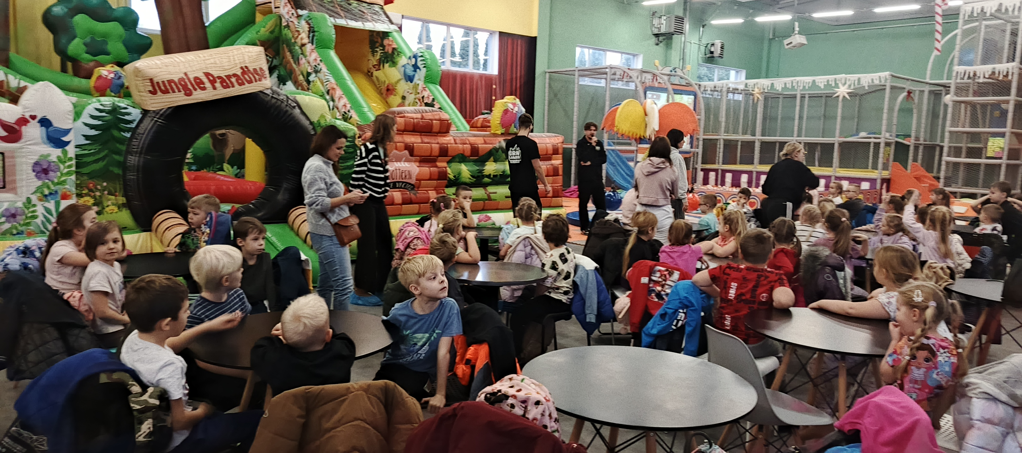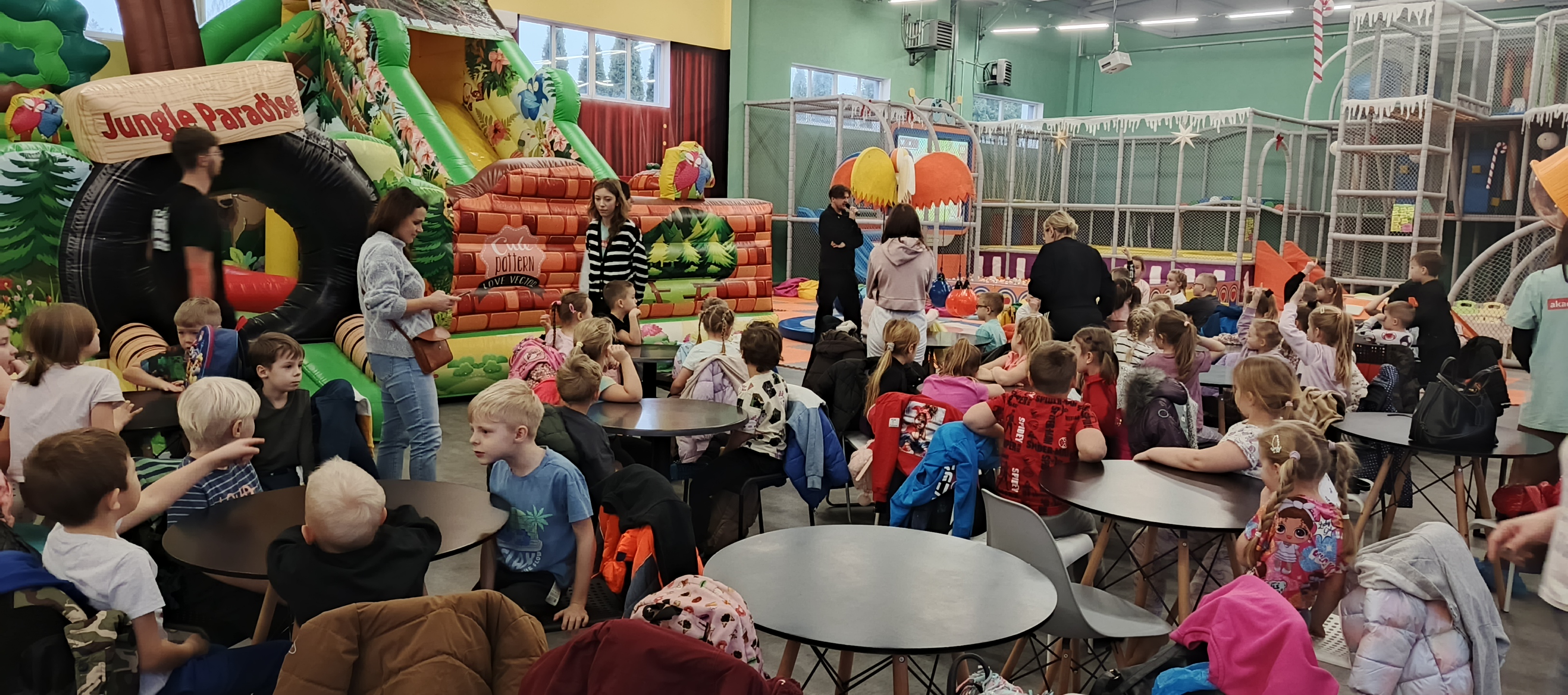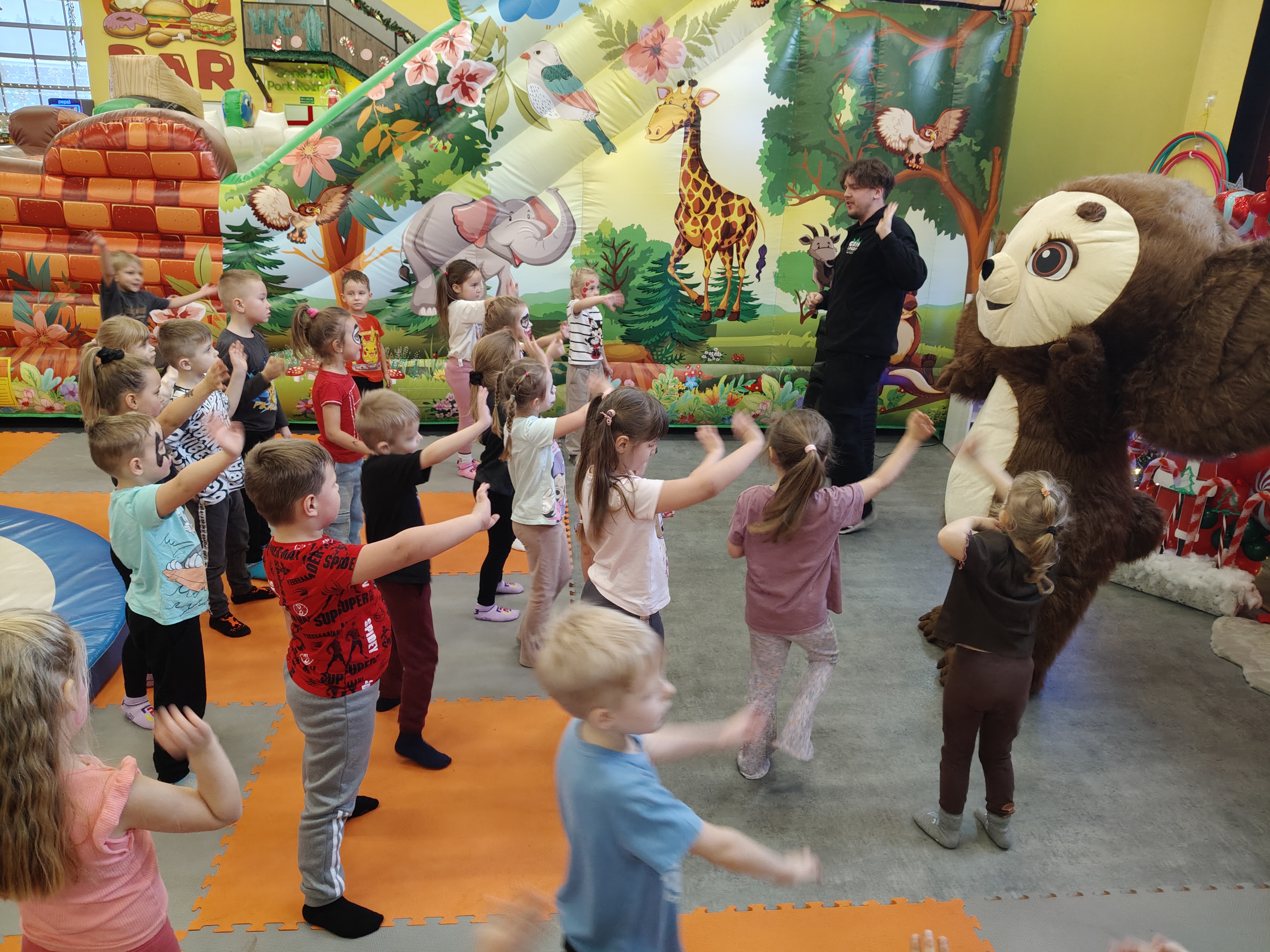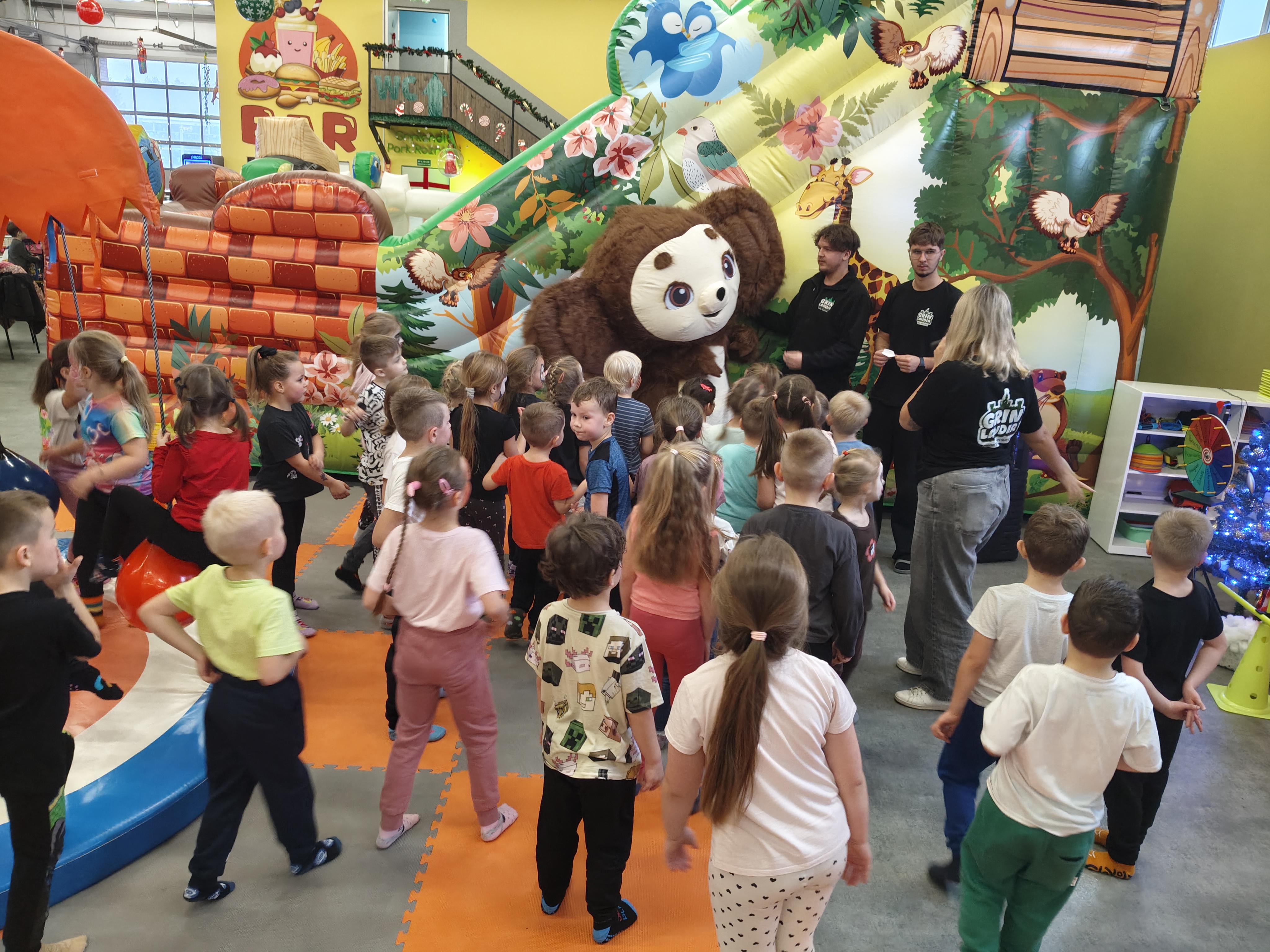 W środę 3 grudnia dzieci z grup "Pszczółki" i "Ślimaczki" wybrały się na drugą wycieczkę organizowaną w ramach realizacji projektu nr FEKP.08.11-IZ.00-0001/24 „Dwujęzyczne przedszkolaki Kujaw i Pomorza”. Tym razem przedszkolaki pojechały na salę zabaw "Grinlandia" w Lisim Ogonie. W programie oprócz zabaw na konstrukcji były także zabawy z animatorem w języku angielskim, malowanie buziek i zabawy taneczne z żywą maskotką. Po godzinach pełnych wrażeń przedszkolaki udały się na obiad do restauracji "Kultowa kuchnia".