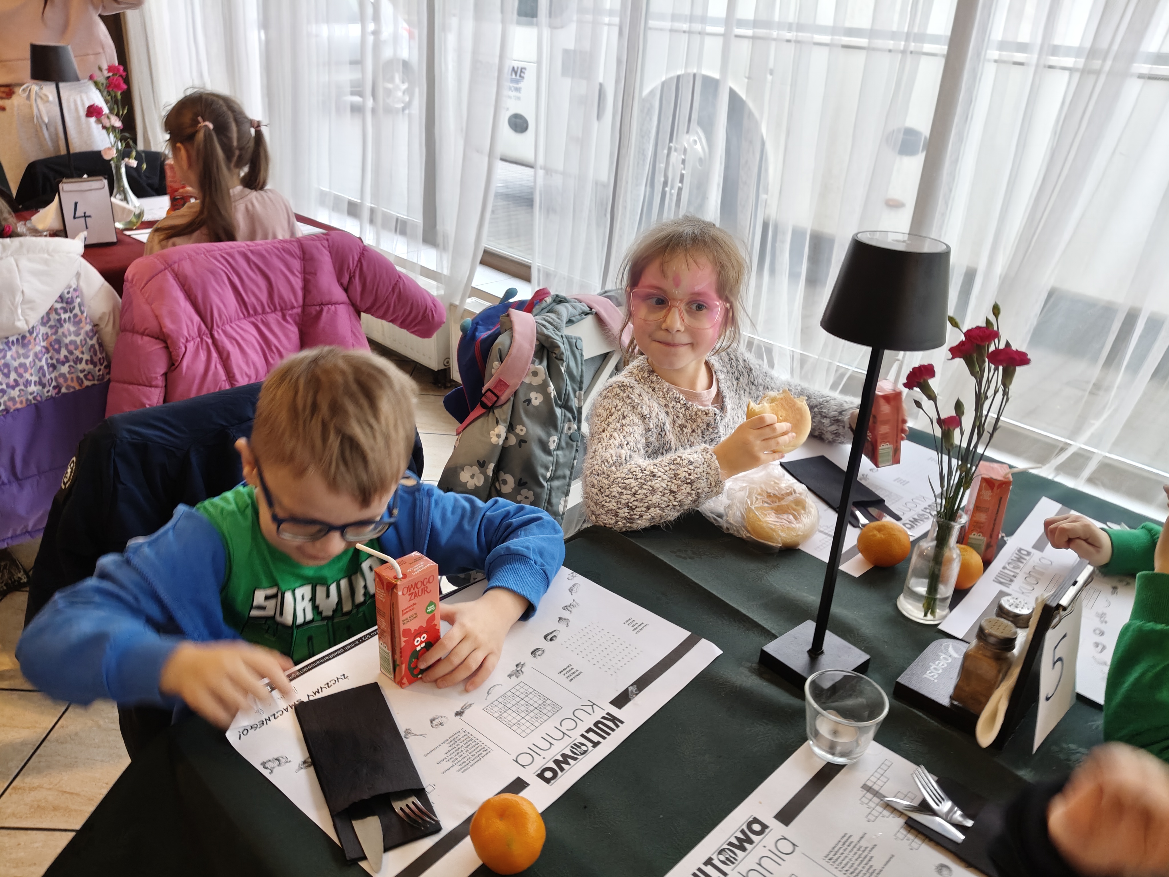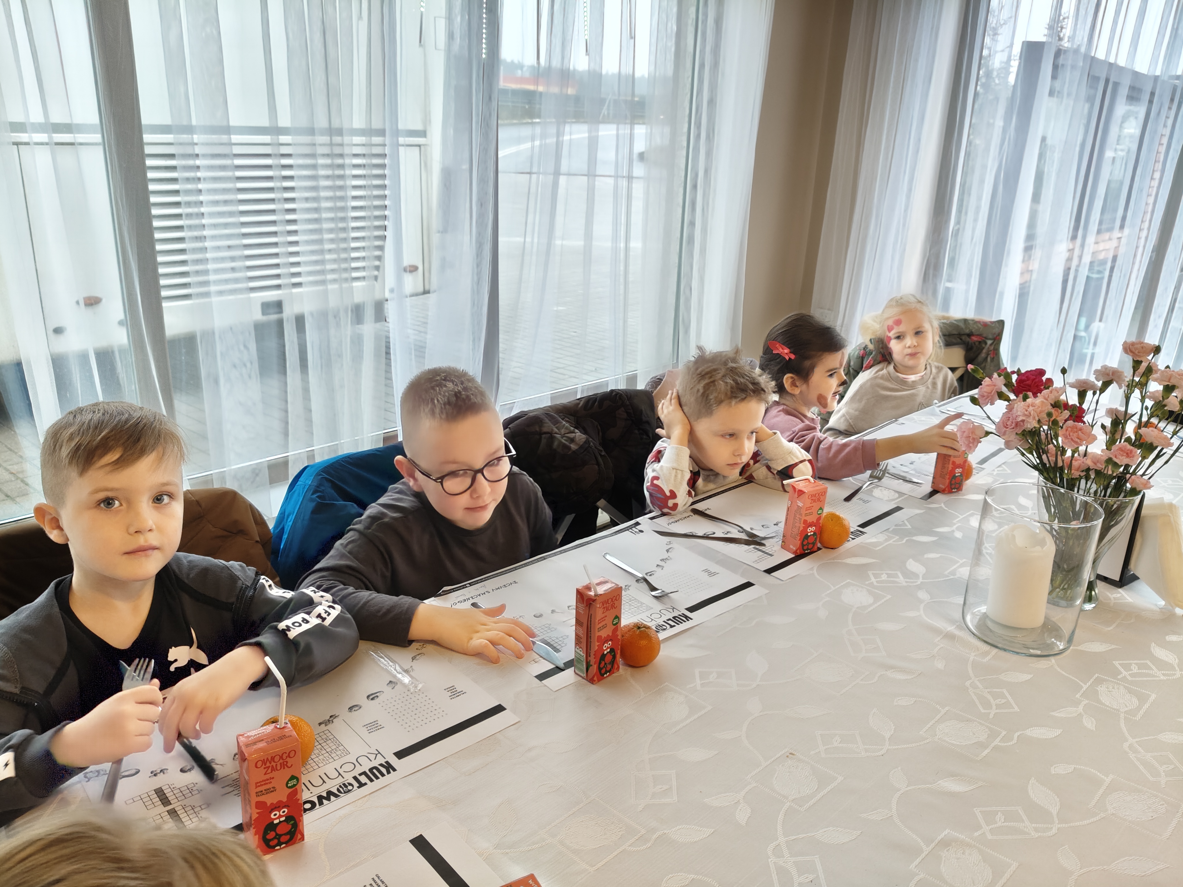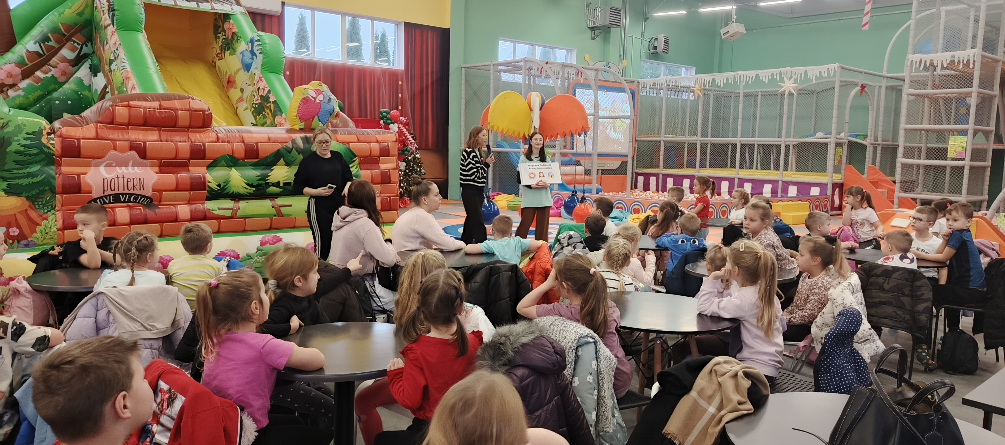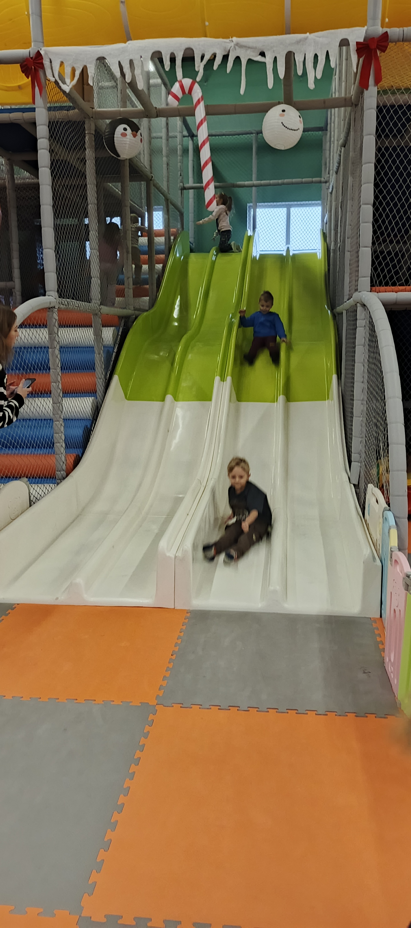 W środę 3 grudnia dzieci z grup "Pszczółki" i "Ślimaczki" wybrały się na drugą wycieczkę organizowaną w ramach realizacji projektu nr FEKP.08.11-IZ.00-0001/24 „Dwujęzyczne przedszkolaki Kujaw i Pomorza”. Tym razem przedszkolaki pojechały na salę zabaw "Grinlandia" w Lisim Ogonie. W programie oprócz zabaw na konstrukcji były także zabawy z animatorem w języku angielskim, malowanie buziek i zabawy taneczne z żywą maskotką. Po godzinach pełnych wrażeń przedszkolaki udały się na obiad do restauracji "Kultowa kuchnia".